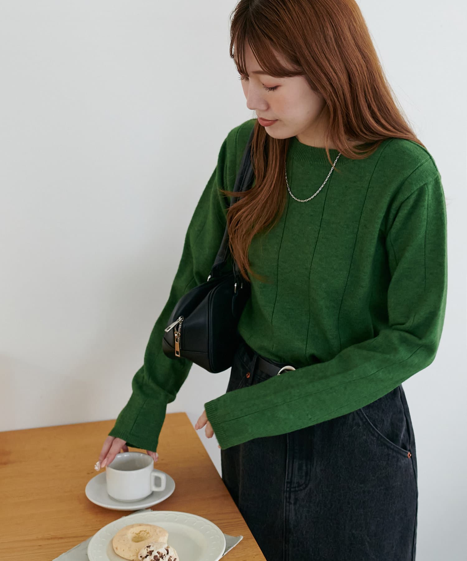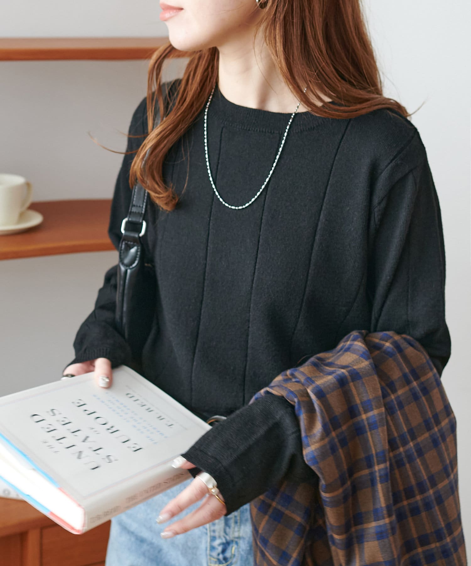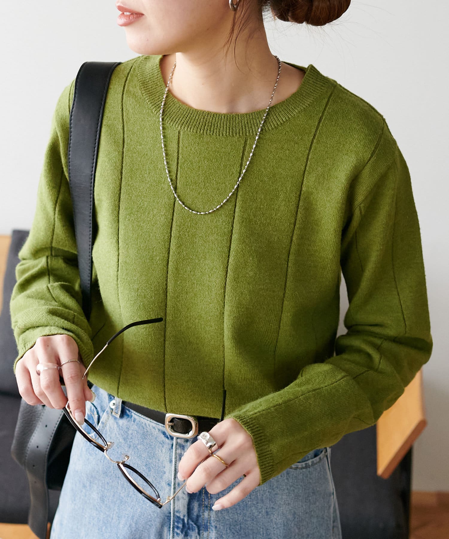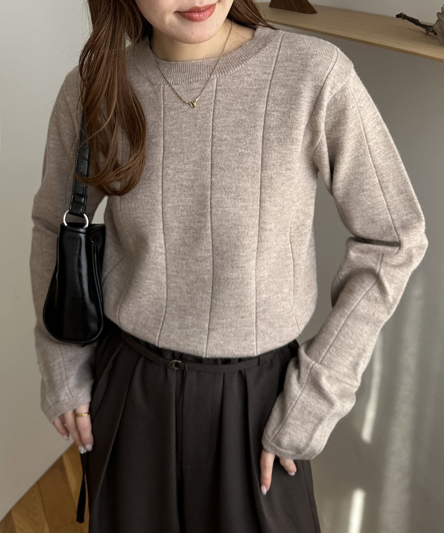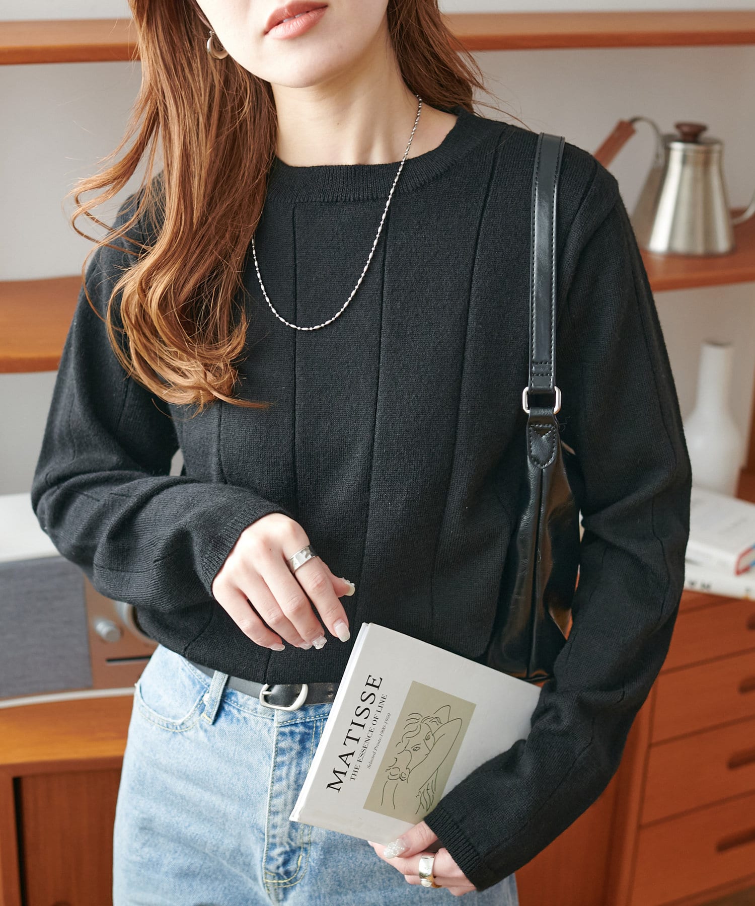 ・シンプルなデザインでどんなスタイリングにも合わせやすいウールライクプルオーバー