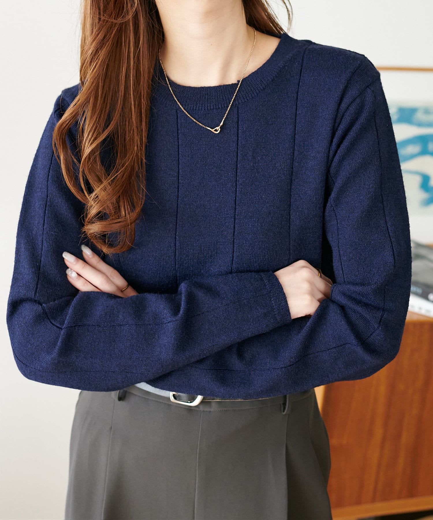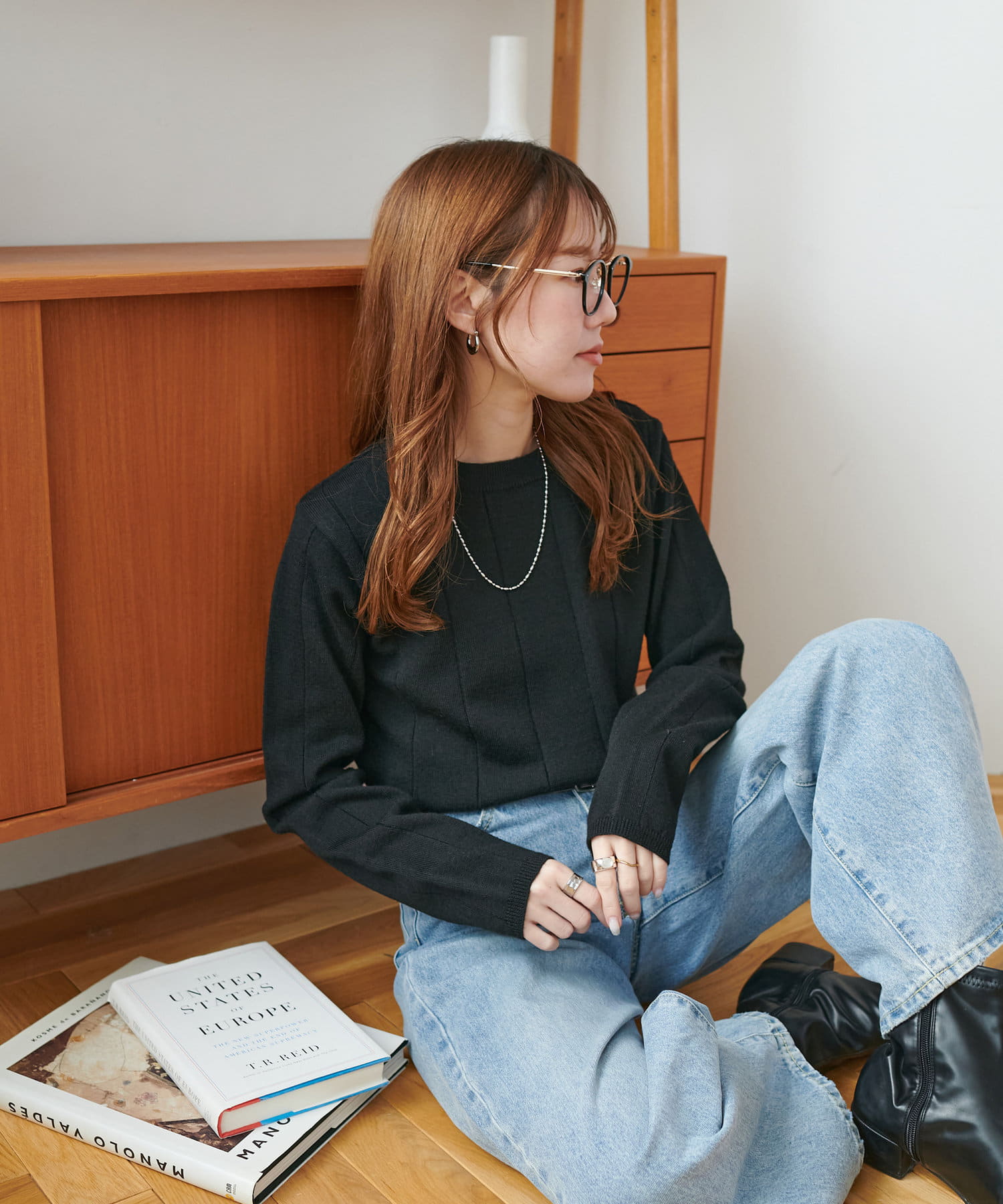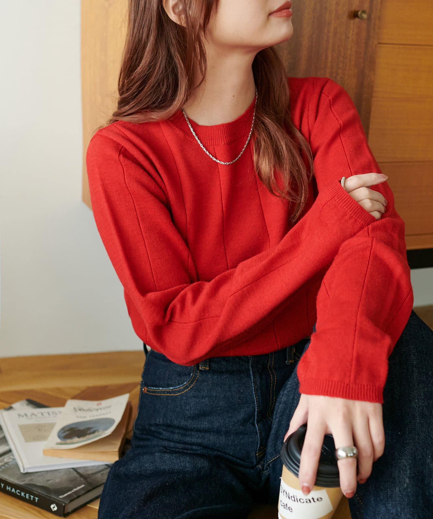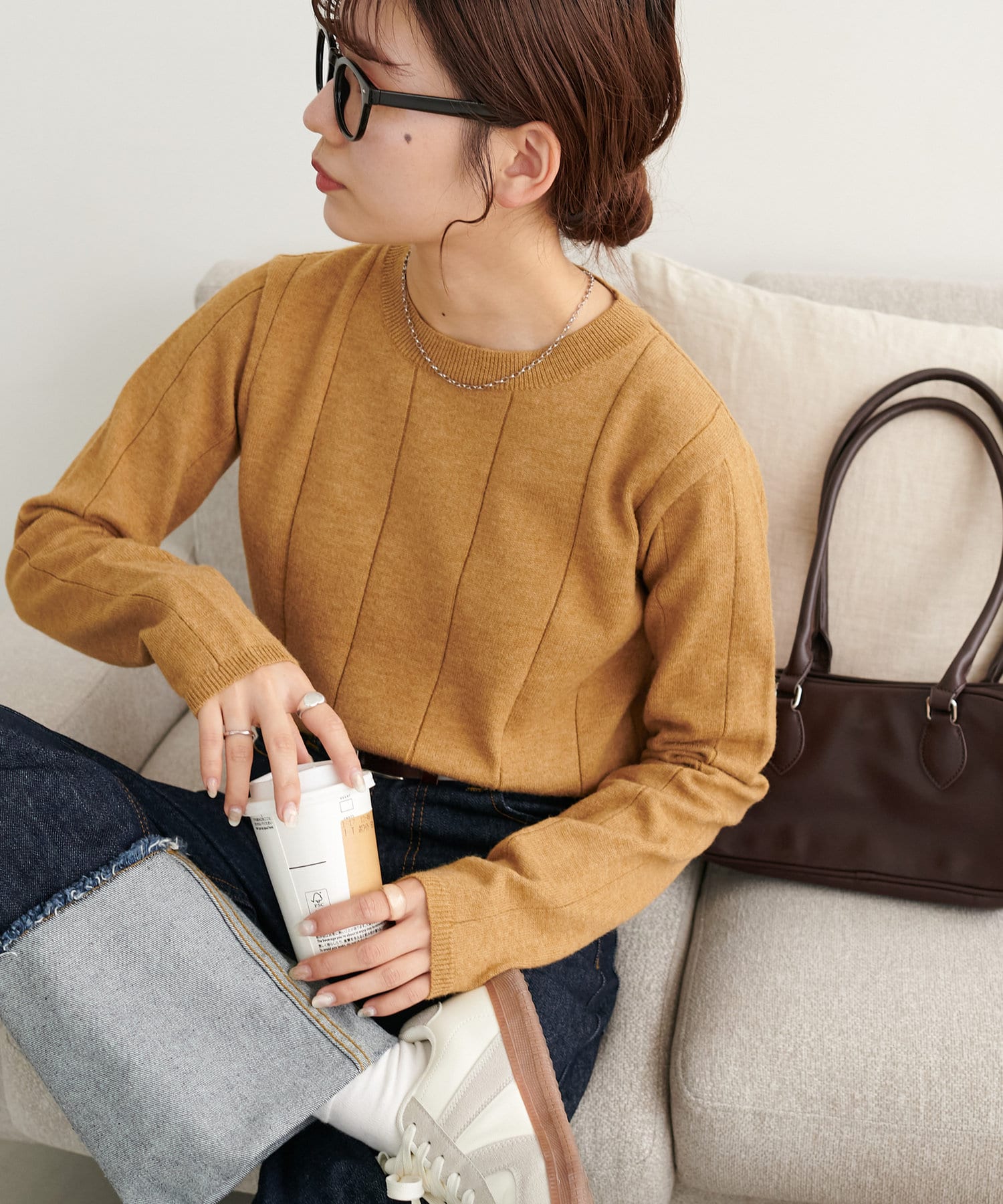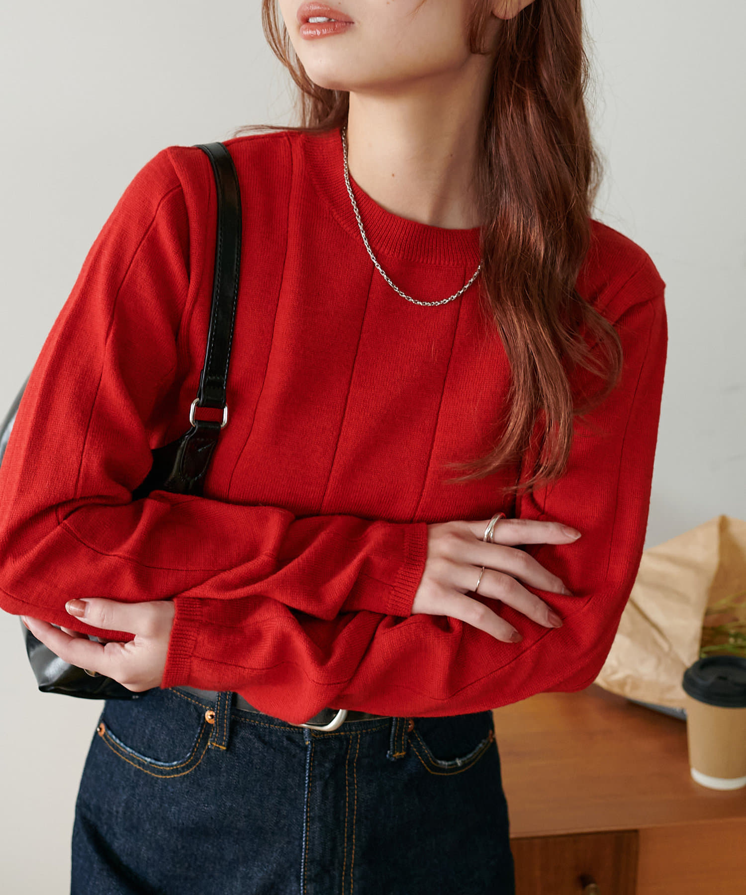 ・シンプルなデザインでどんなスタイリングにも合わせやすいウールライクプルオーバー