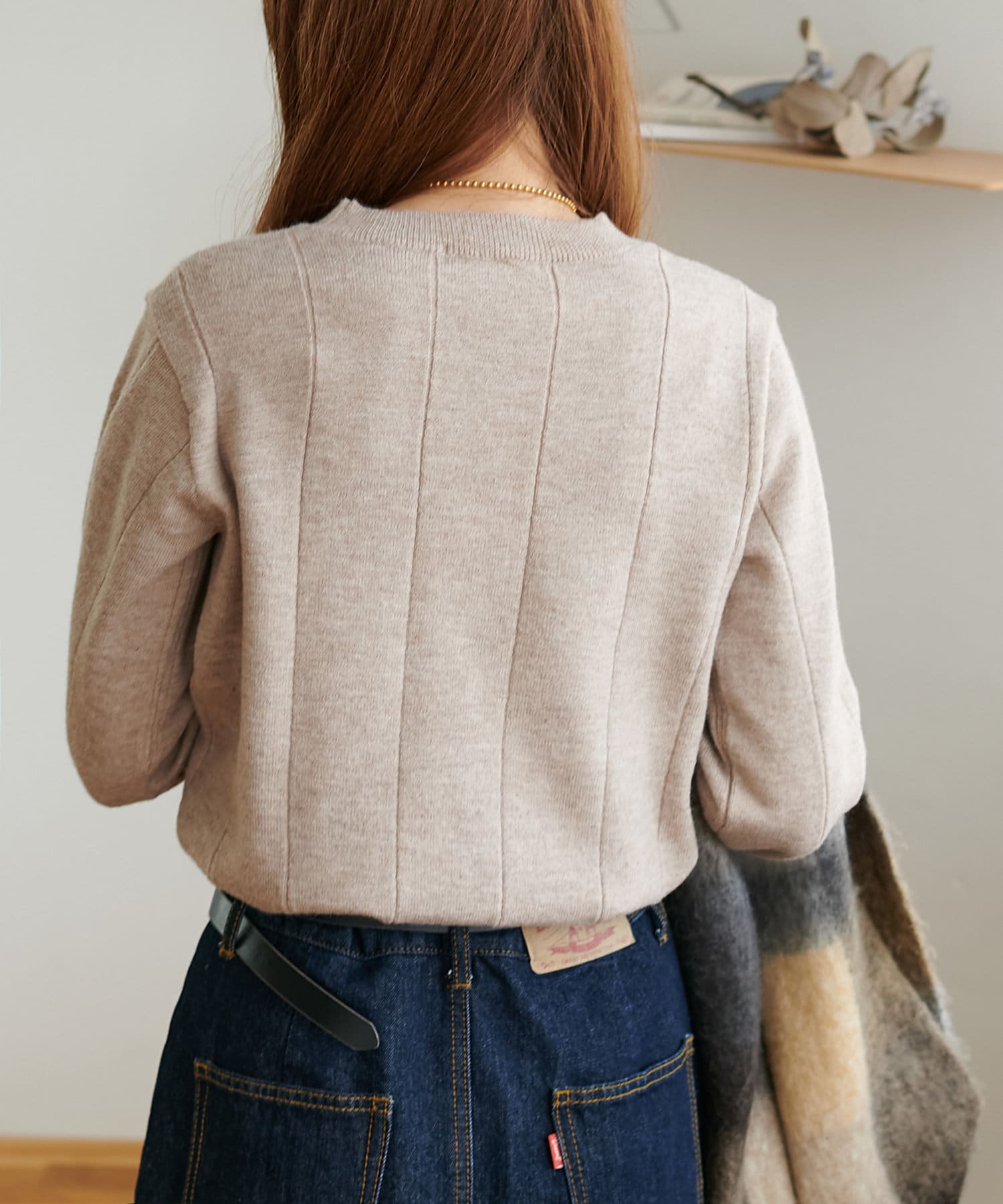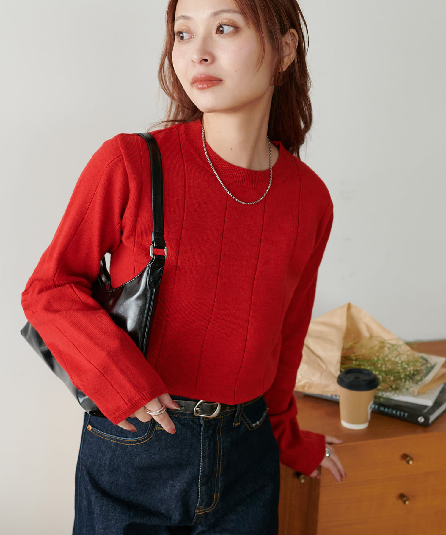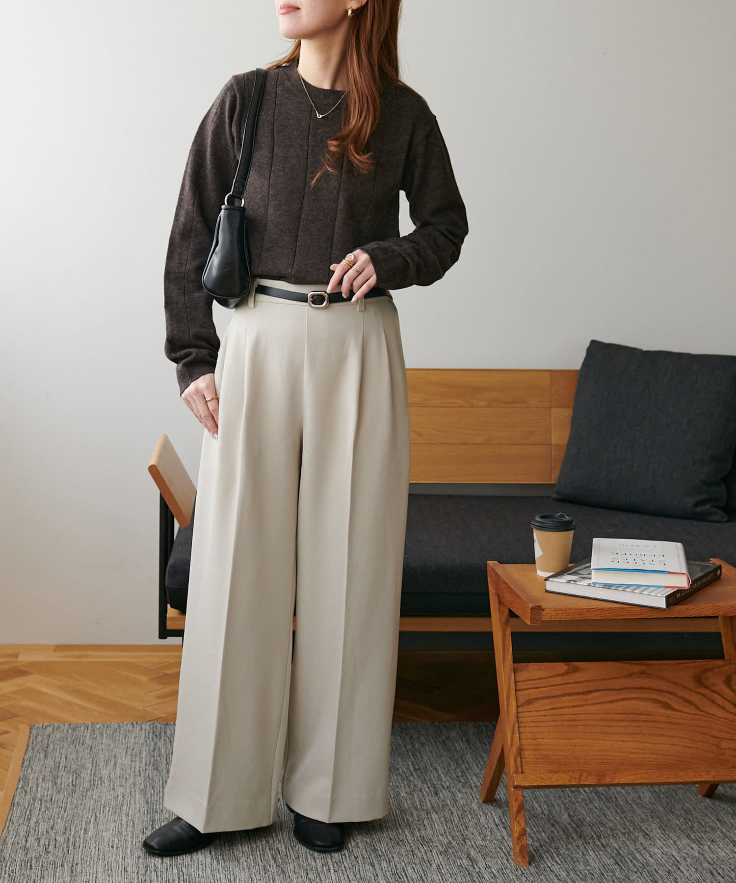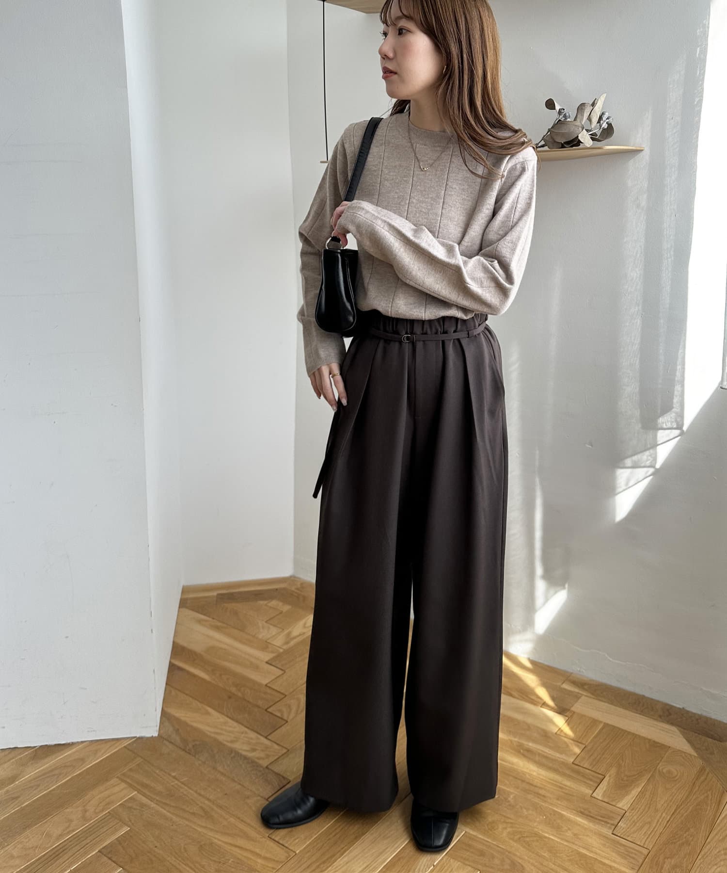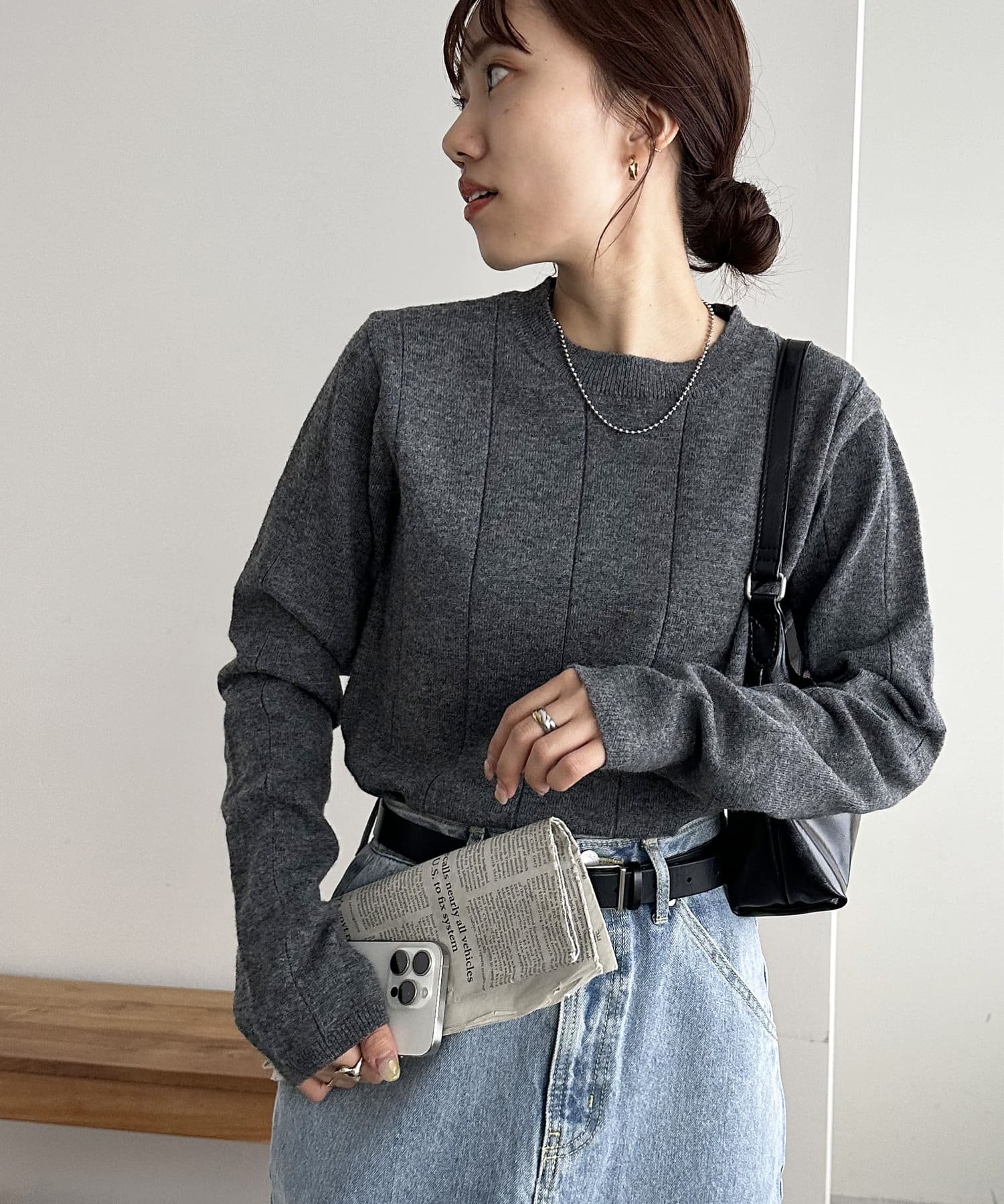 ・シンプルなデザインでどんなスタイリングにも合わせやすいウールライクプルオーバー