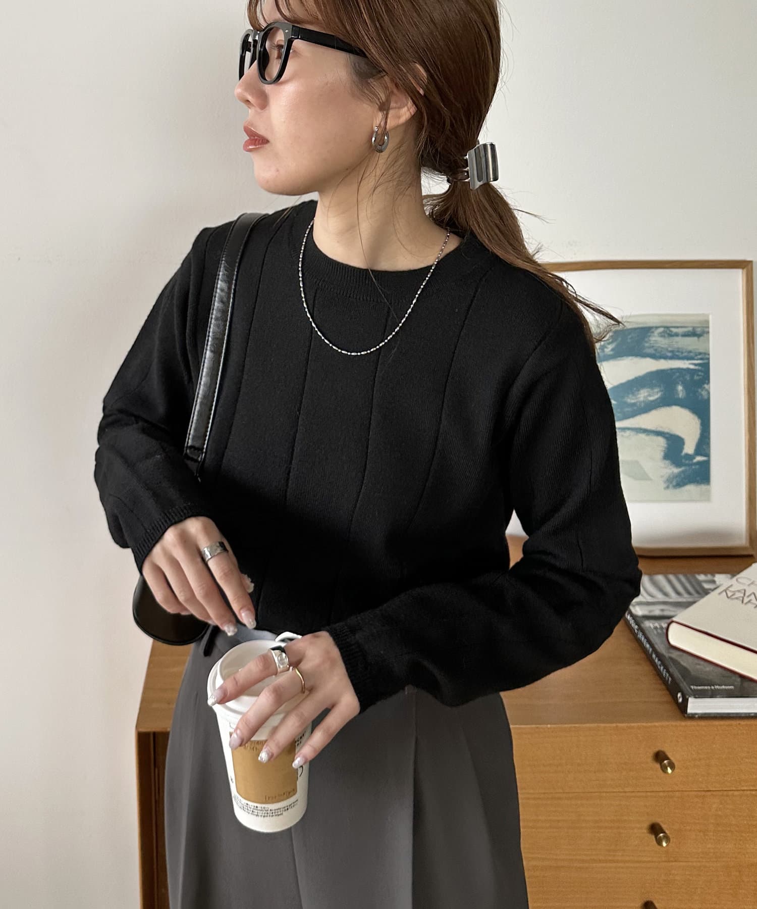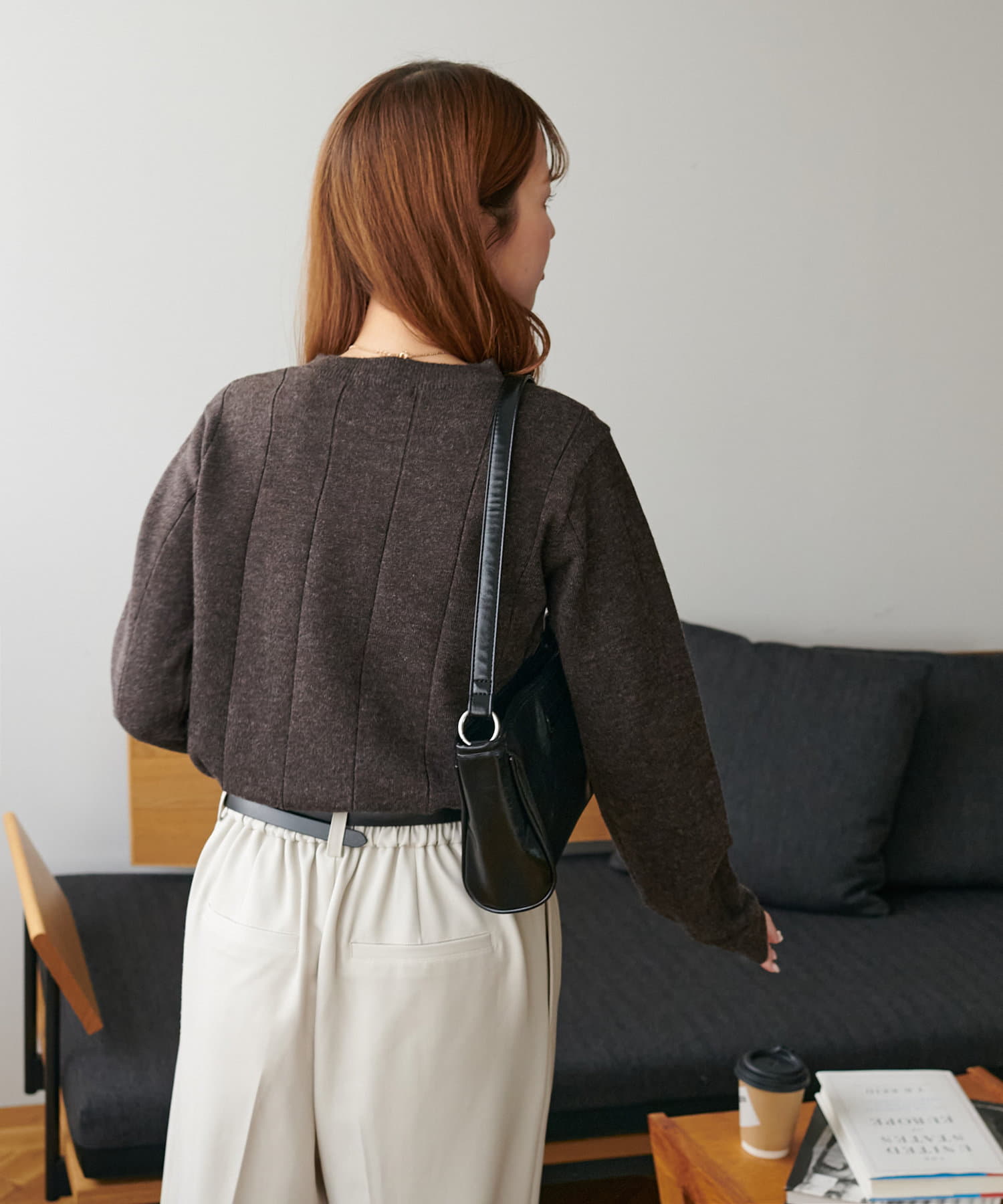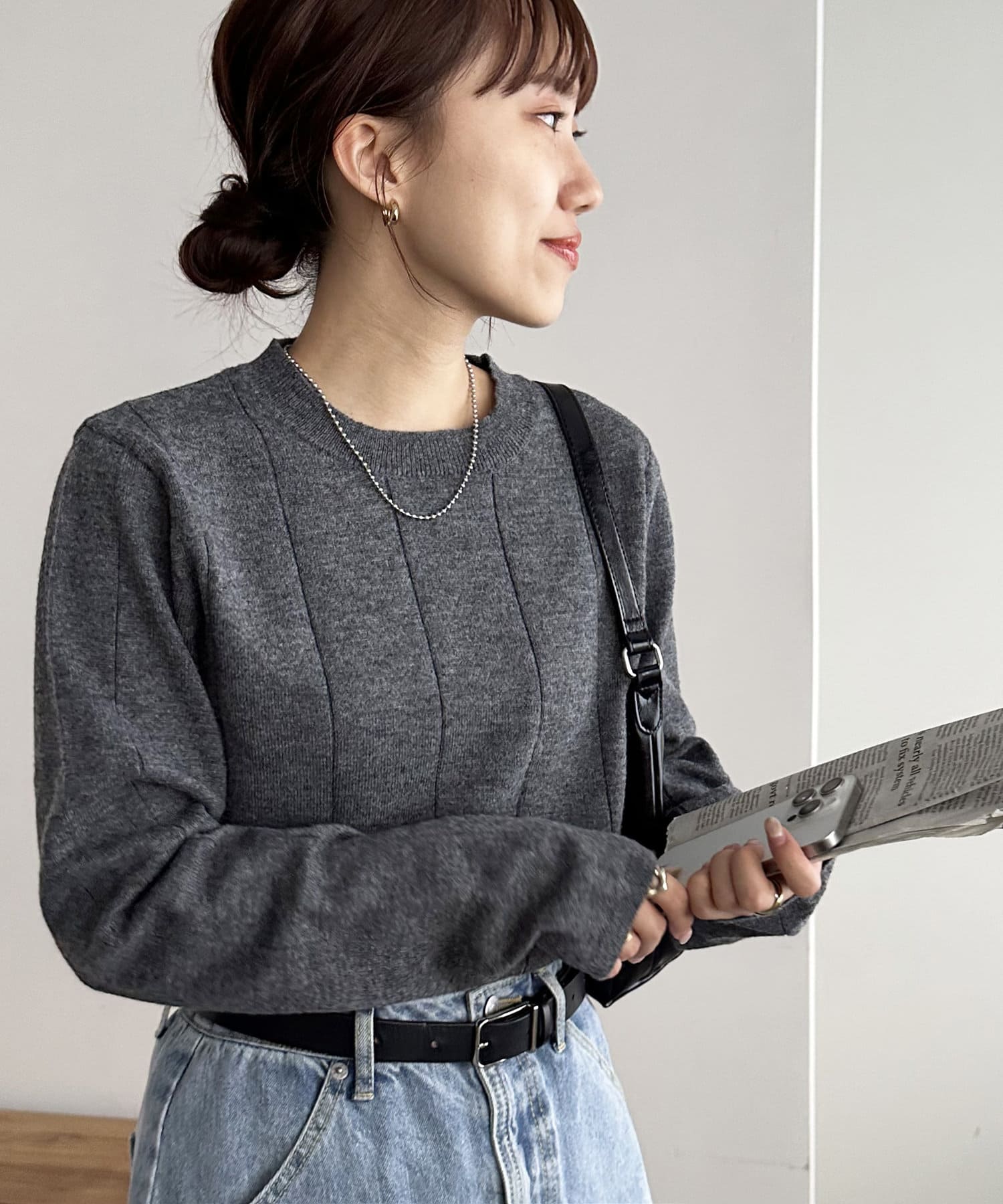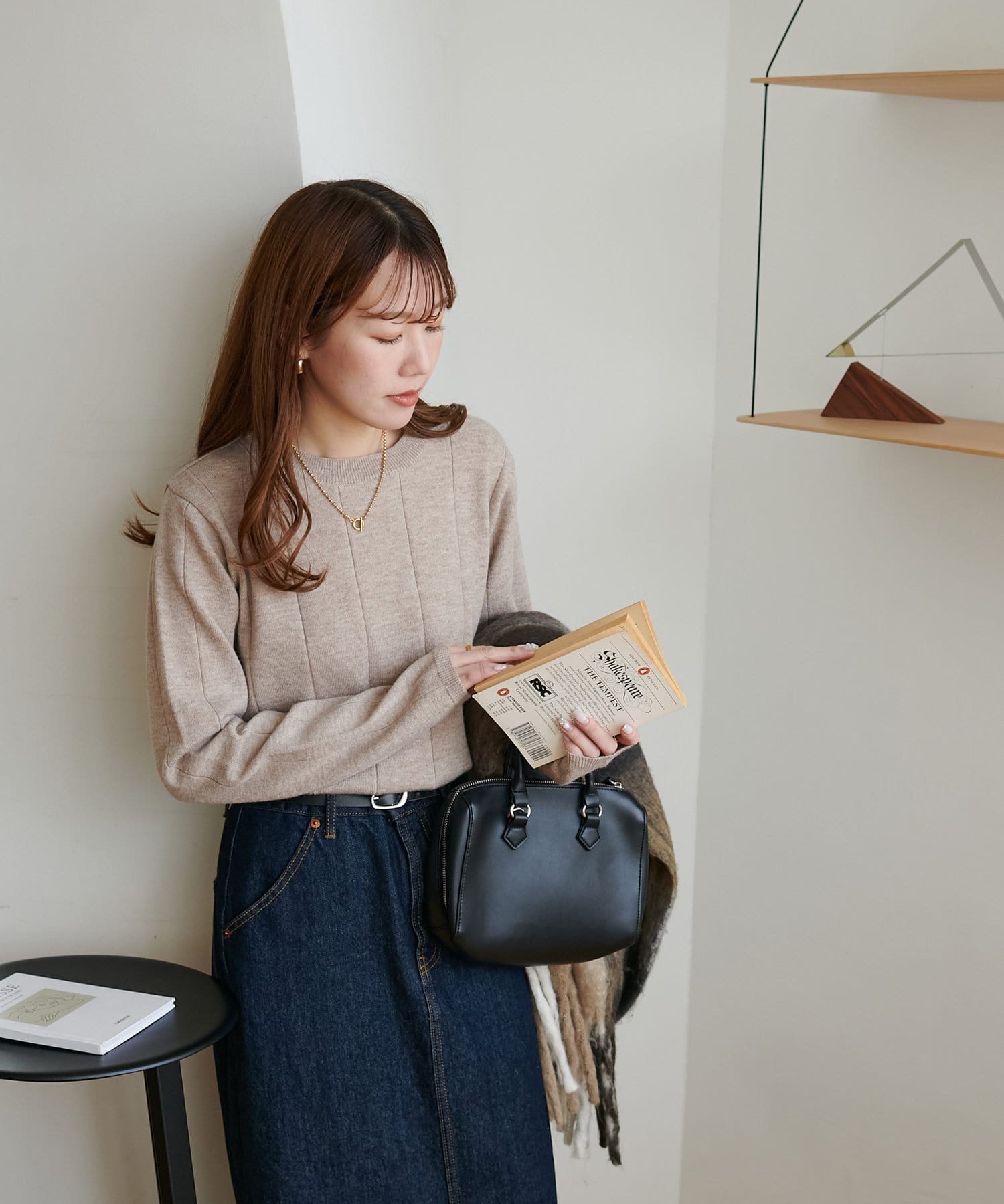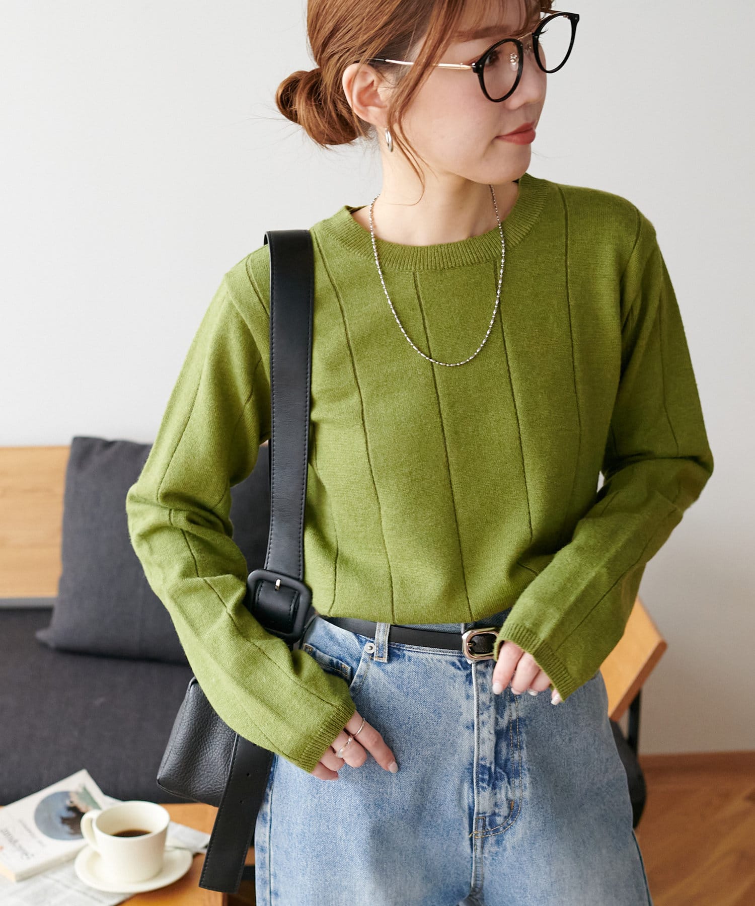 ・シンプルなデザインでどんなスタイリングにも合わせやすいウールライクプルオーバー