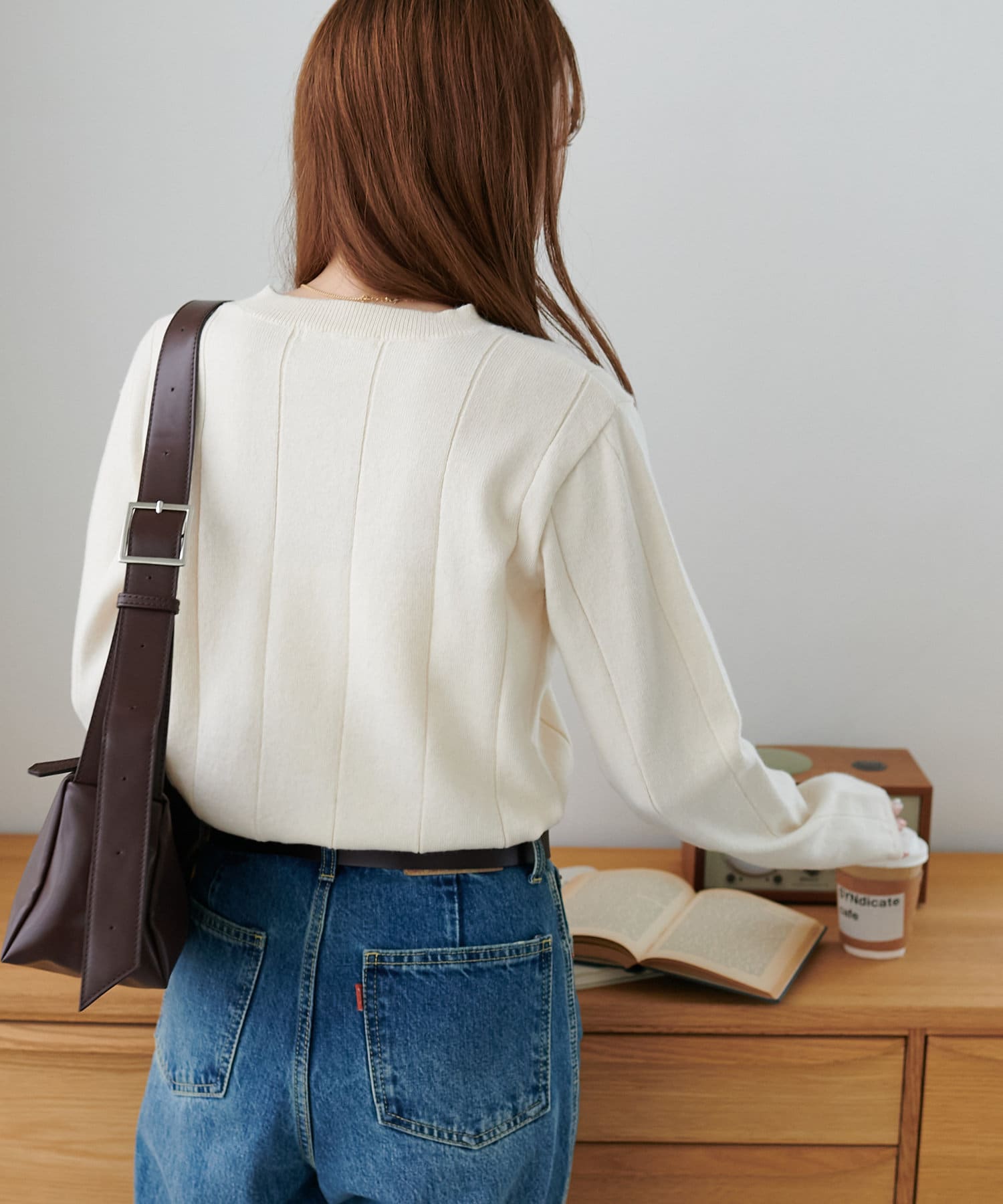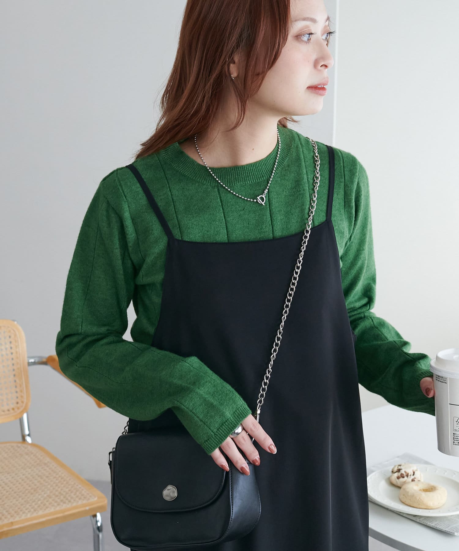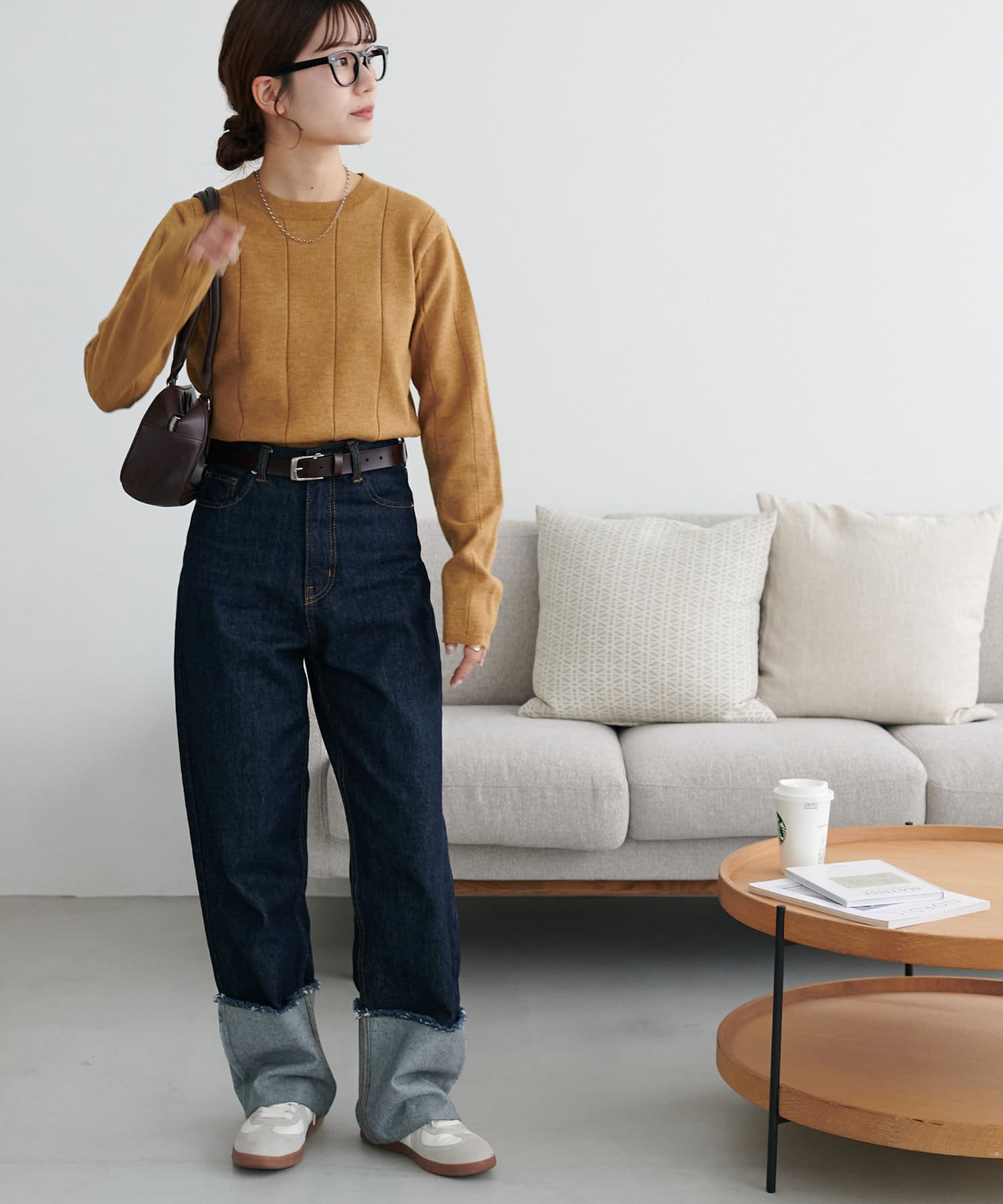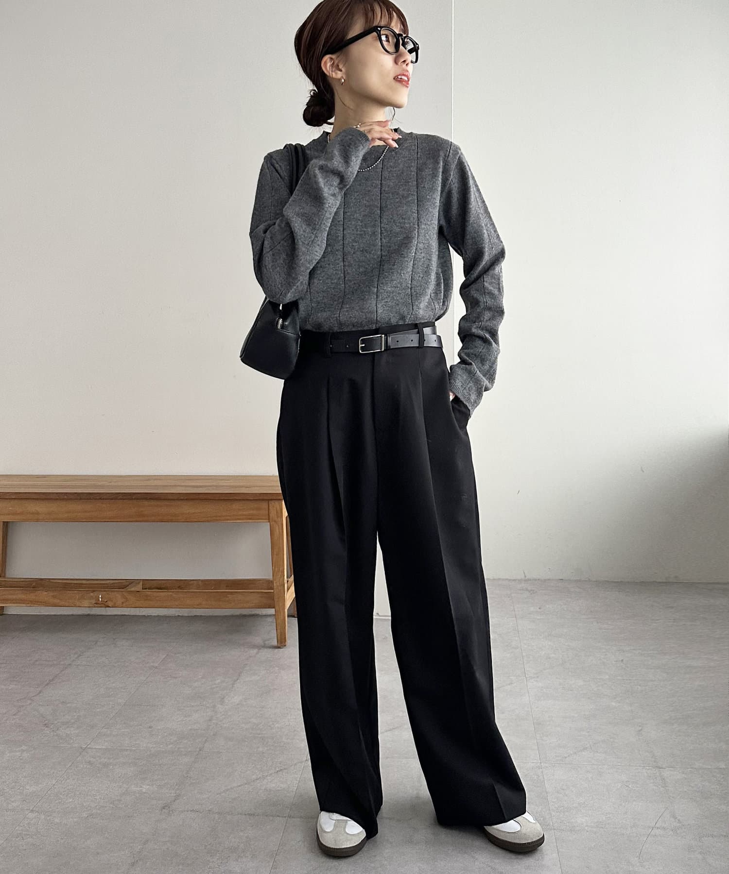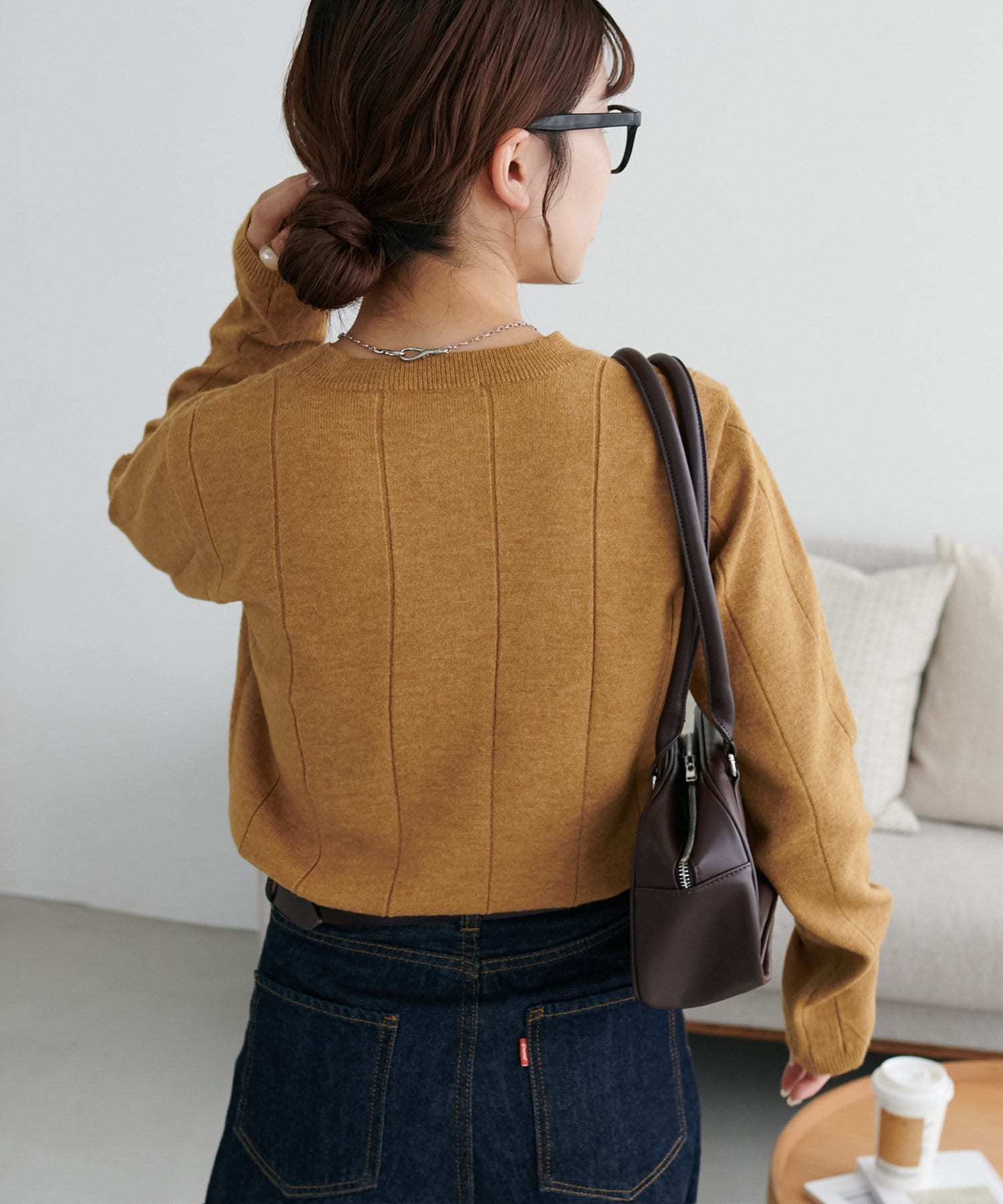 ・シンプルなデザインでどんなスタイリングにも合わせやすいウールライクプルオーバー