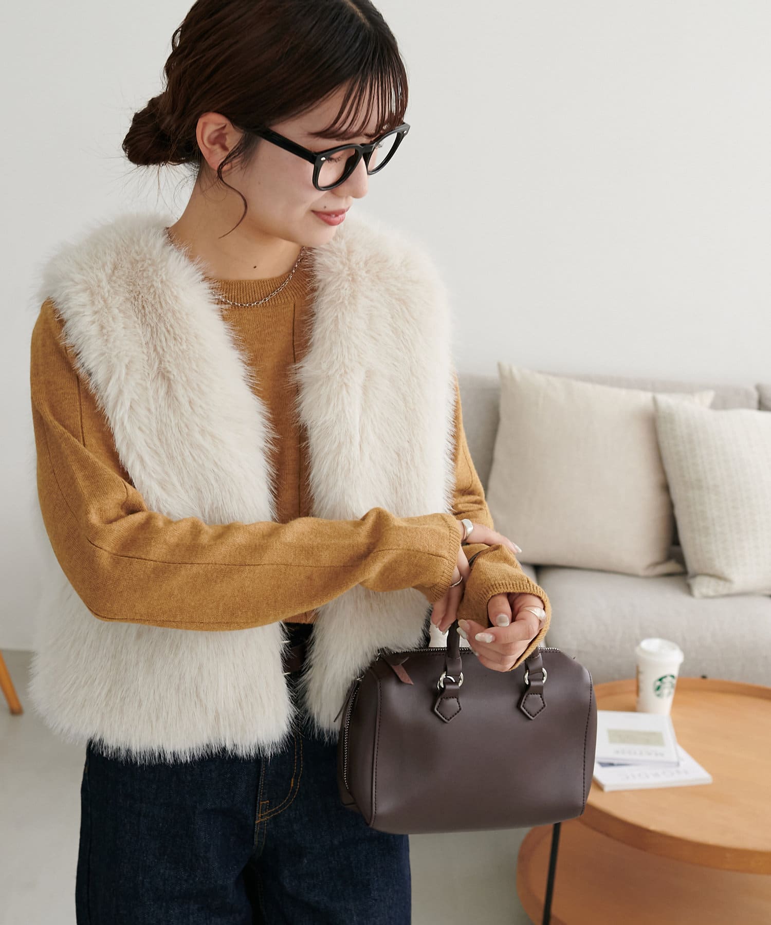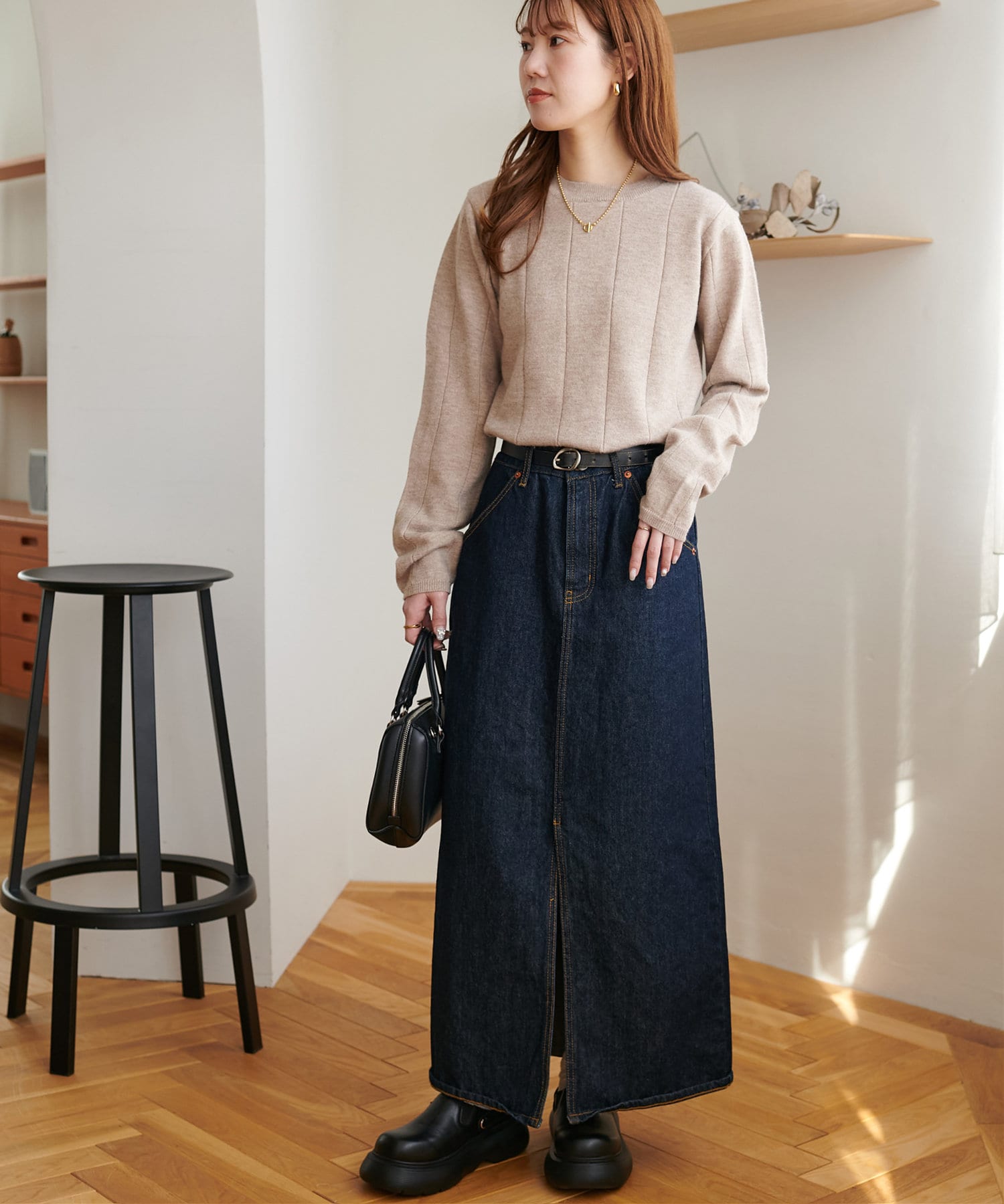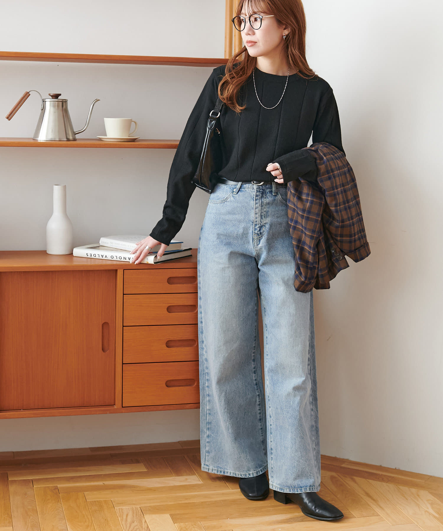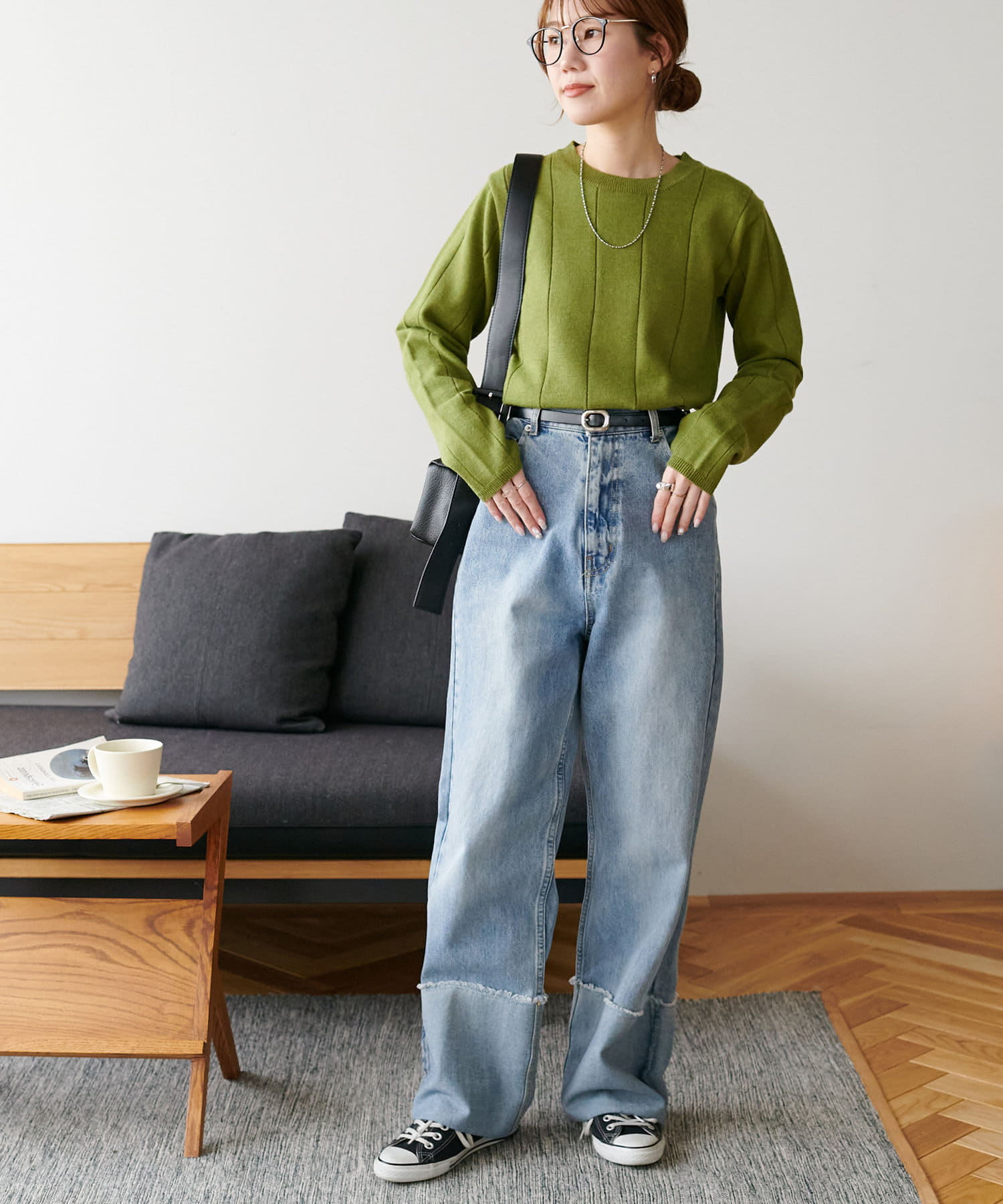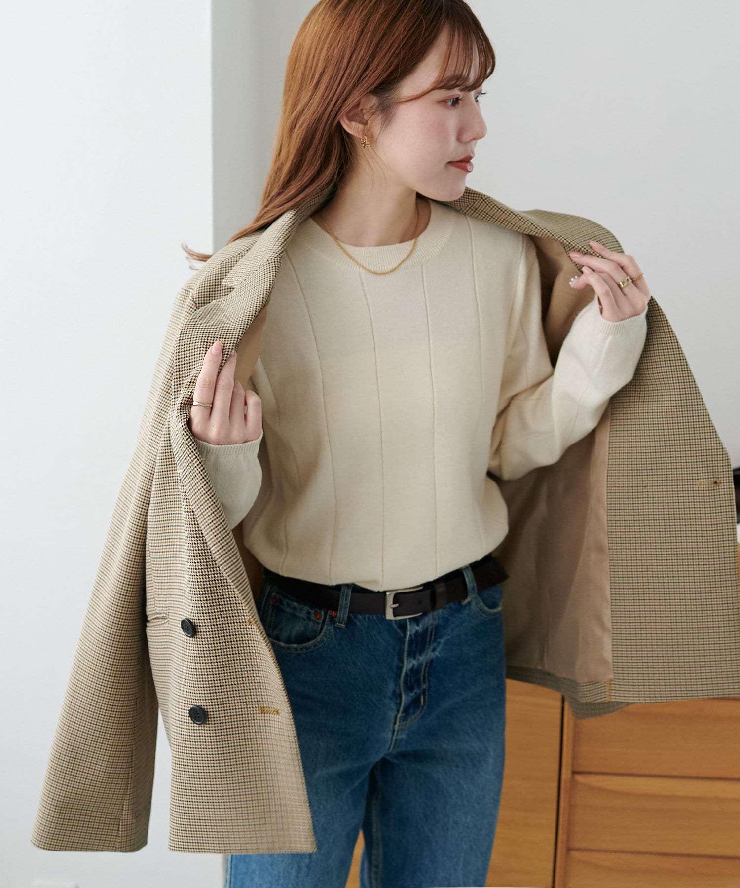 ・シンプルなデザインでどんなスタイリングにも合わせやすいウールライクプルオーバー