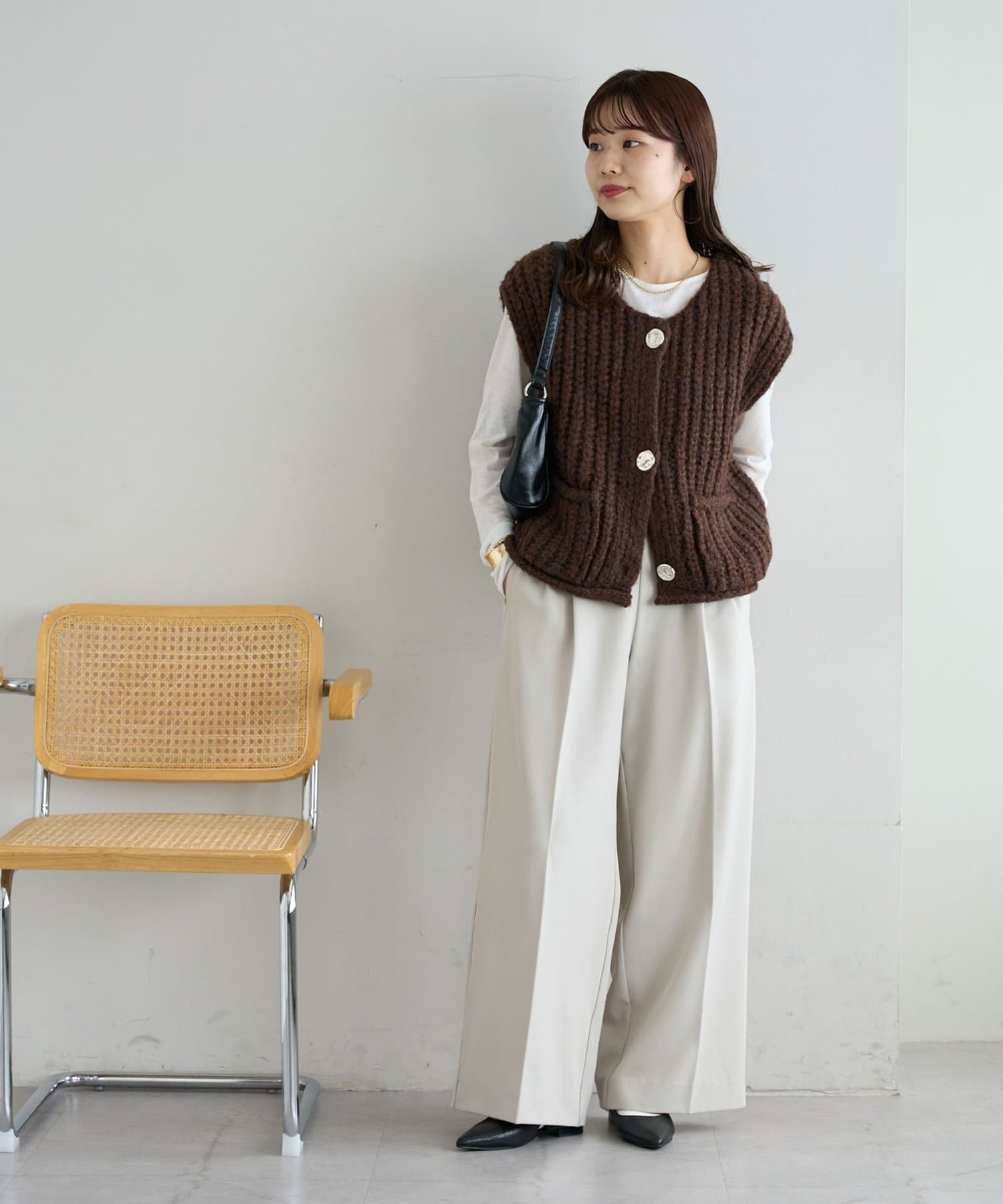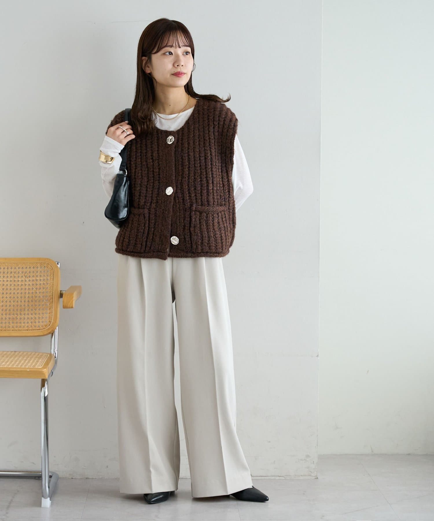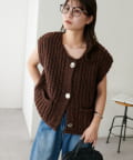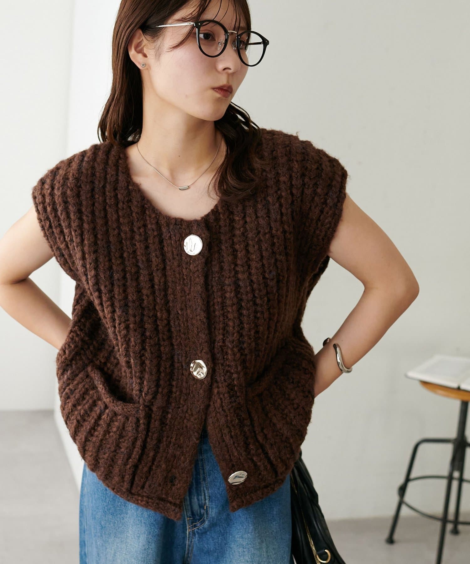 ・大きなデザインボタンが目を引く主役級ニットベスト