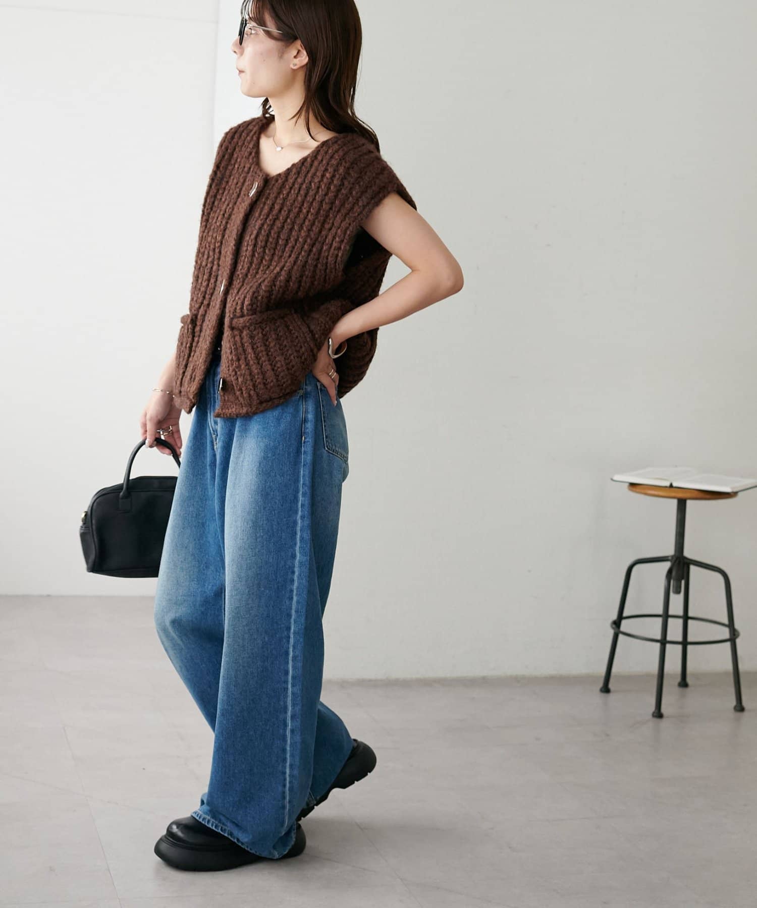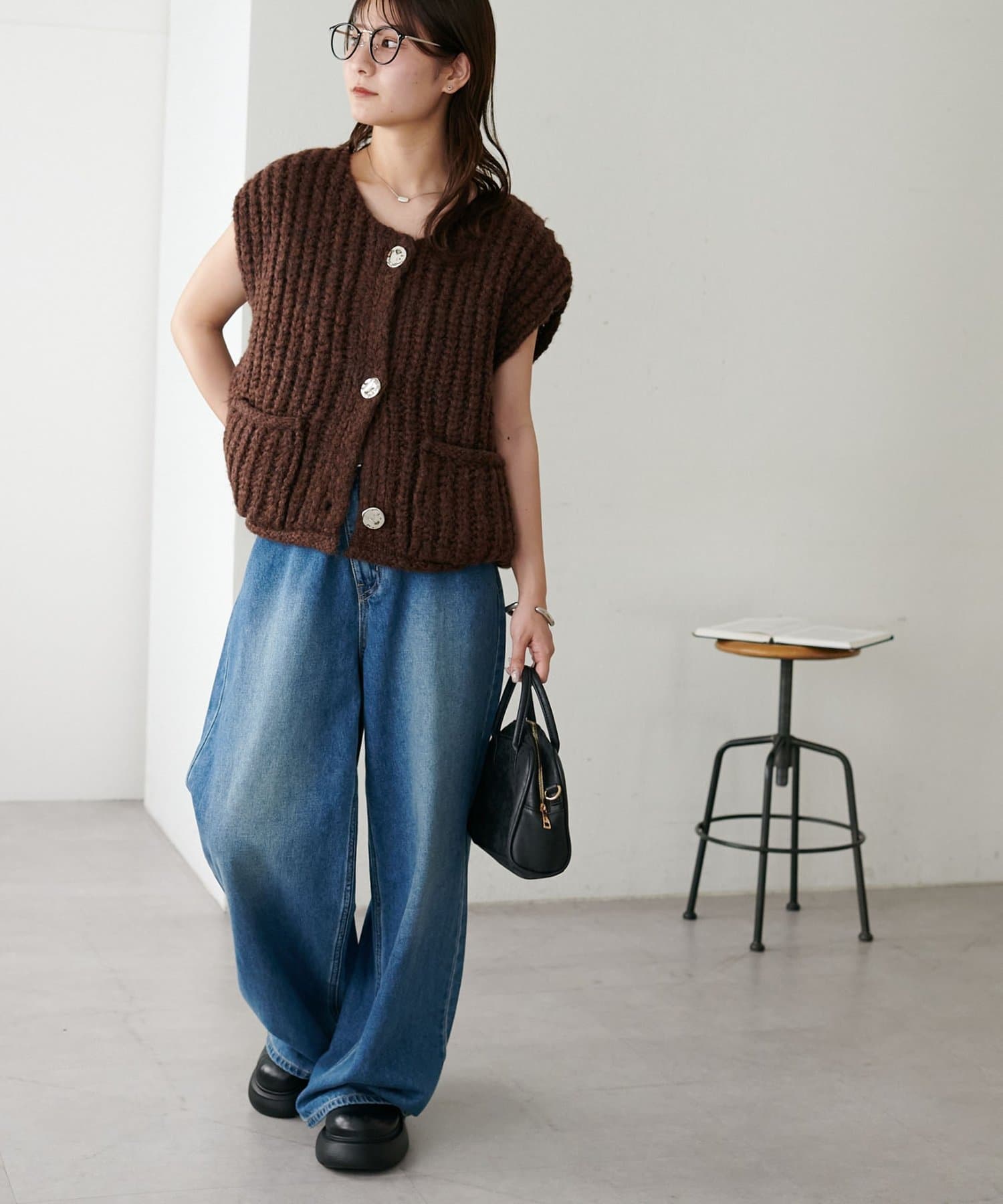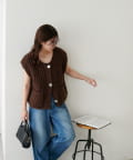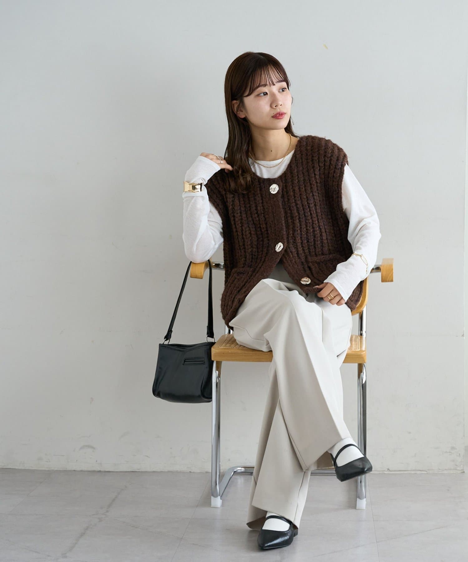 ・大きなデザインボタンが目を引く主役級ニットベスト
