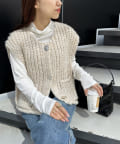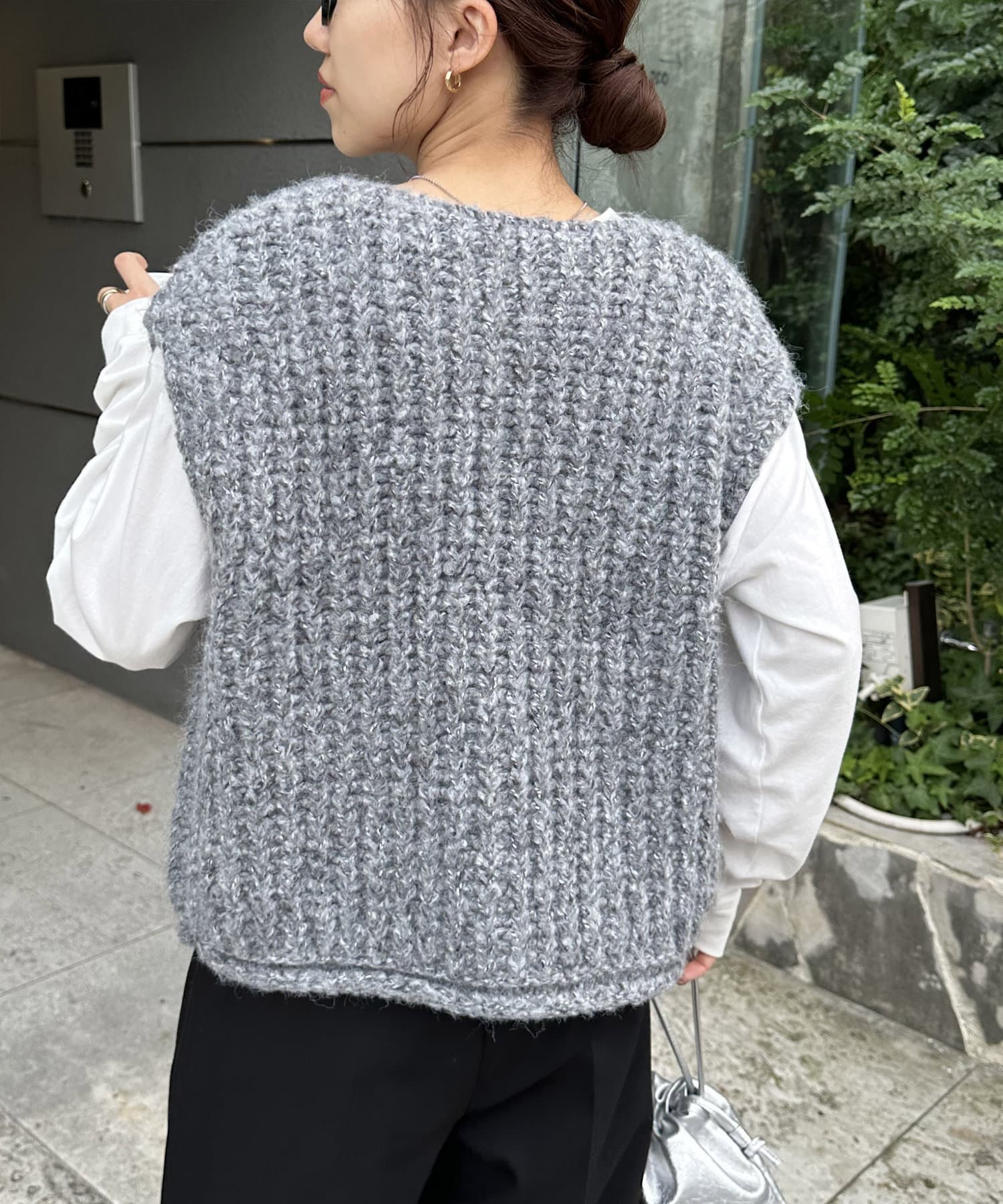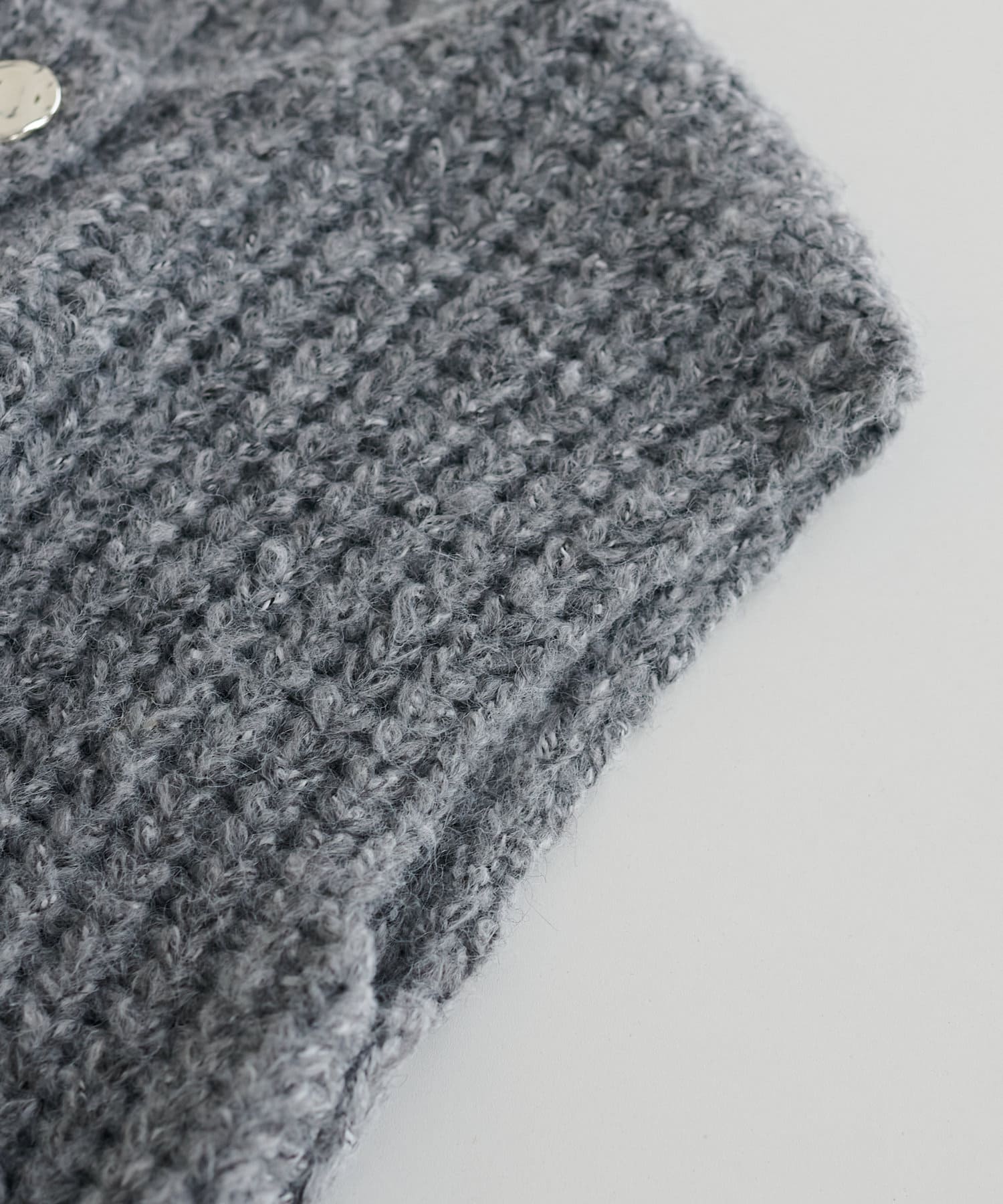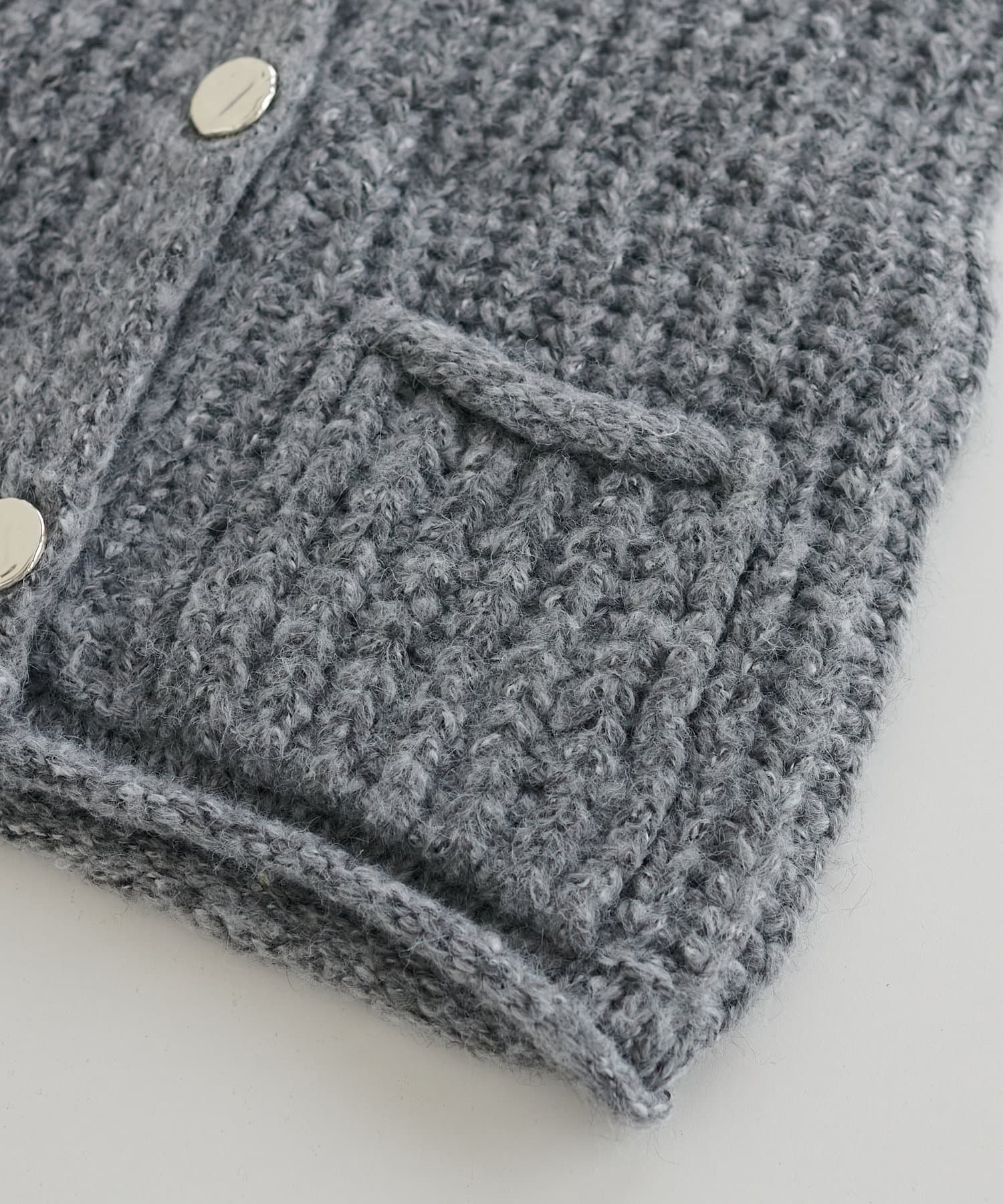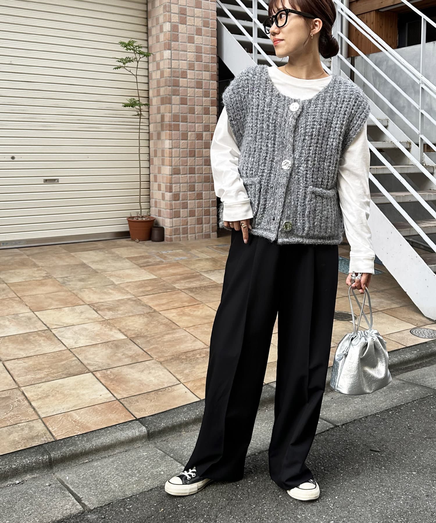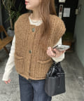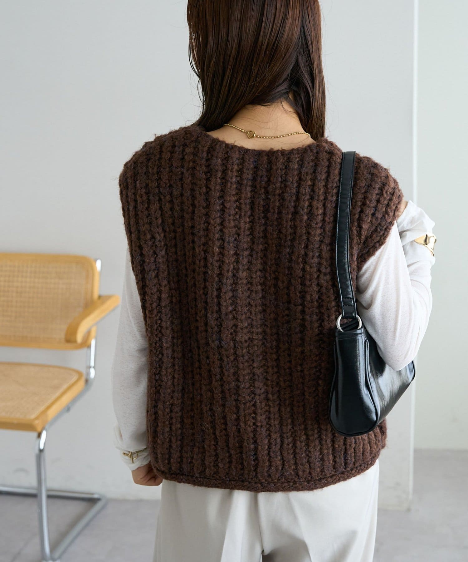 大きなデザインボタンが目を引くニットベスト。ざっくりとした網目がシーズンムードを高めてくれます♪フロントのポケットもアクセントになり他とは差がつく1枚に!