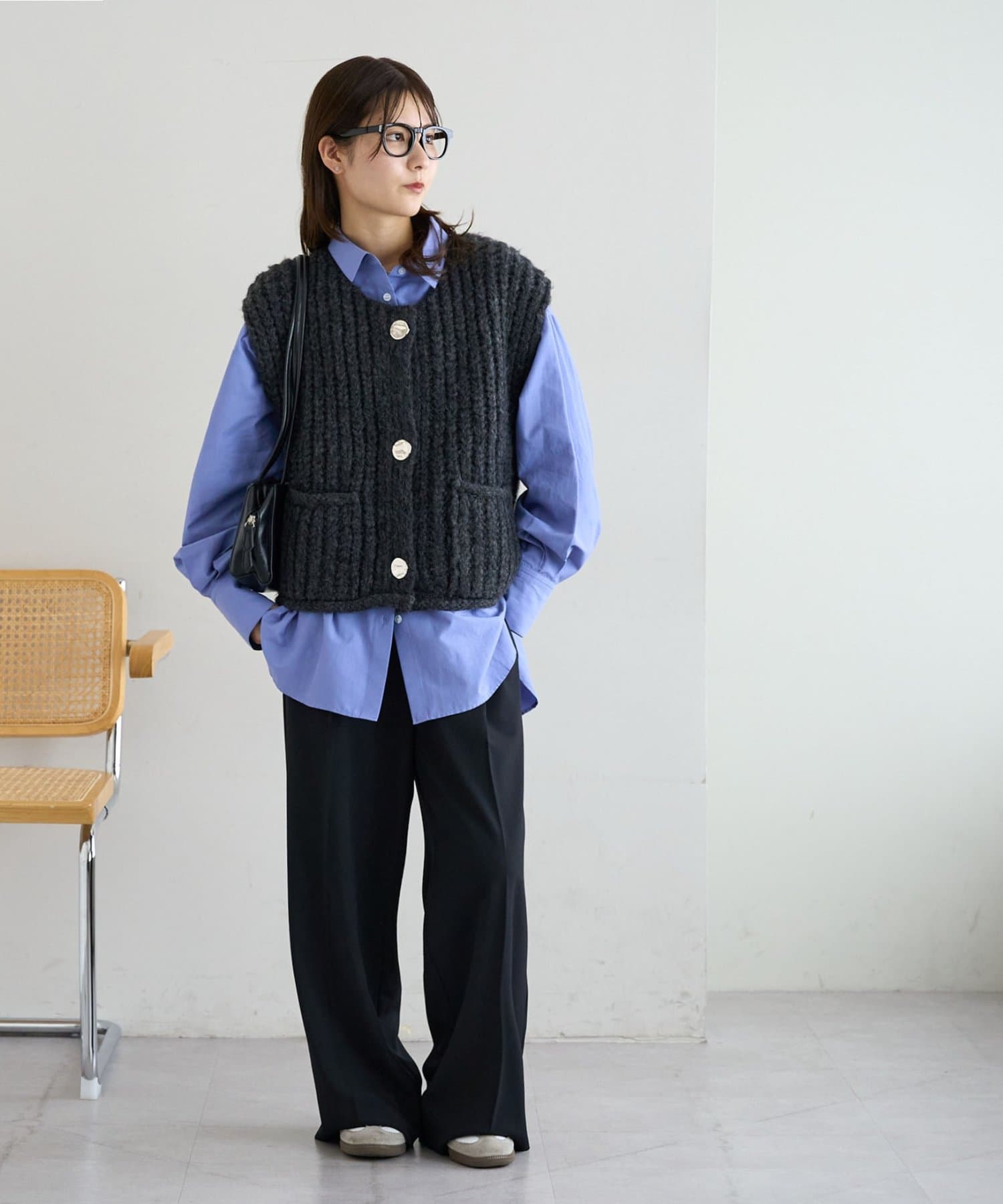【新色追加!/WEB限定】ポケット付ビッグボタンベスト
