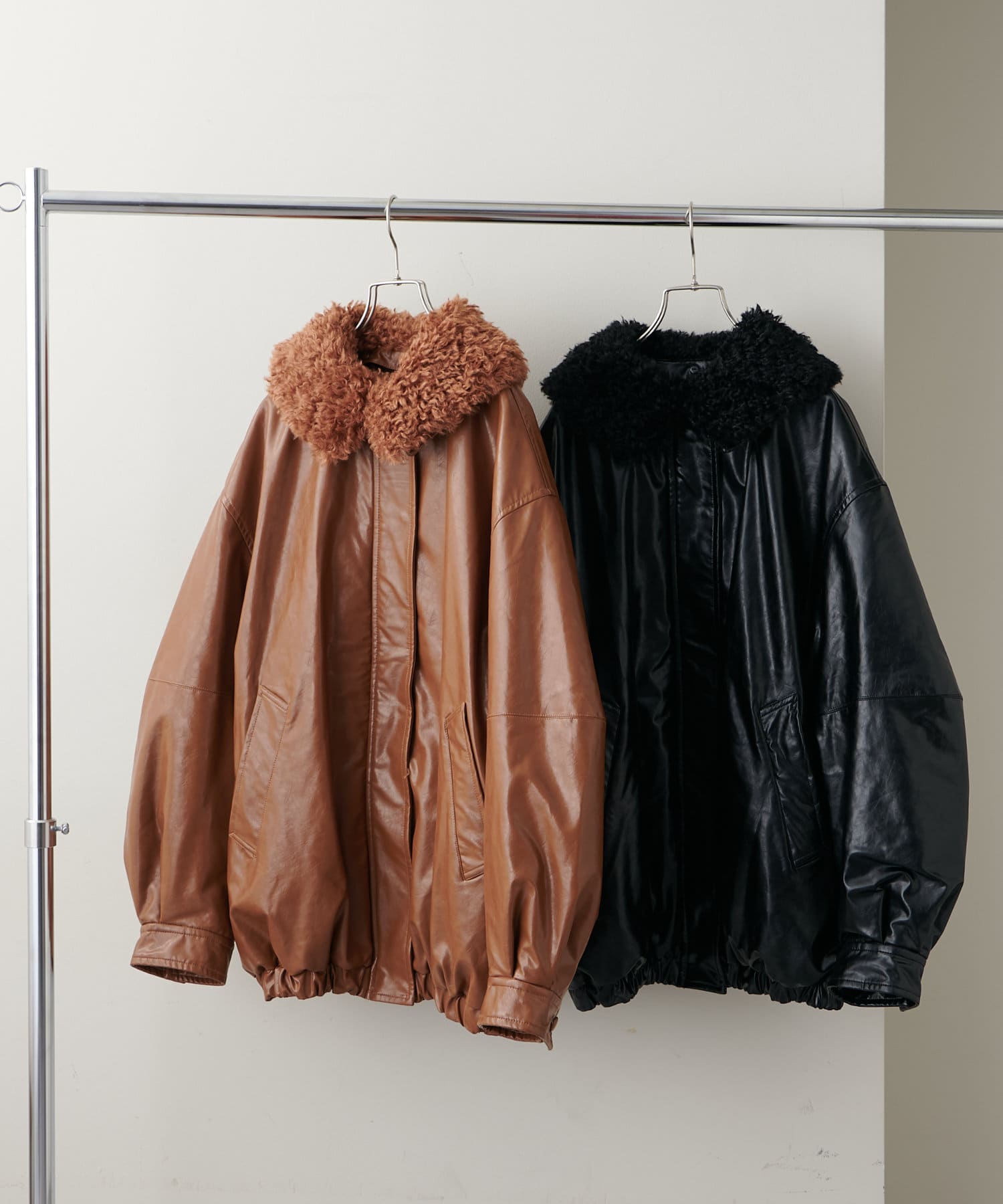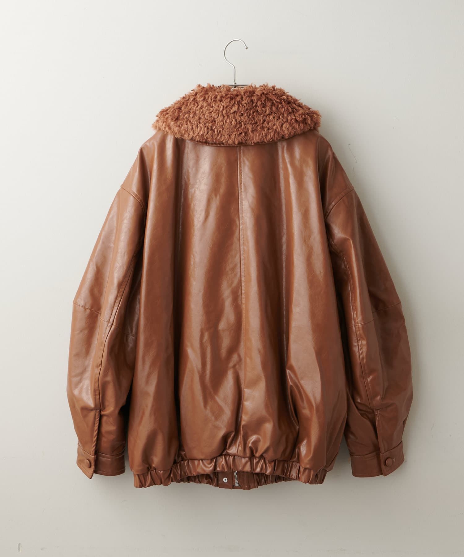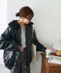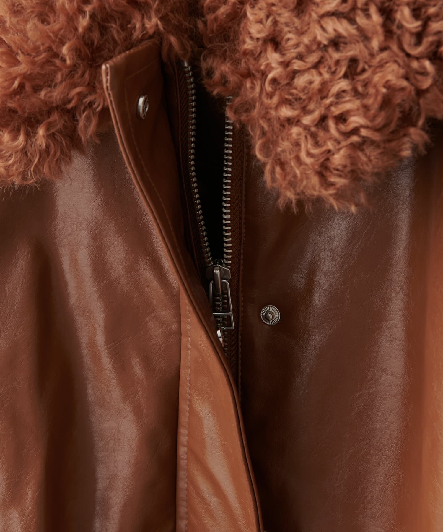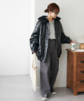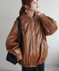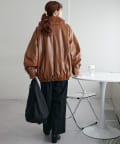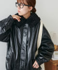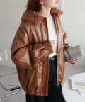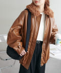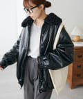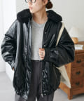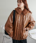 【Discoat】ガラスレザーボア衿ブルゾン