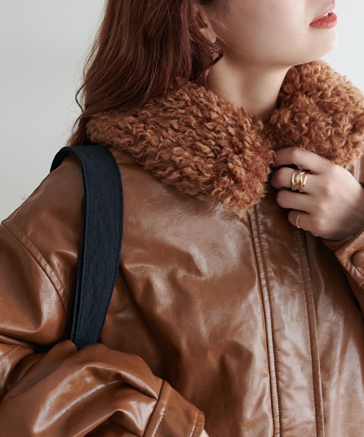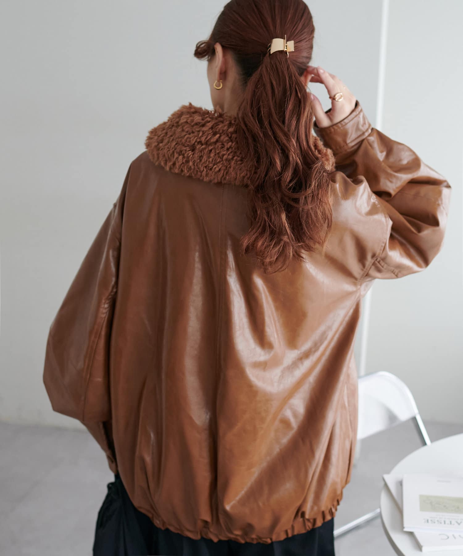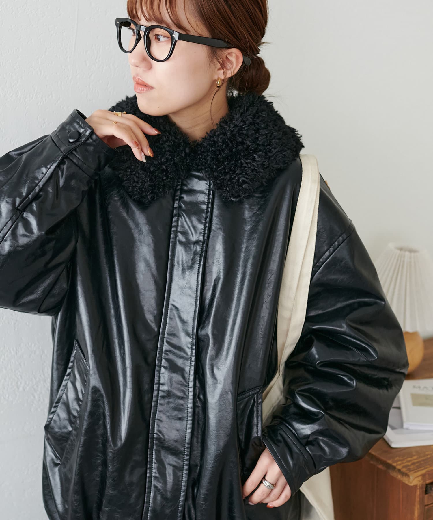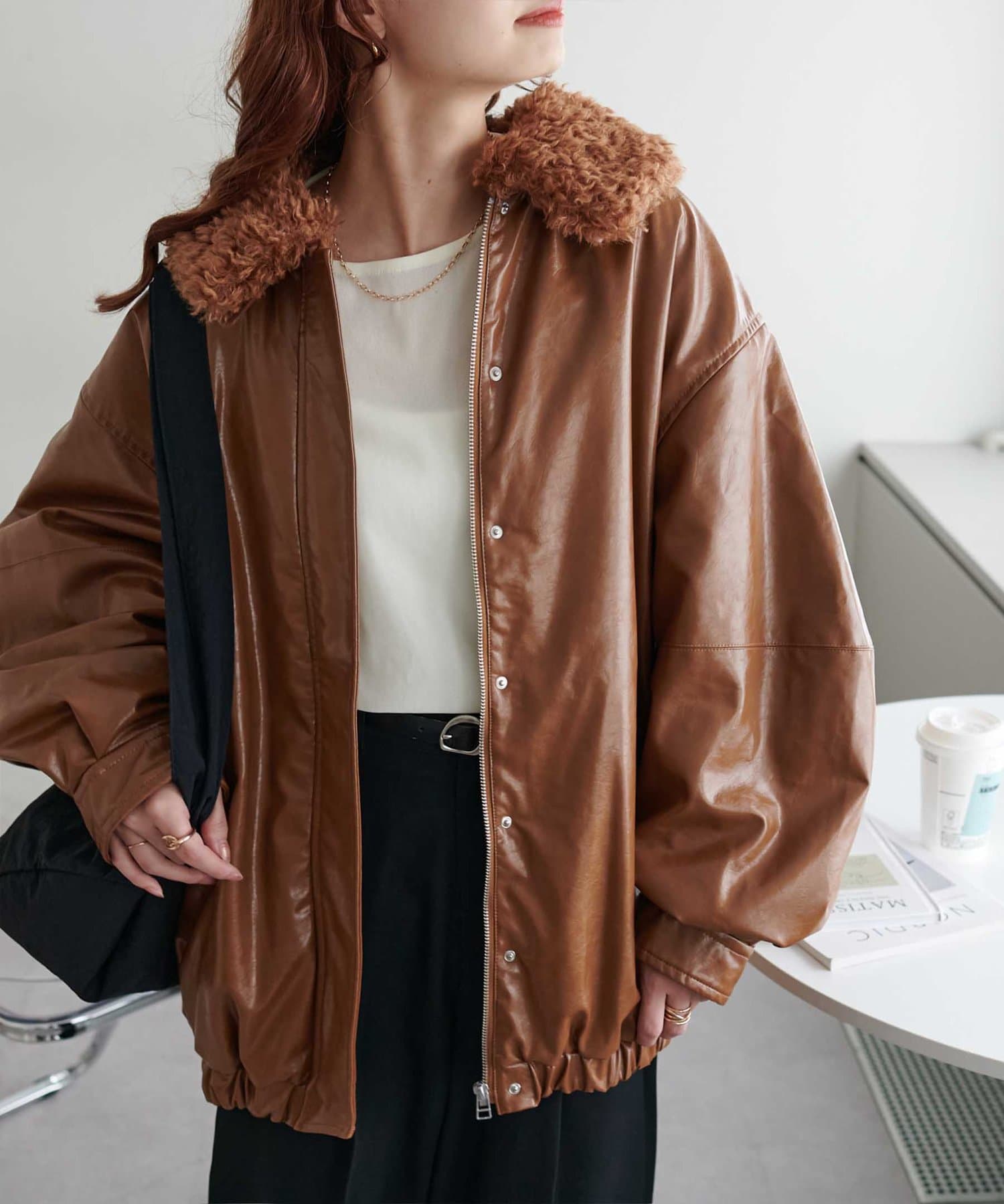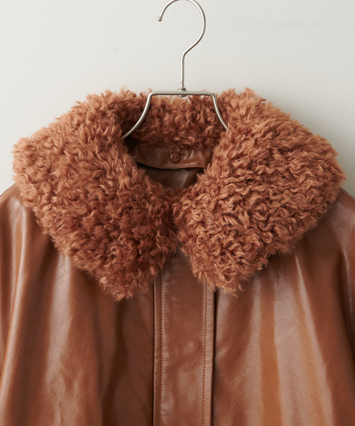 こなれ感のあるゆったりとしたシルエットでメンズライクな印象になり、取り外し可能なボア襟付きで着回しの幅が広がります。トレンドのレザーアイテムはひとつ持っているだけで今年の気分を楽しめます。