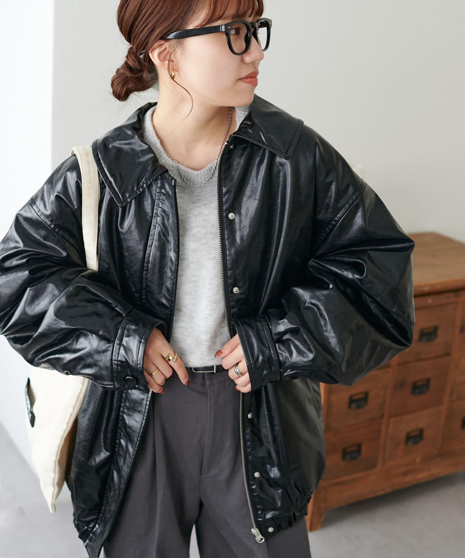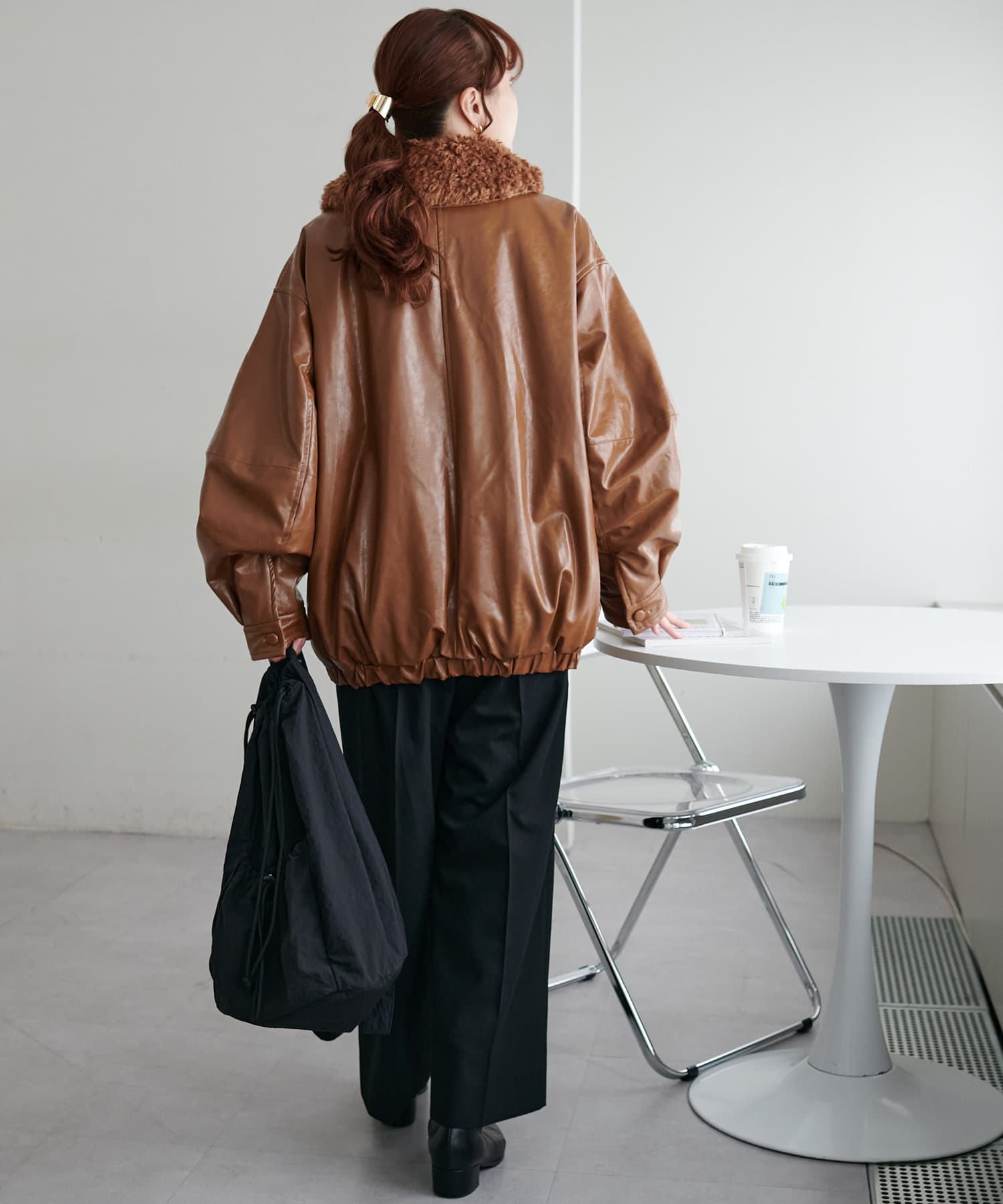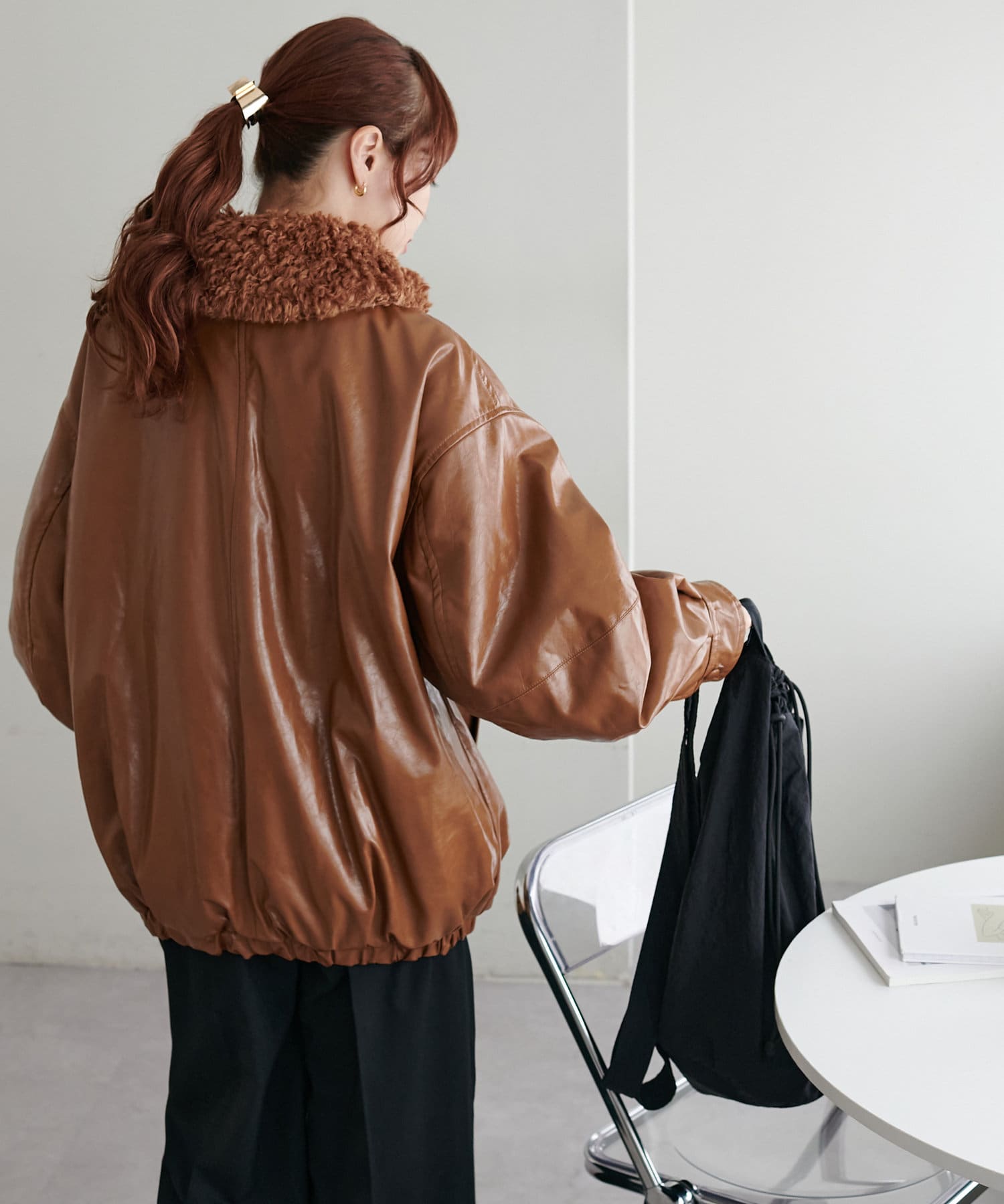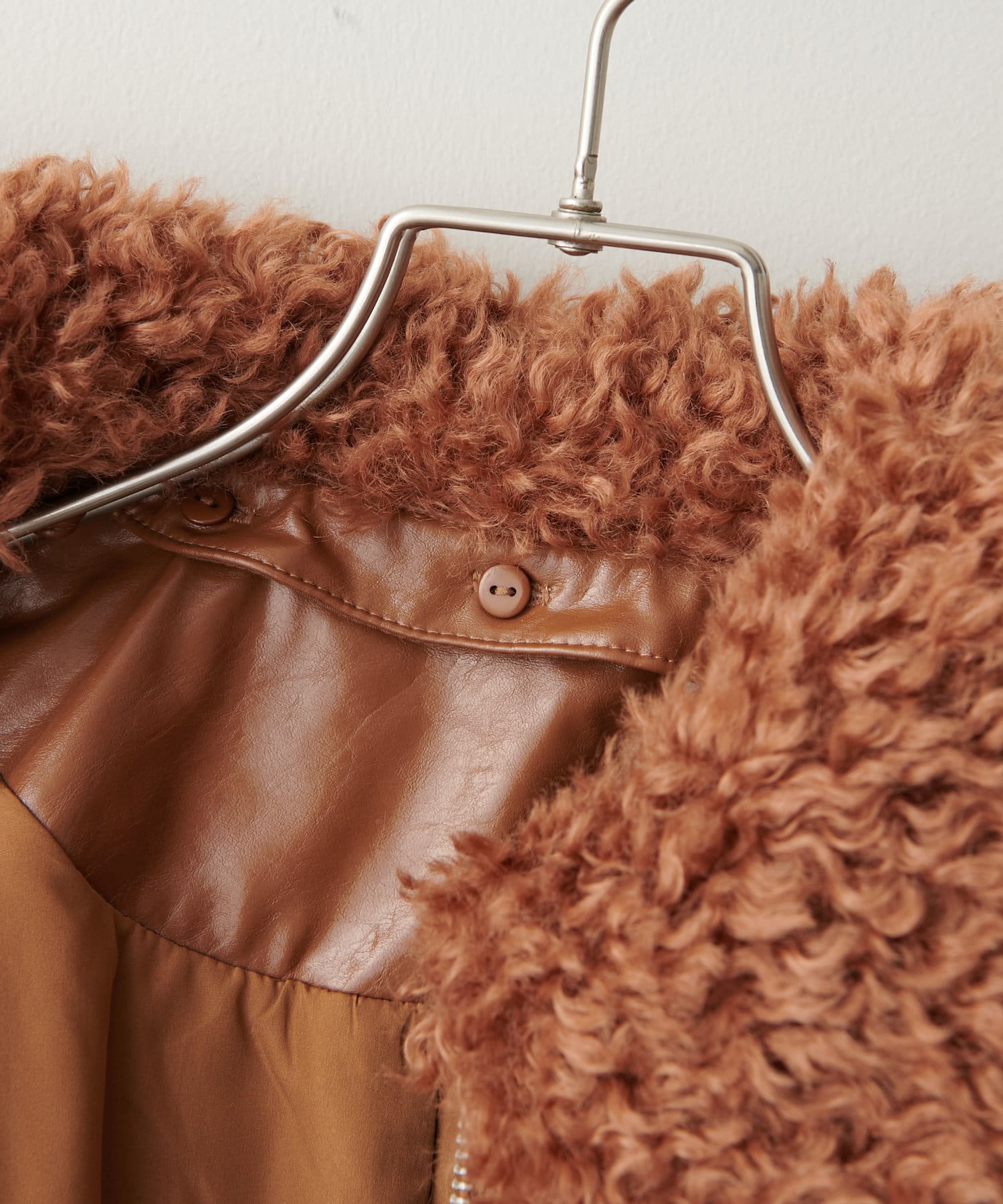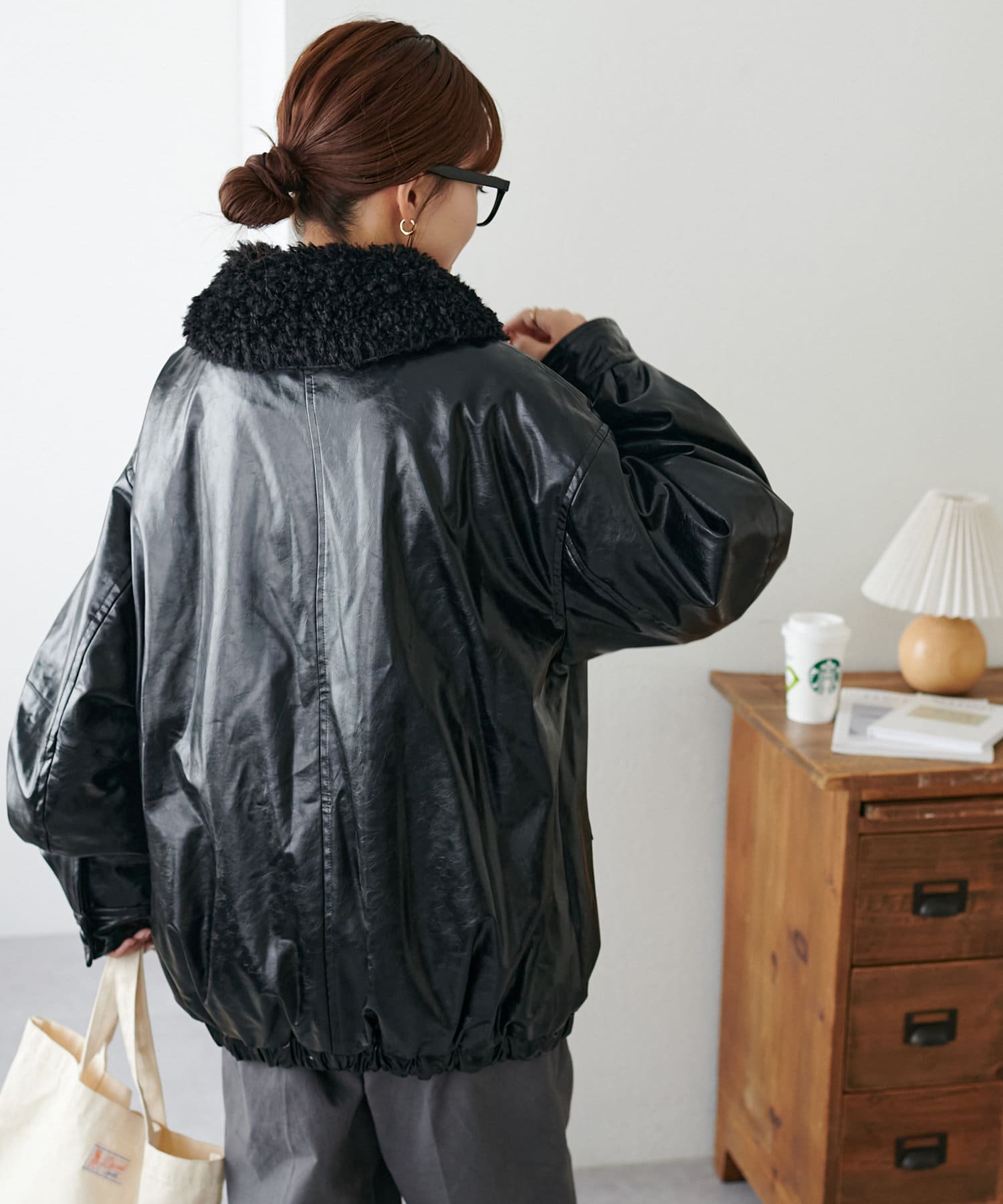 こなれ感のあるゆったりとしたシルエットでメンズライクな印象になり、取り外し可能なボア襟付きで着回しの幅が広がります。トレンドのレザーアイテムはひとつ持っているだけで今年の気分を楽しめます。