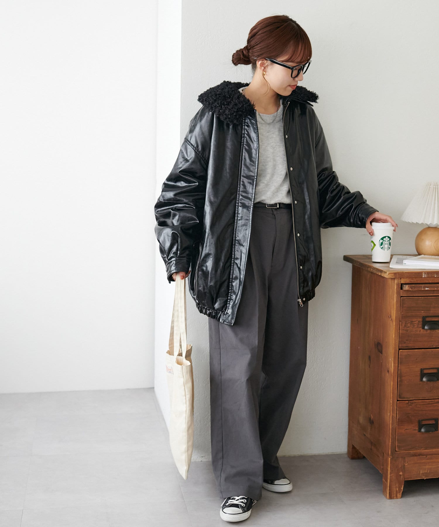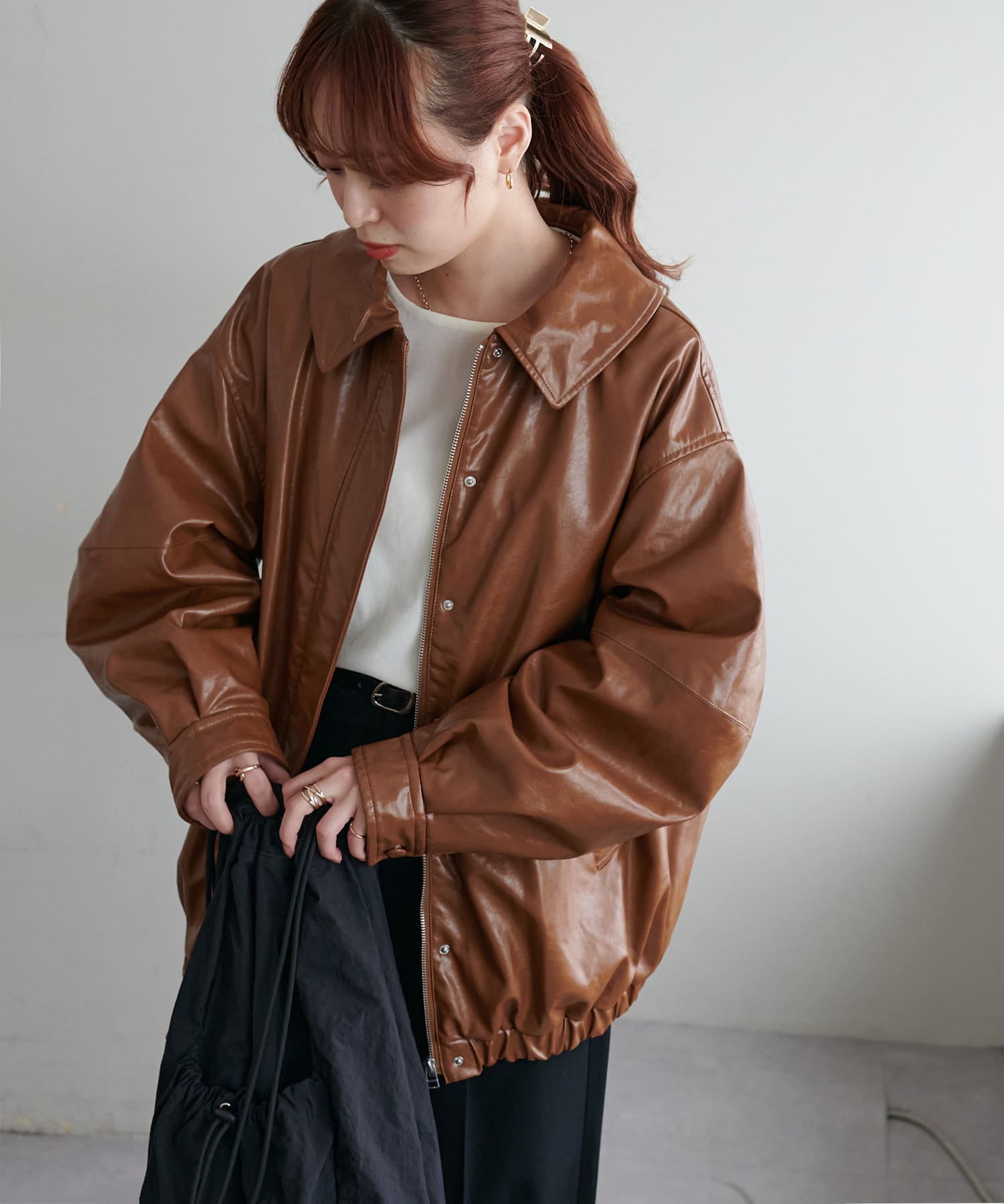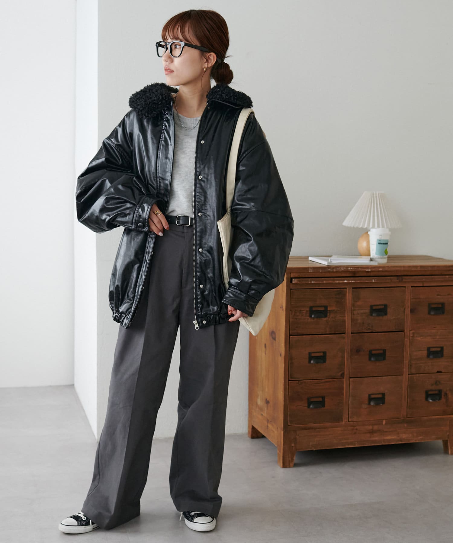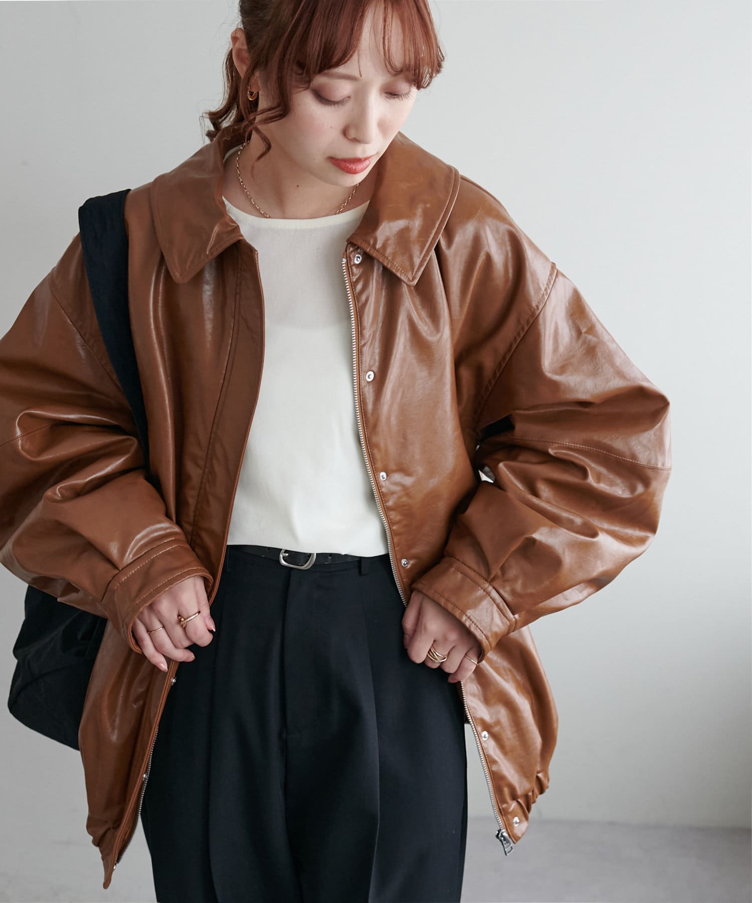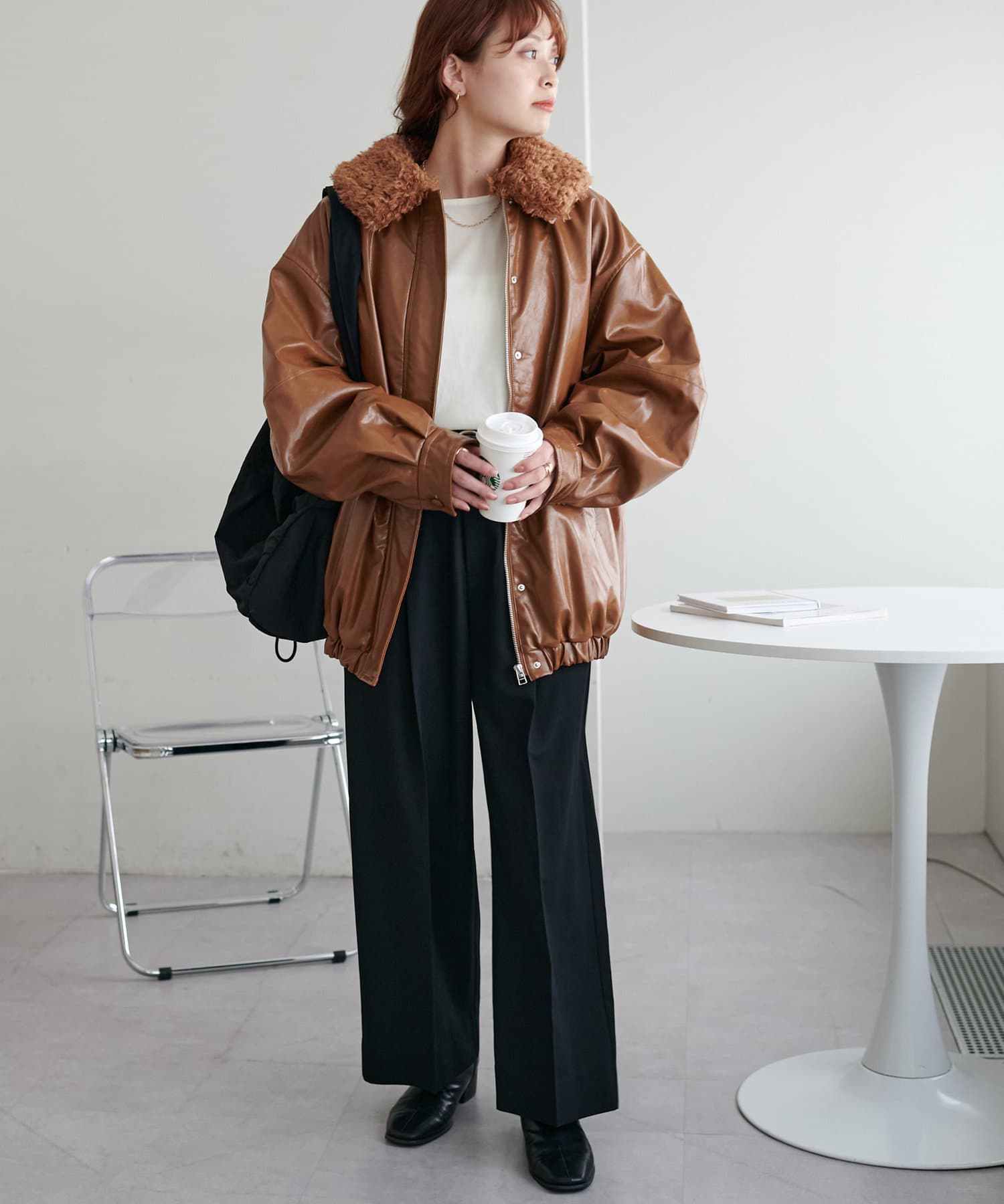 こなれ感のあるゆったりとしたシルエットでメンズライクな印象になり、取り外し可能なボア襟付きで着回しの幅が広がります。トレンドのレザーアイテムはひとつ持っているだけで今年の気分を楽しめます。