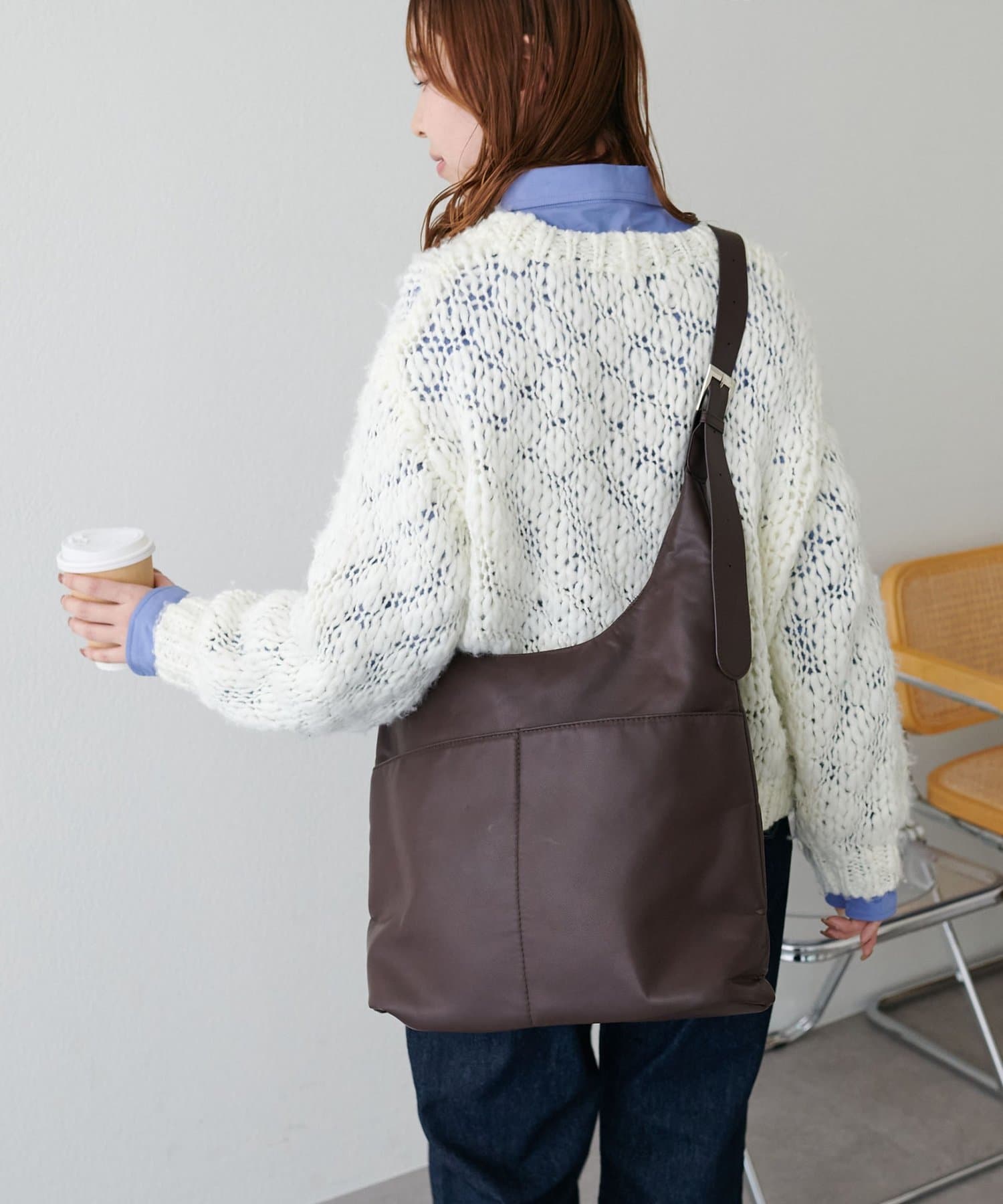 シンプルなデザインでオンオフ問わずに使用できる万能バッグ。軽く柔らかい素材感で体に馴染みます。A4サイズもすっぽり入るので通勤・通学にもおすすめ◎ポケットが4つあり、整理整頓しやすいのも嬉しいポイントです。長さ調節可能で肩掛け、ななめ掛けと2WAYで使用でき雰囲気を変えてお楽しみいただけます♩