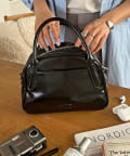 ヴィンテージ調の生地と深みのあるカラーで、上品な印象を高めるボストンバッグ。大きすぎず、小さすぎずなサイズ感で、しっかり大容量なので、おでかけにもピッタリです◎フロントのタグ風デザインがアクセントに。また、長さ調節可能なショルダー紐も付属しておりますので、気分や用途によって持ち方を変えられます。カラーは定番のブラックと、秋冬らしい深みのあるダークブラウン、ボルドーの三色展開です♪