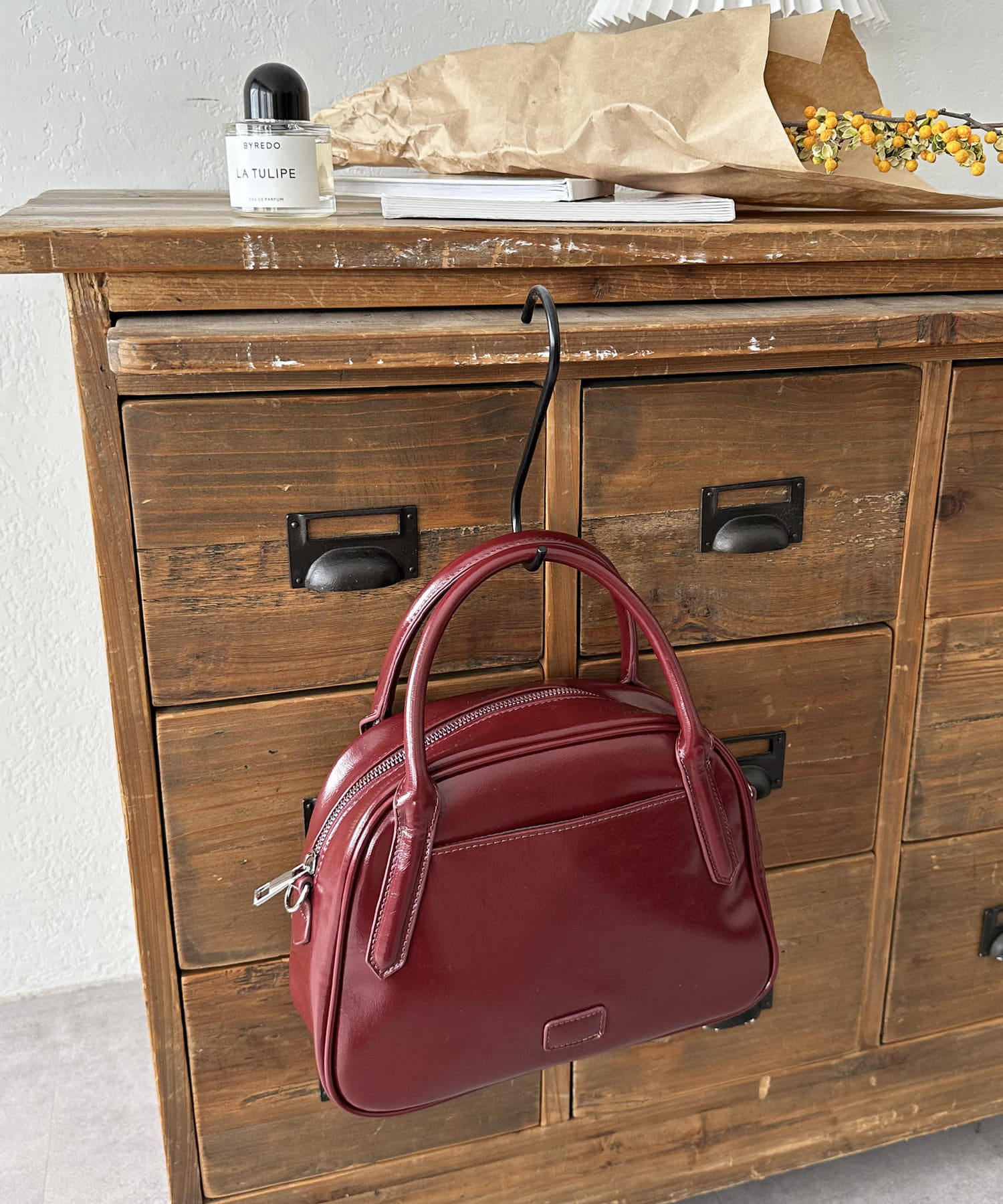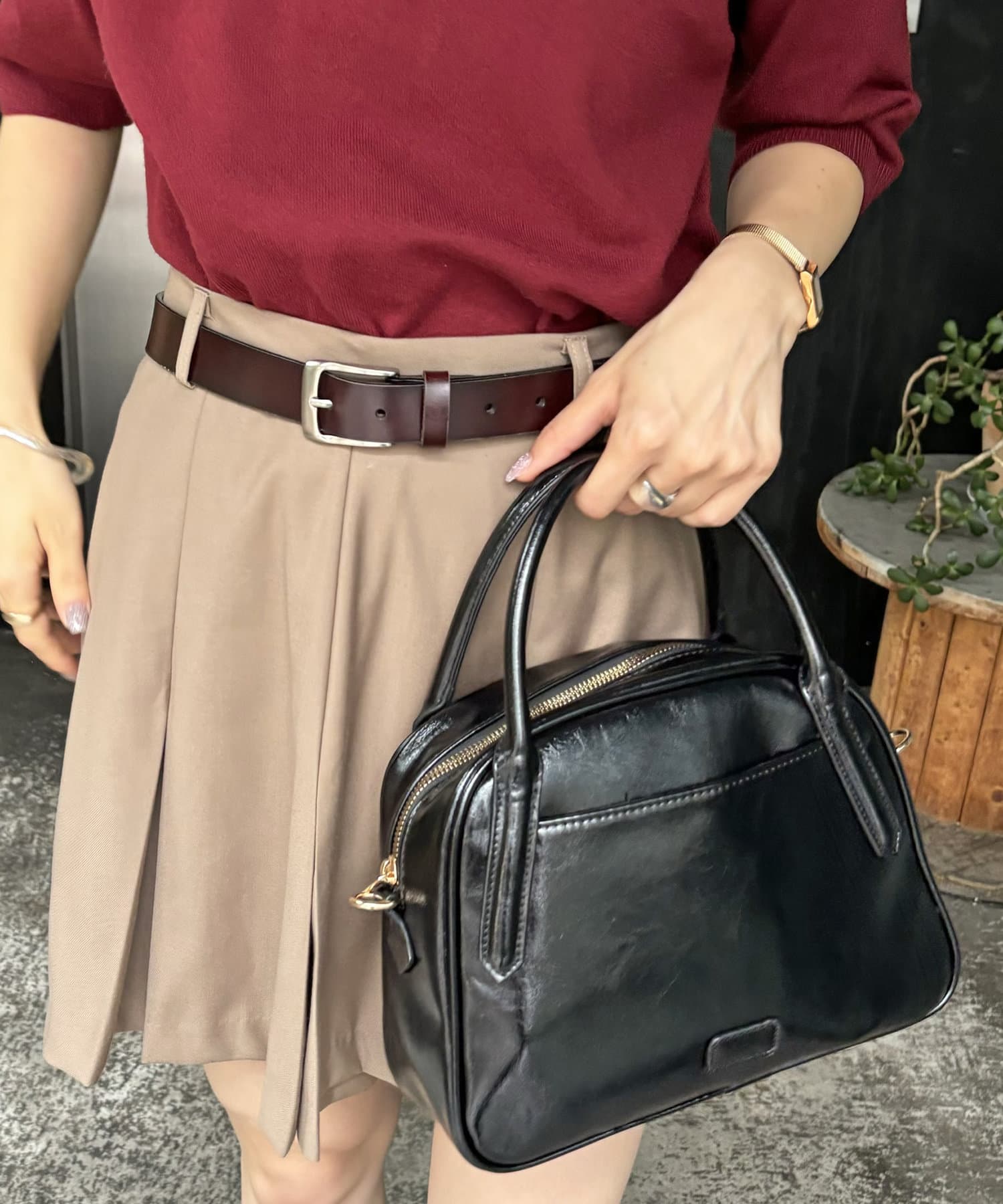 お色をギリギリまでダークブラウンと迷いましたが、差し色で持ちたかったのでボルドーを選びました!可愛い~