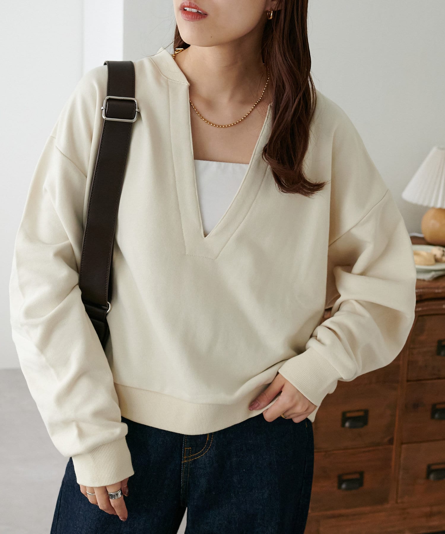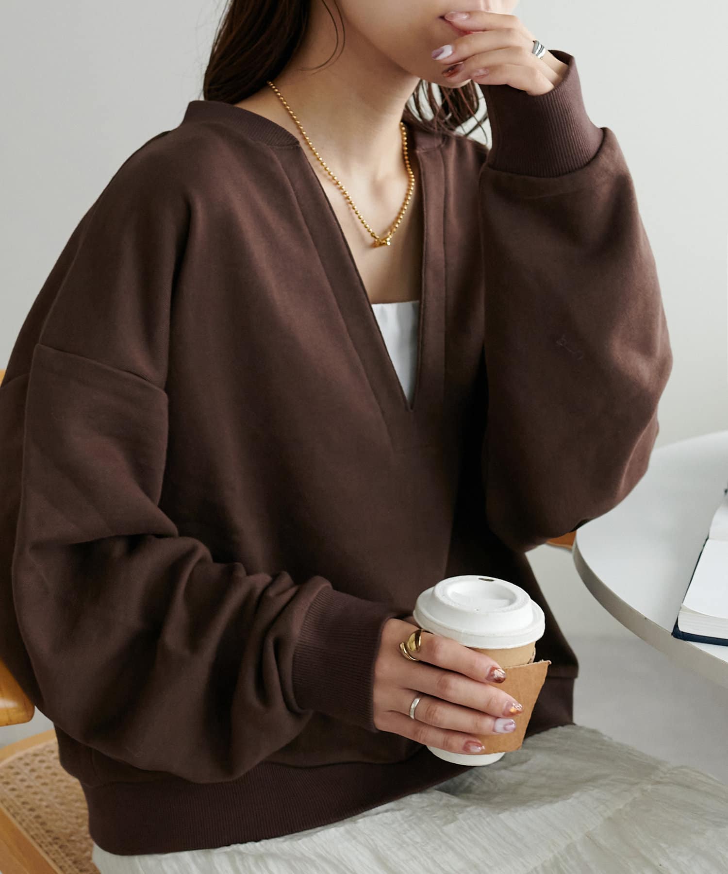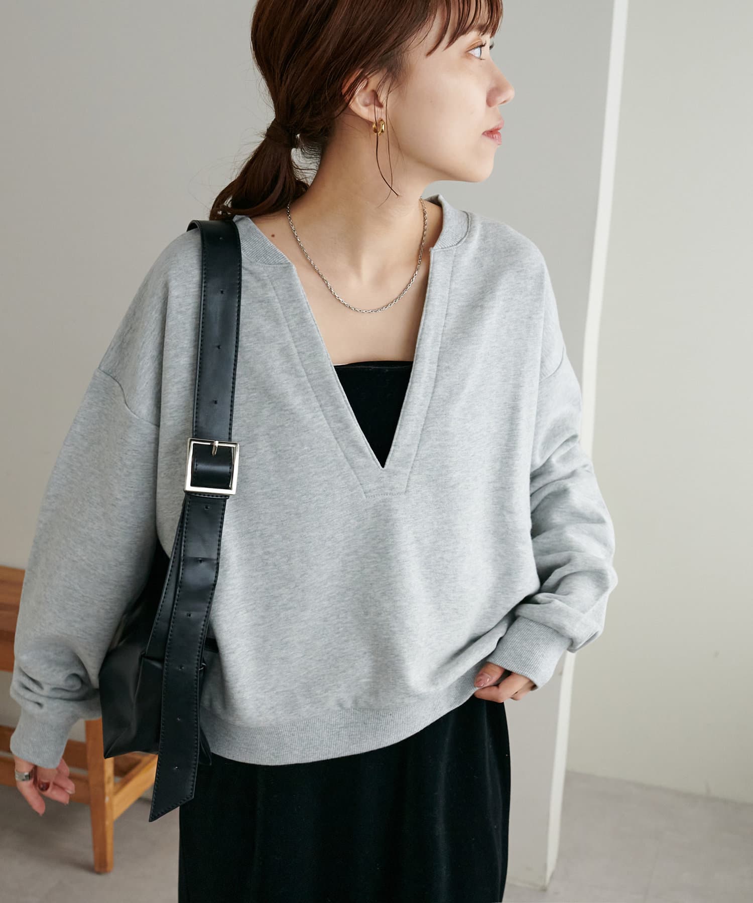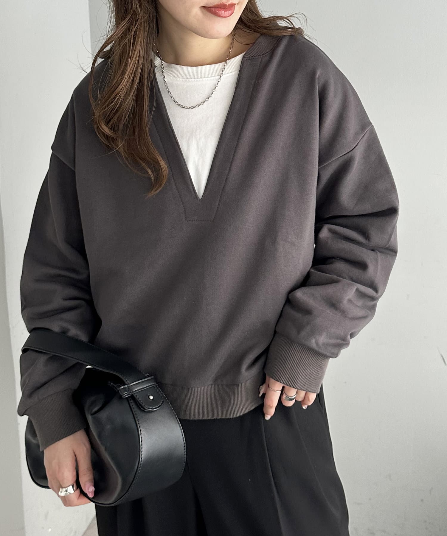 ・深めに開いたネックで、スッキリとした印象を与えるスウェットプルオーバー