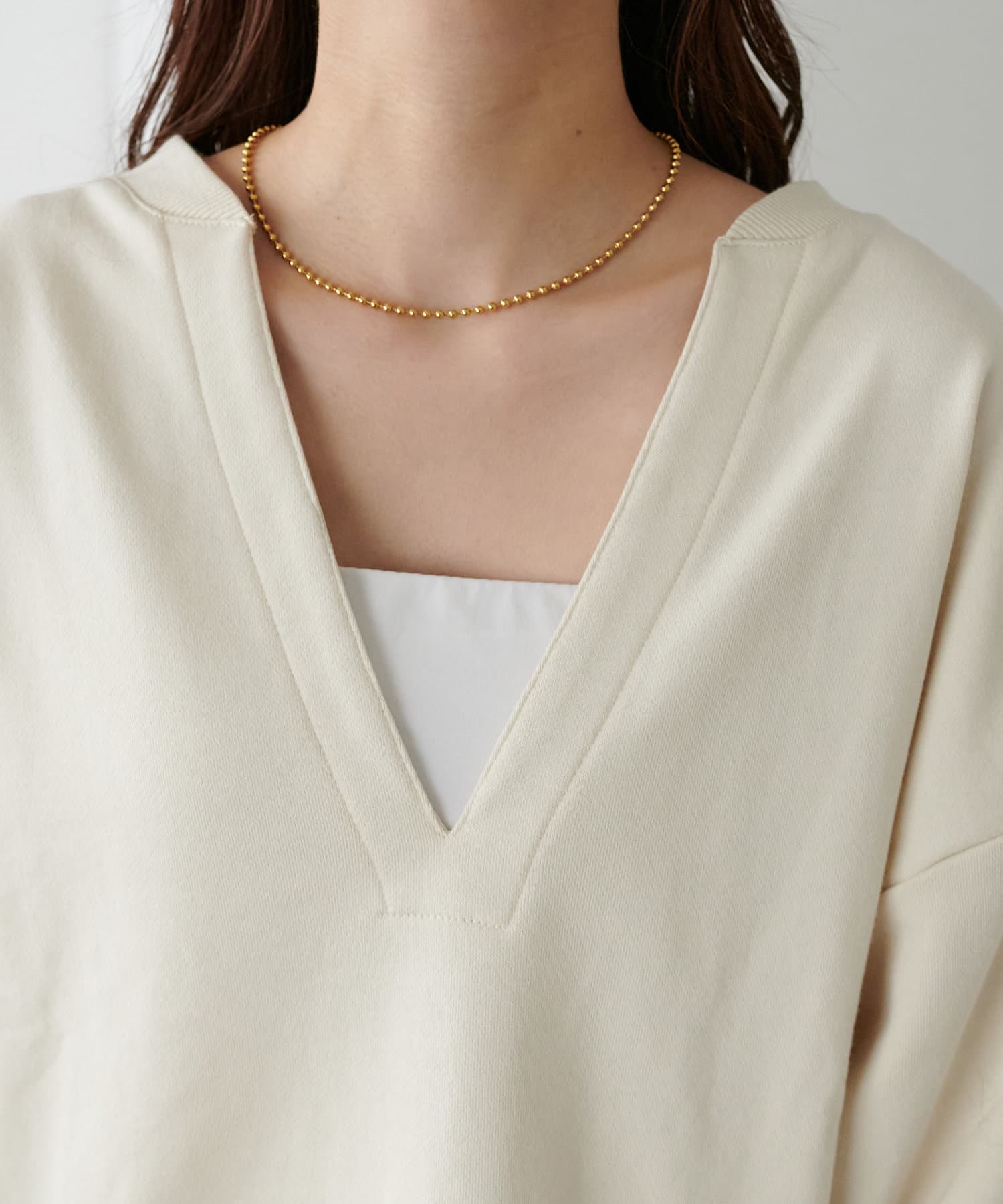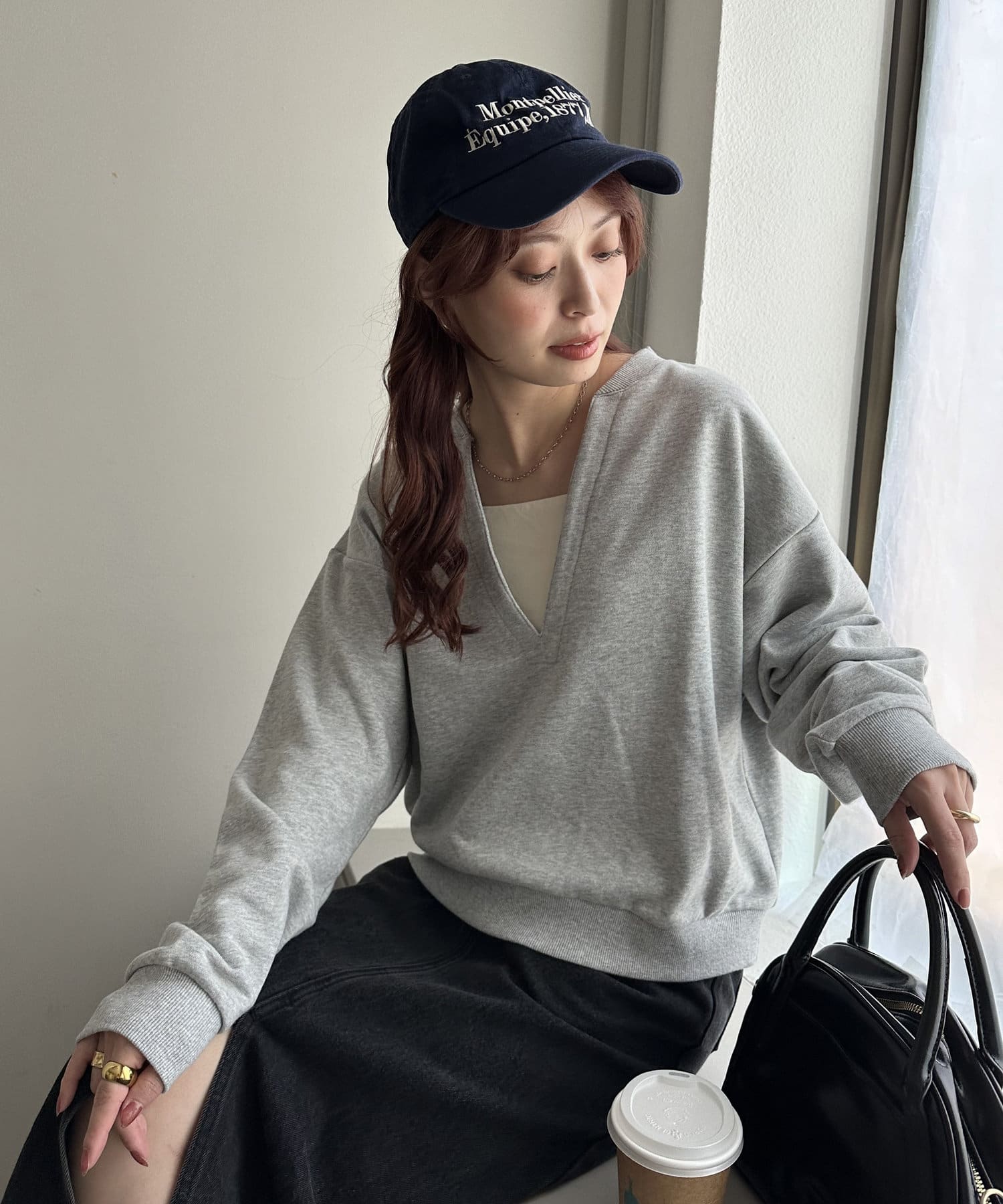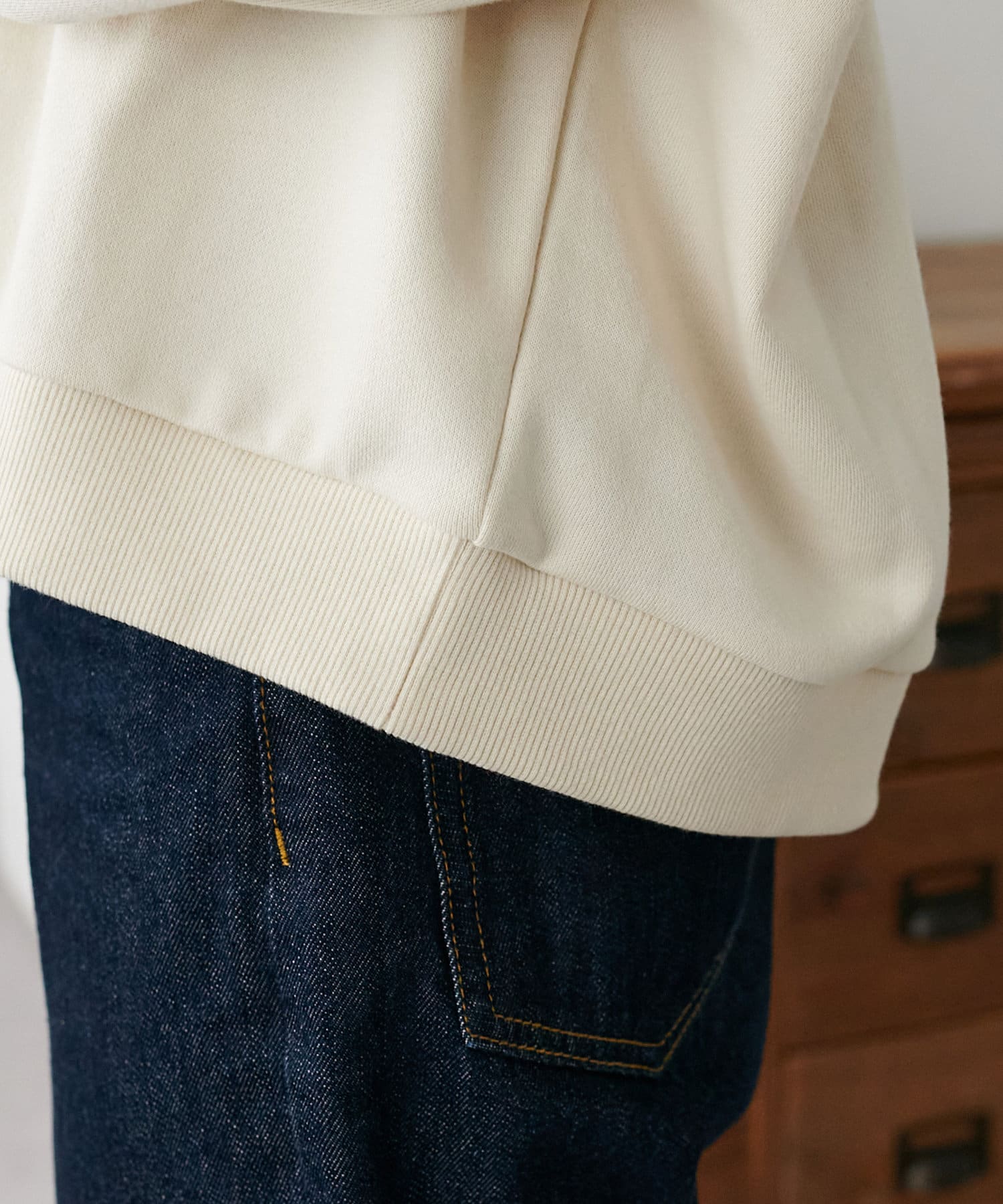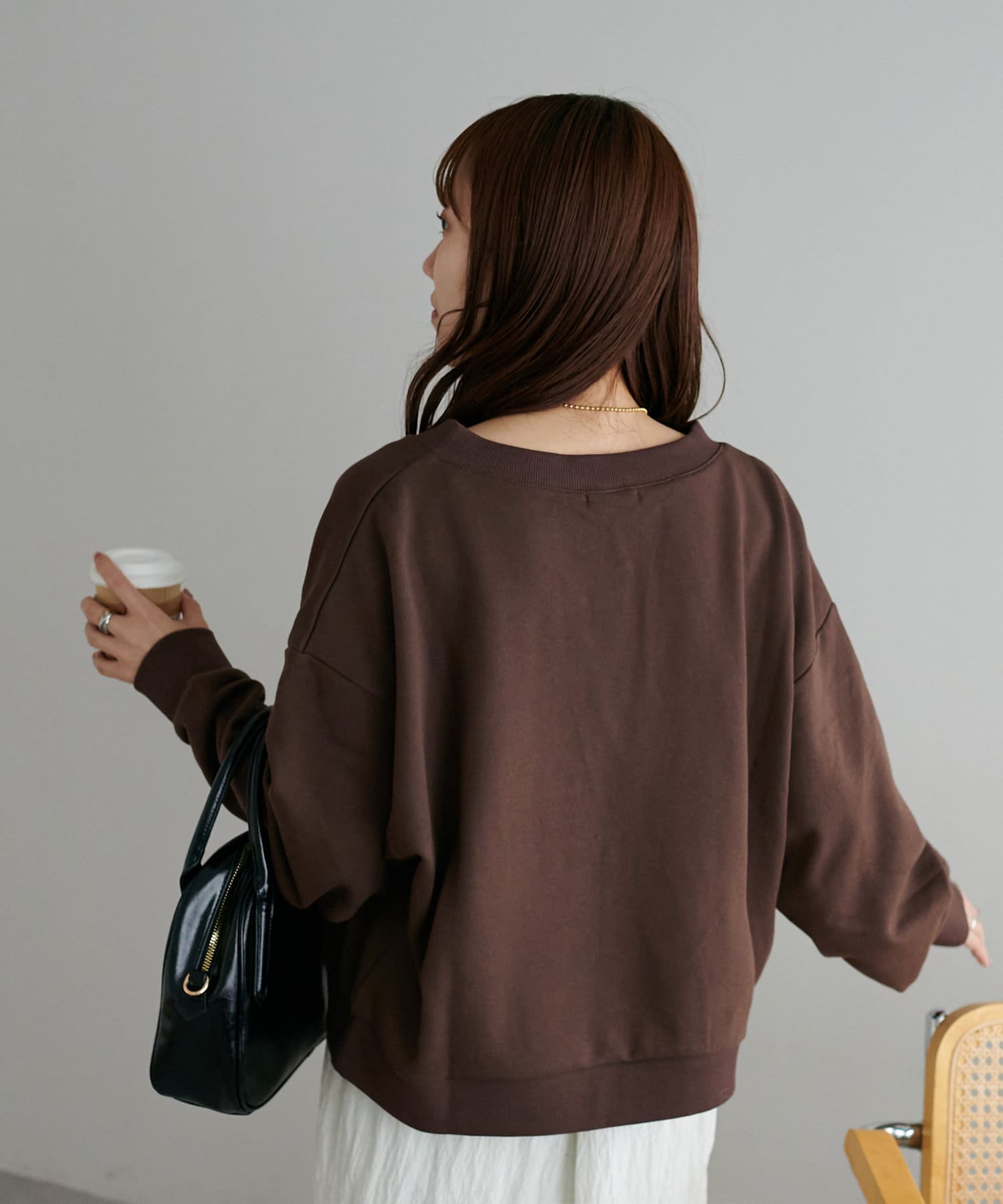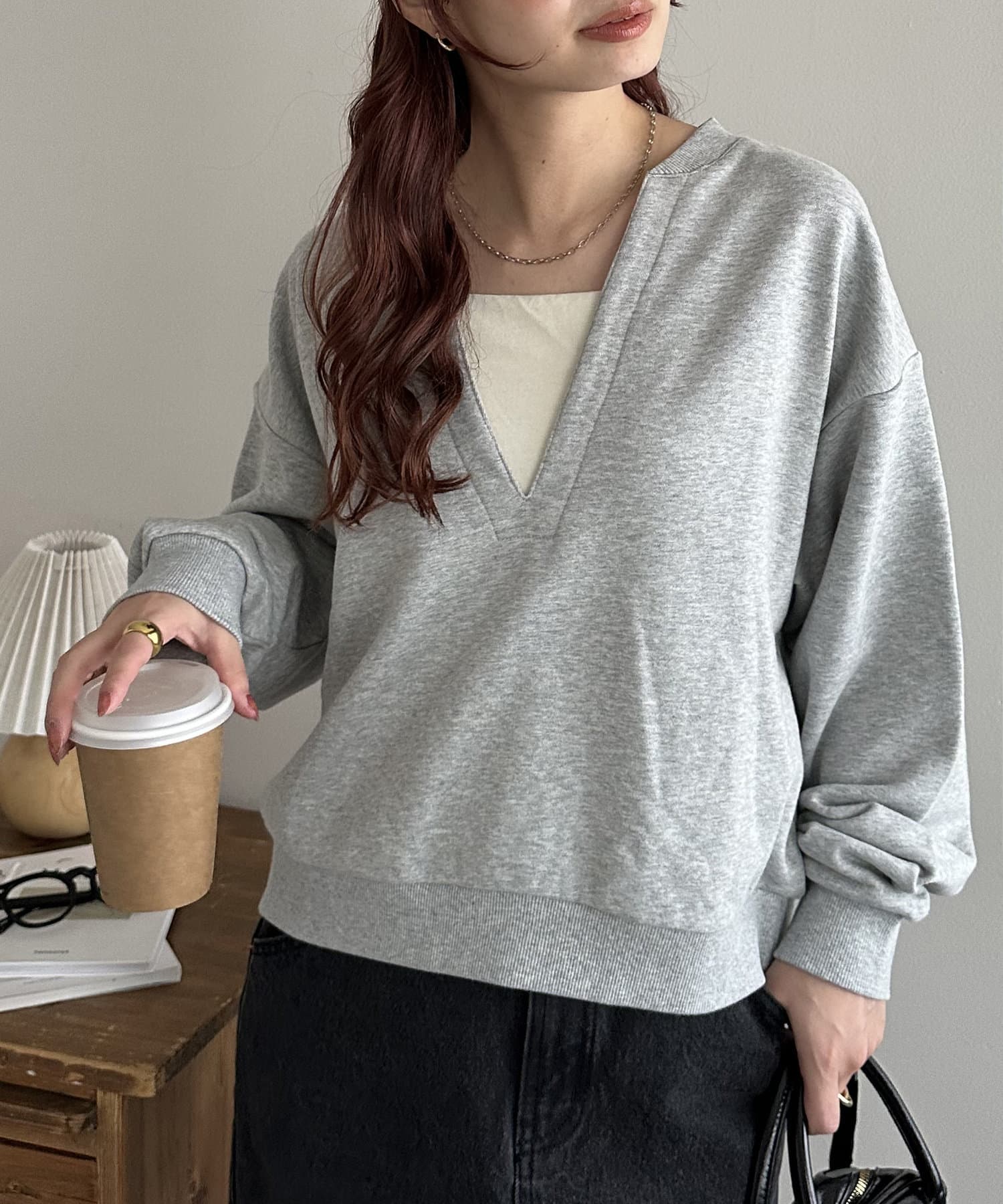 ・深めに開いたネックで、スッキリとした印象を与えるスウェットプルオーバー
