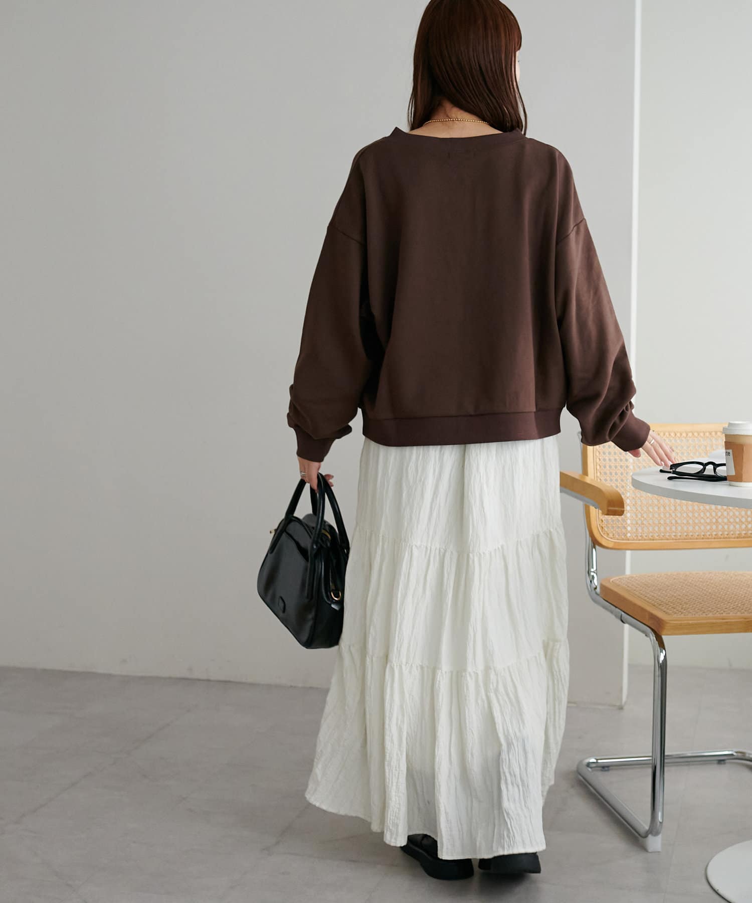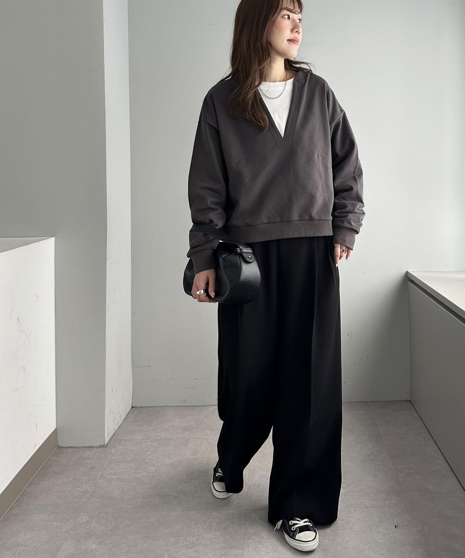・ゆったりとしたシルエットで抜け感を演出し、カジュアルになりがちなスウェットも女性らしく着こなせる