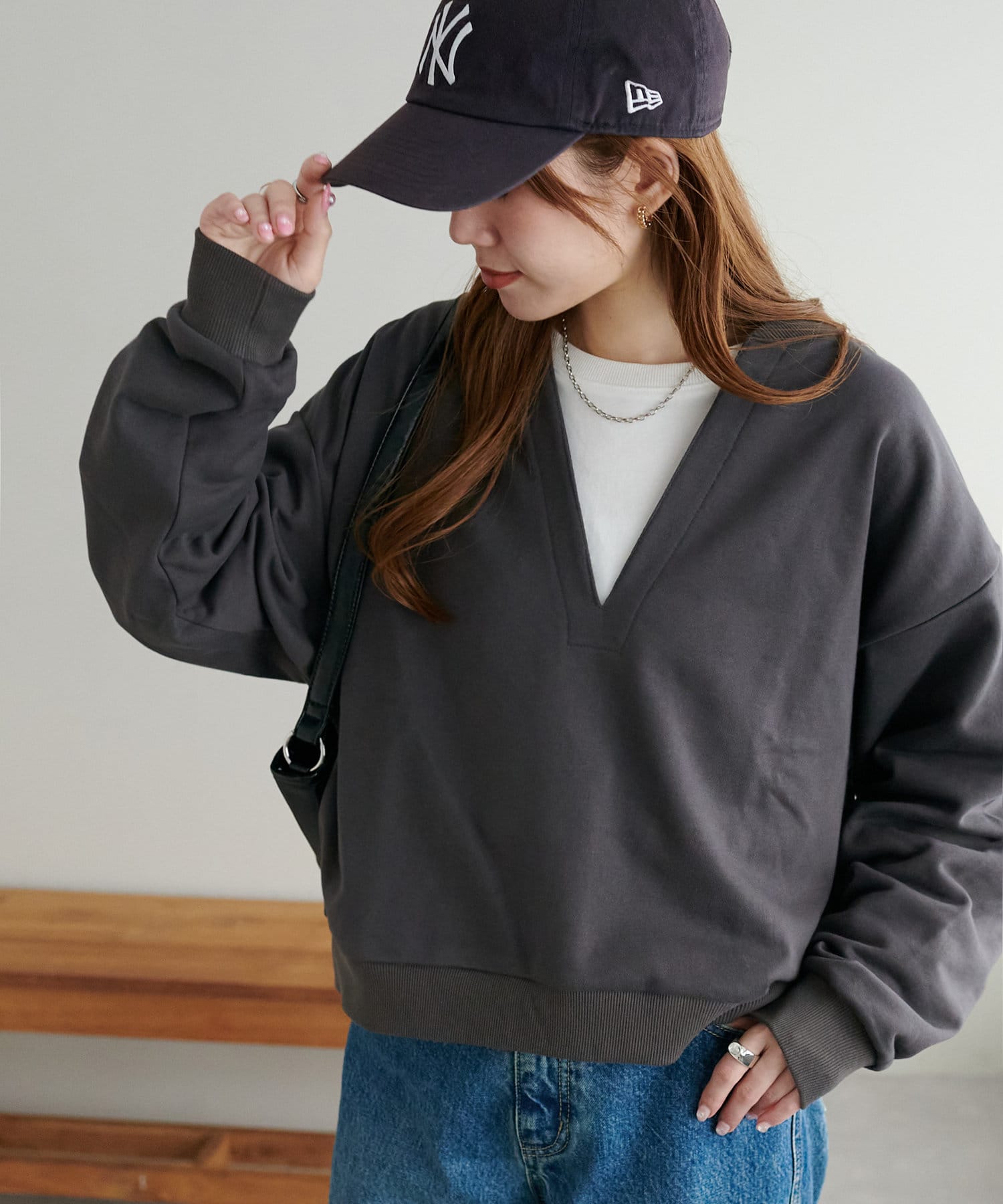 【新色追加!/WEB限定】深Vショート丈スウェット