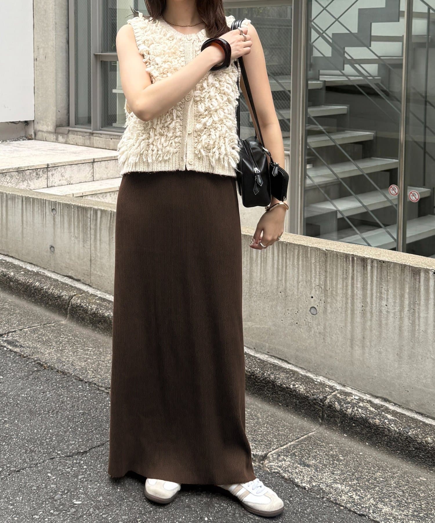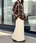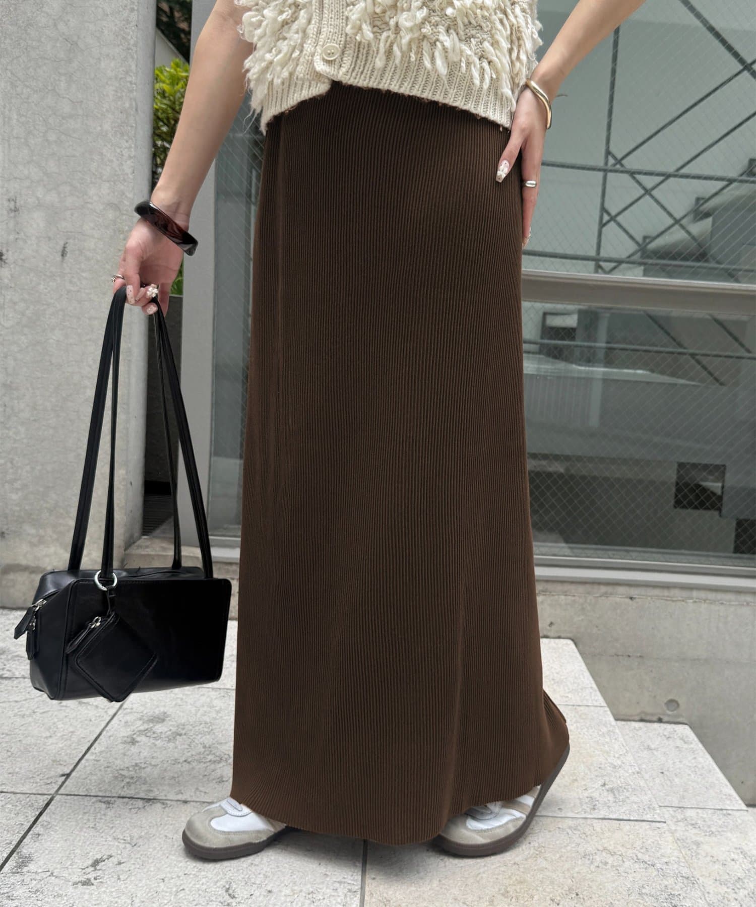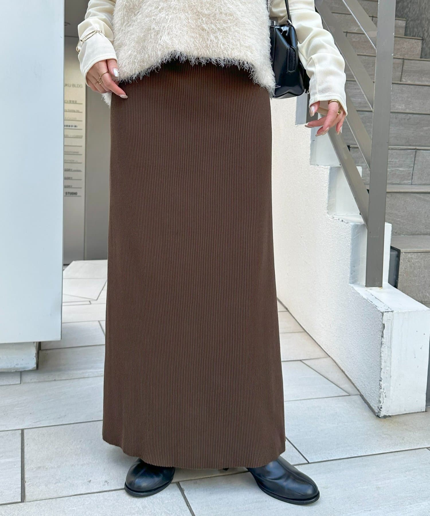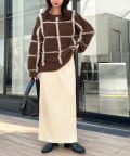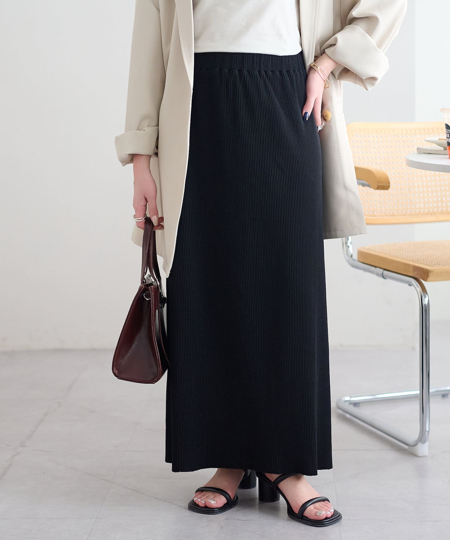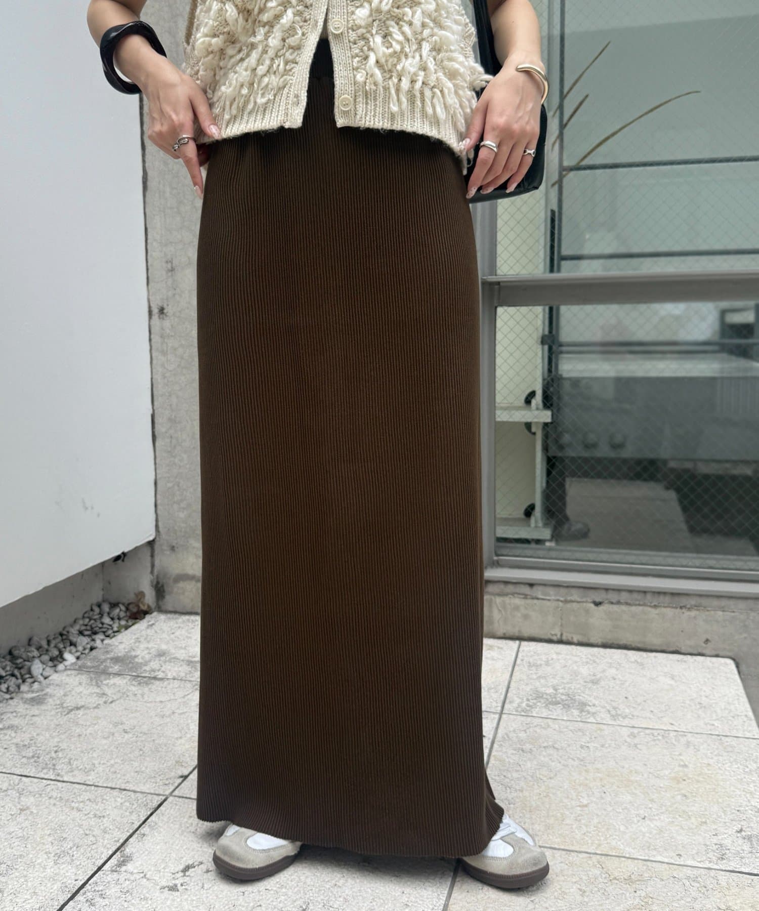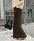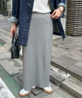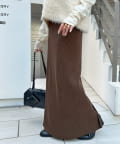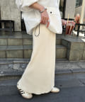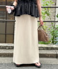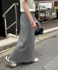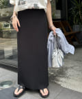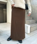 柔らかなリブニット生地にウエストゴムのデザインでリラクシーな着心地が叶うリブナロースカート。
