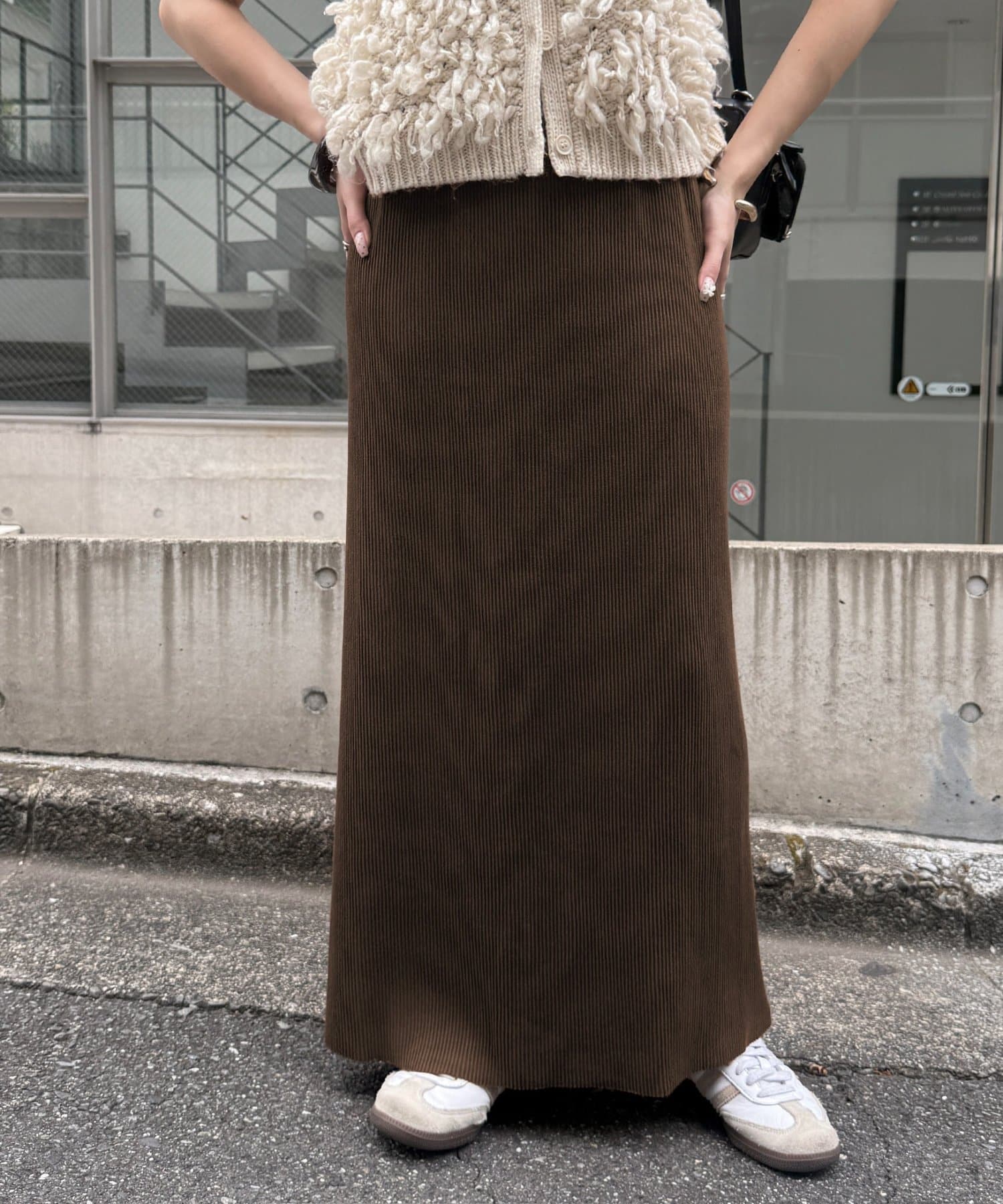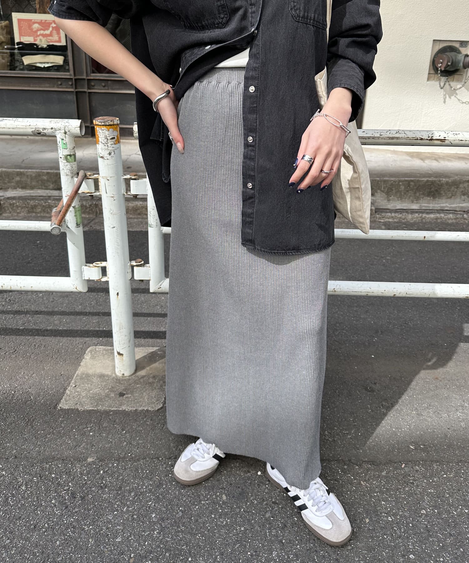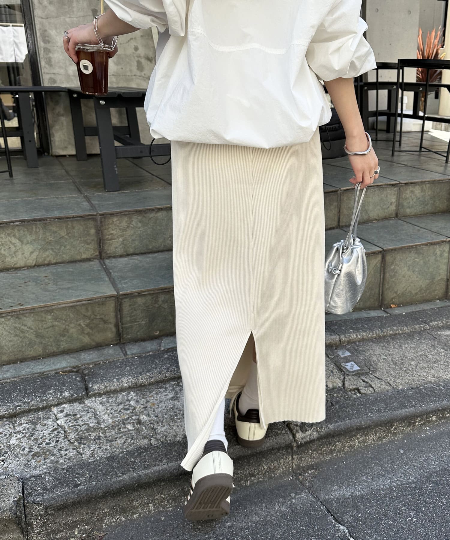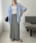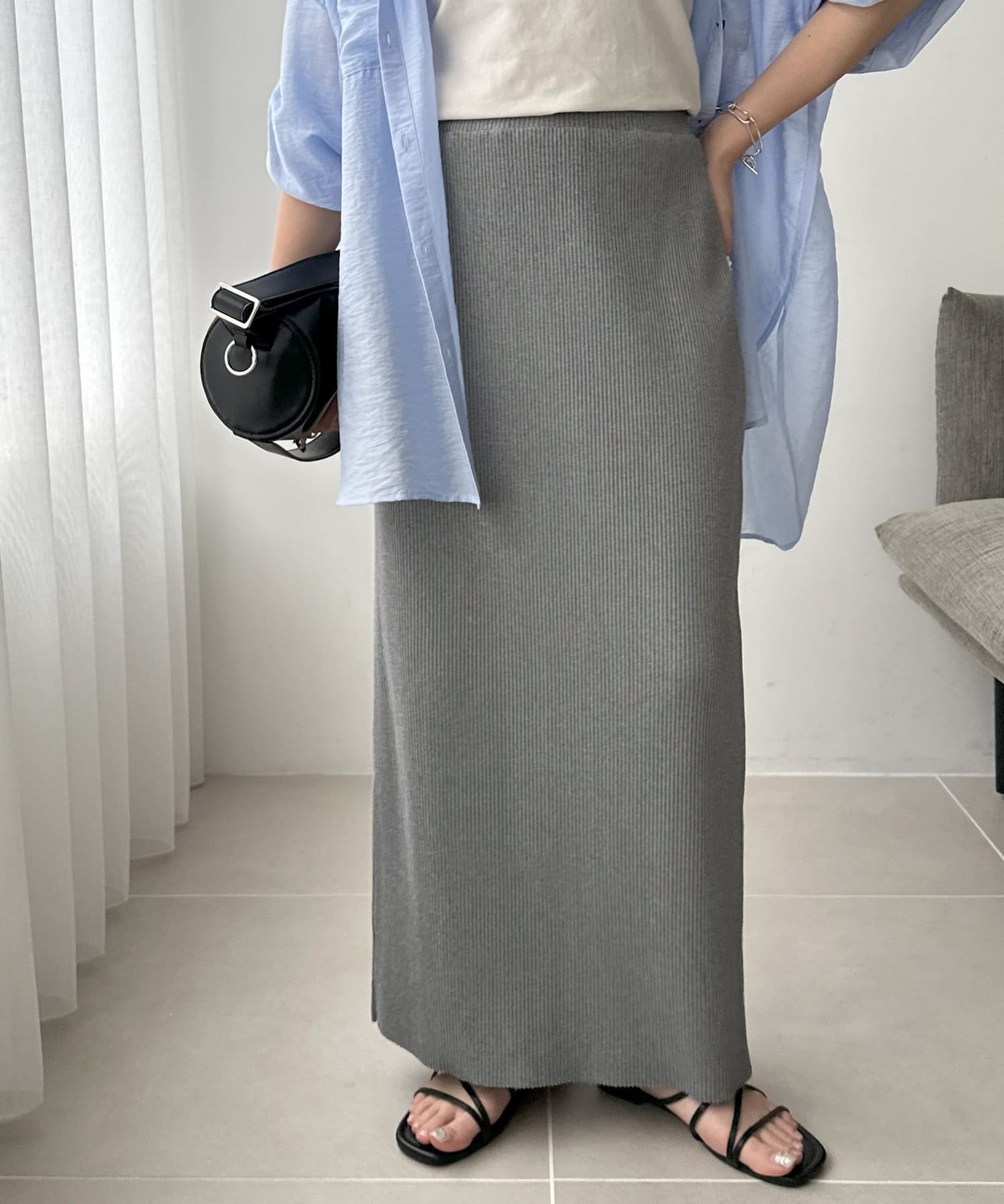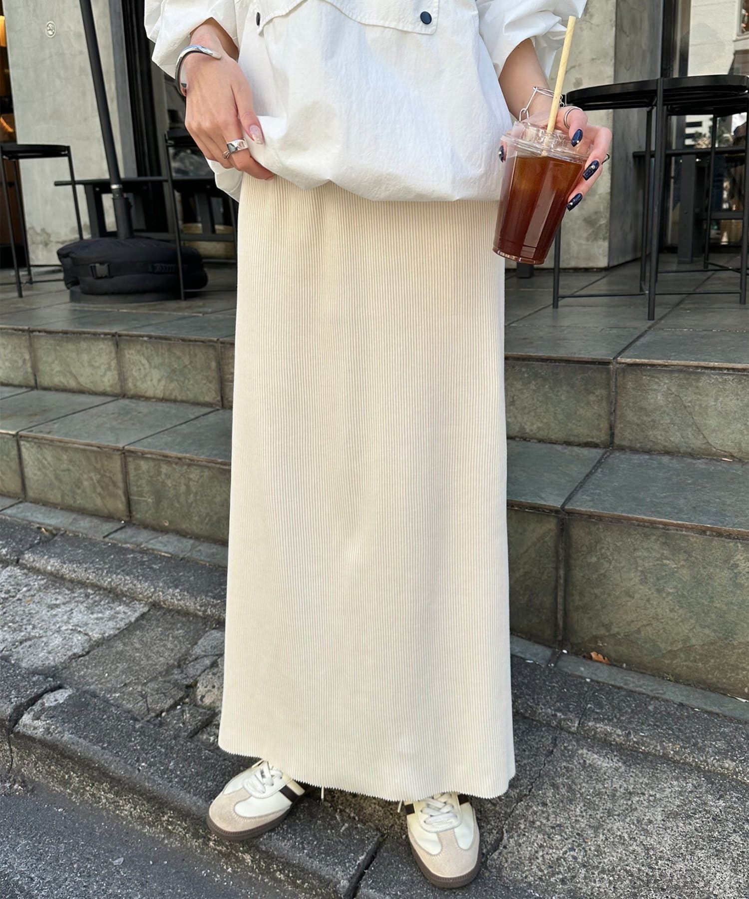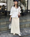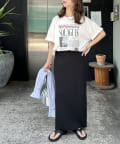Iラインが綺麗に見えるナロースカートはゆったりとしたサイズ感のトップスと合わせることでメリハリのあるコーデが完成します♪
