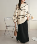 【お気に入りNo.1ニット】メランジヤーン線柄プルオーバー