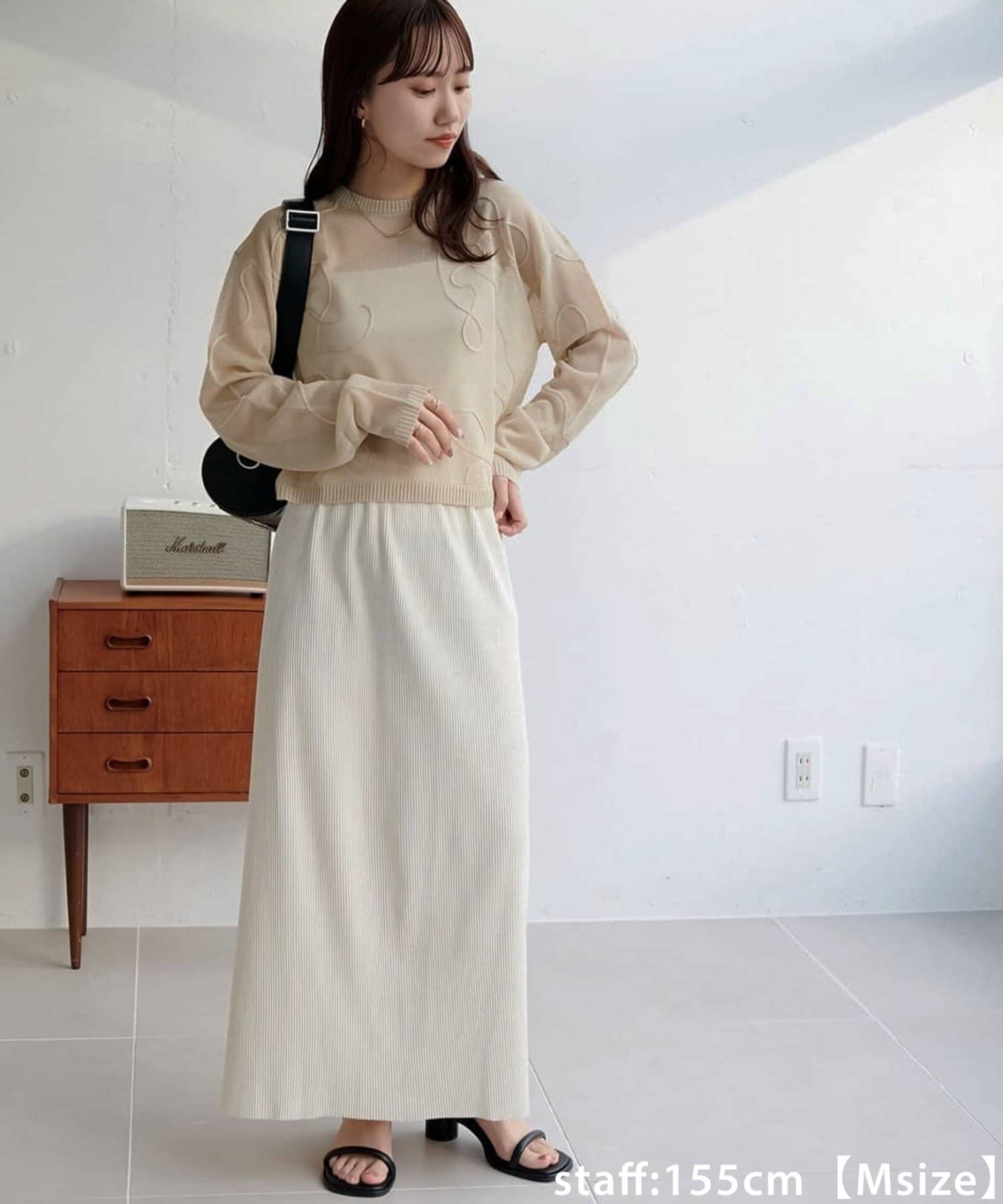 155cmスタッフ(Mサイズ着用):リブデザインで細見えします!!