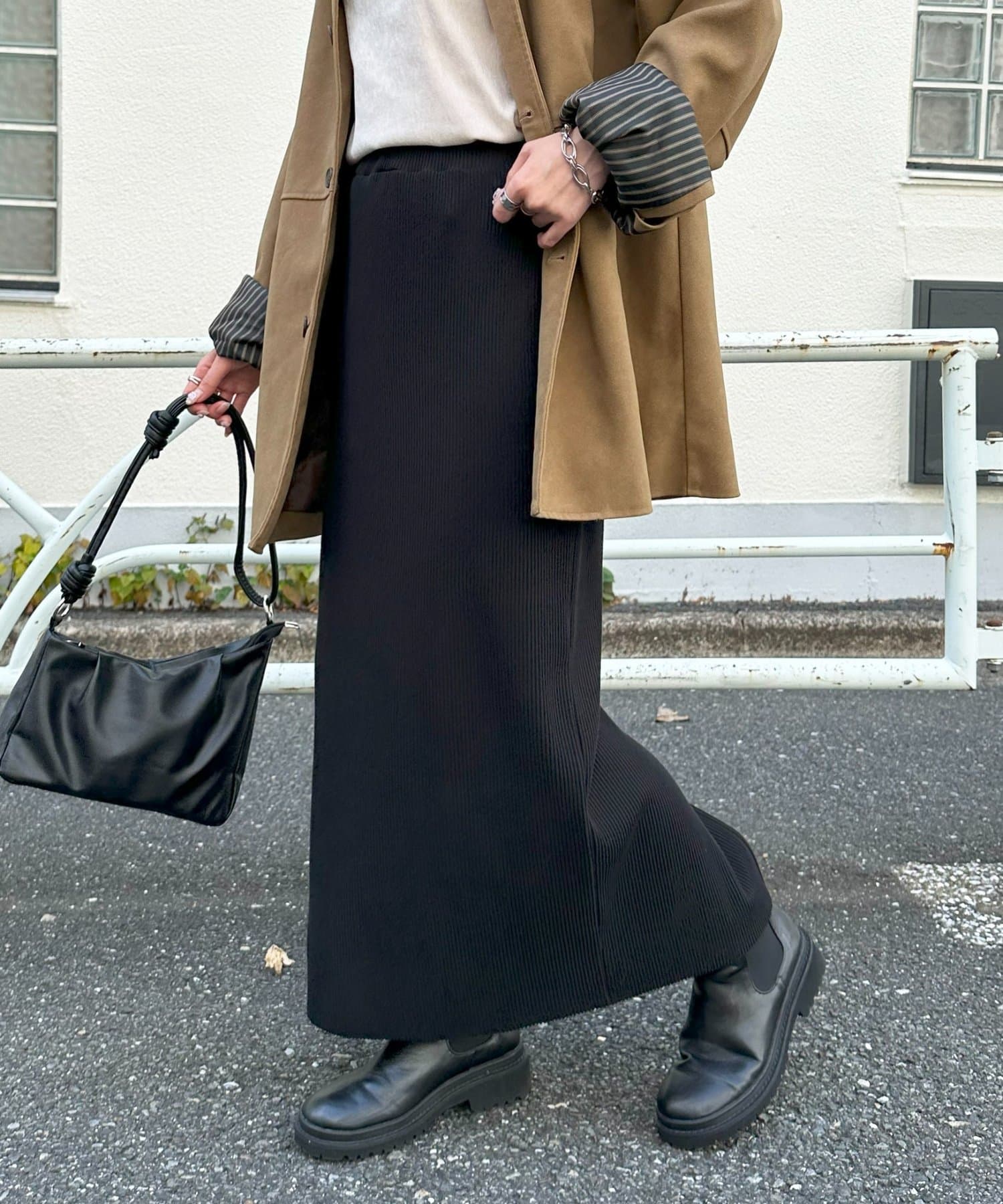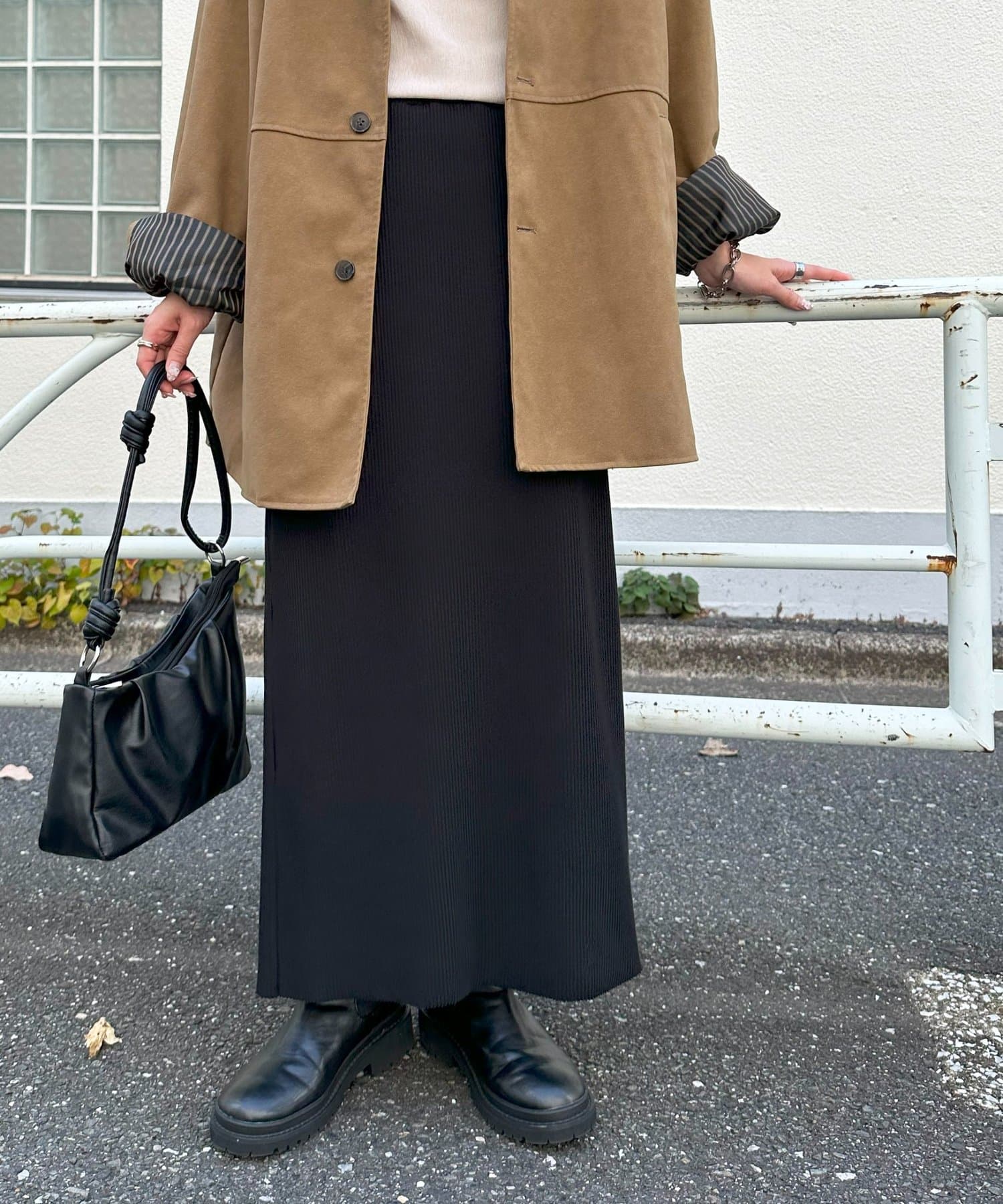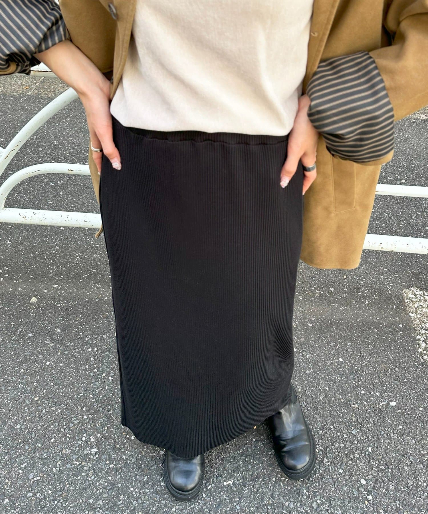 購入場所:店舗大転子が目立つ体型ですが、伸縮性の良いリブや形のおかげで裾が窄まらないため、細見えしました。ロングスカートを購入するのは初めてでしたが、大変気に入りました!
