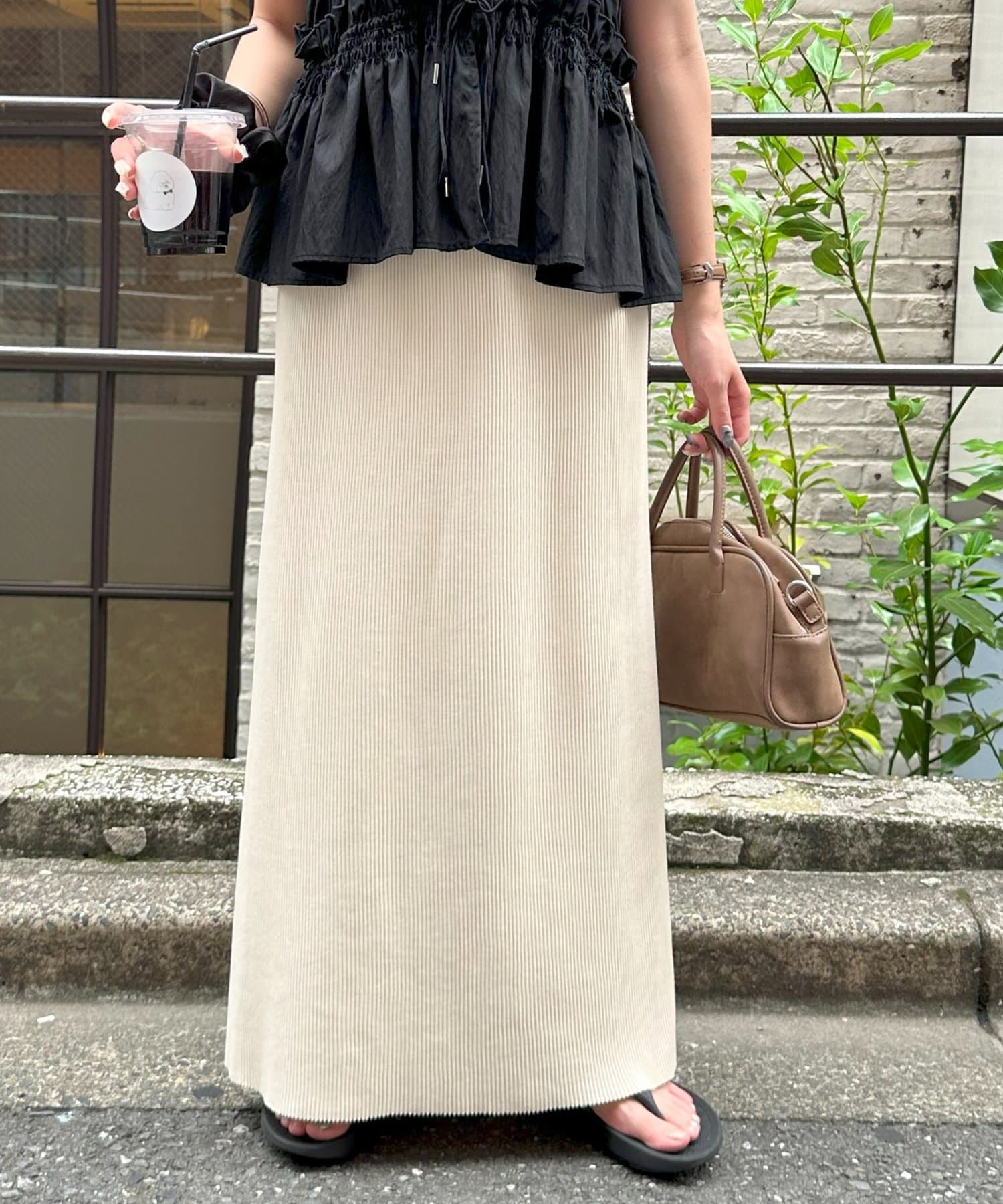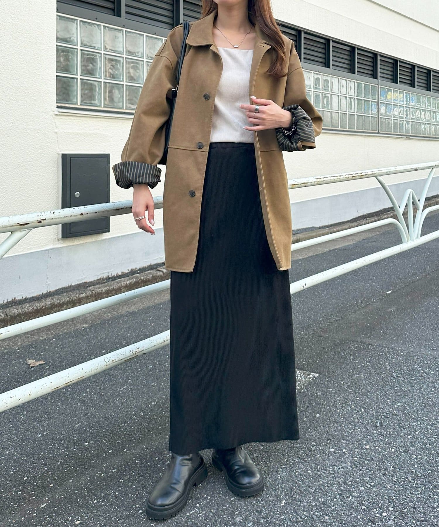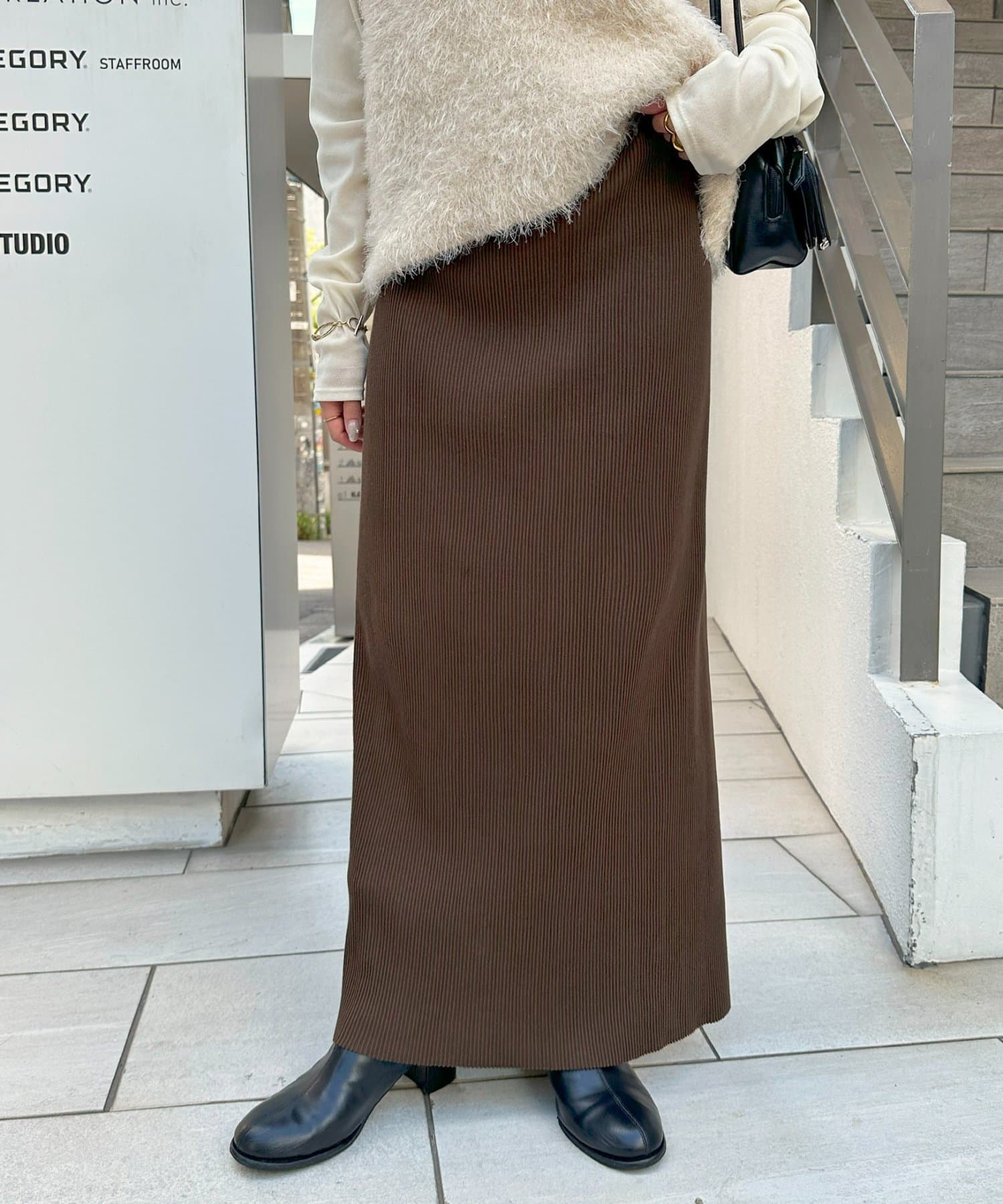 購入場所:店舗大転子が目立つ体型ですが、伸縮性の良いリブや形のおかげで裾が窄まらないため、細見えしました。ロングスカートを購入するのは初めてでしたが、大変気に入りました!