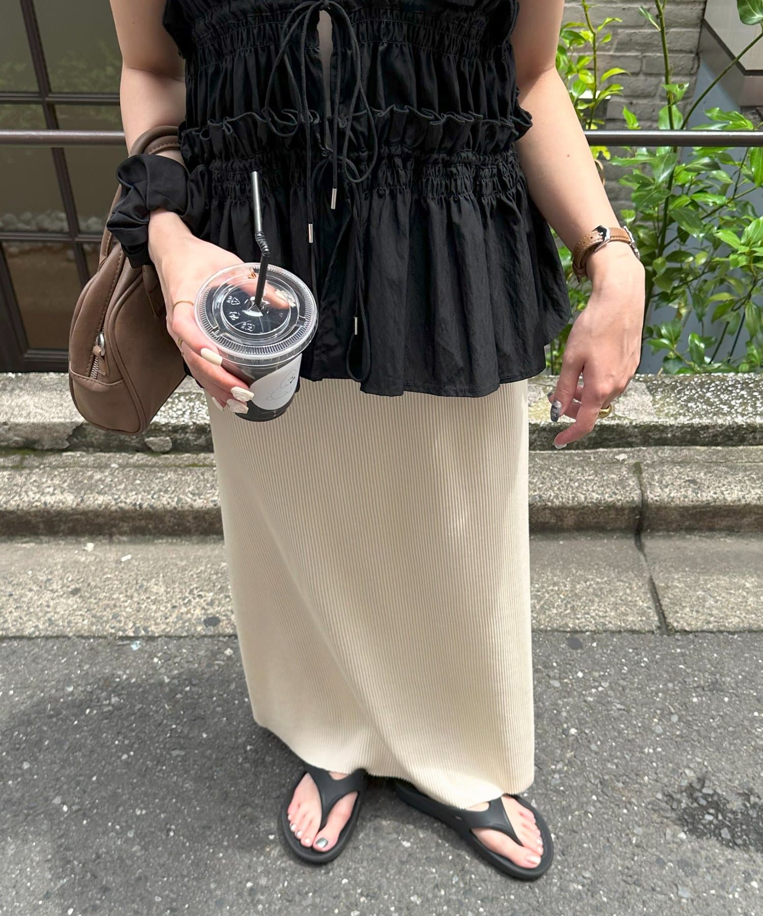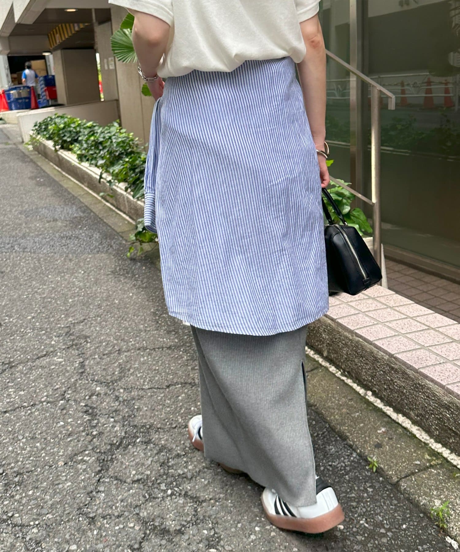 Mにしてもよかったかな?と思いましたが、ゆったりめのトップスに合わせるならこれくらいスッキリしたサイズ感でよかったかもしれません。