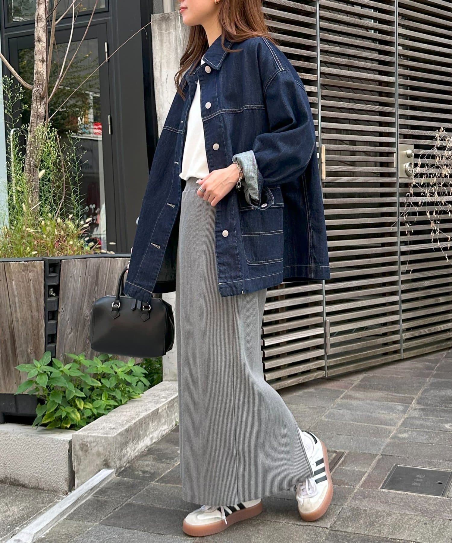 ややヒップラインを拾いはするので、トップスはゆったりめのスウェットや着丈長めのデニムシャツなどで合わせようと思います。
