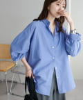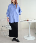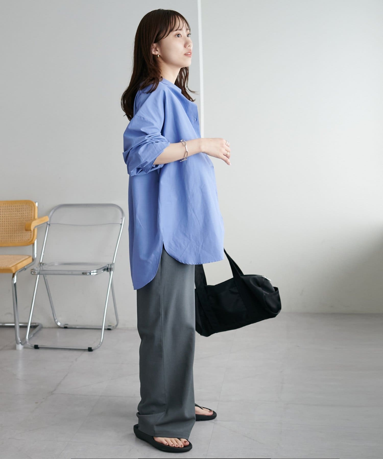153cmスタッフ:腰回りが隠れる着丈です。低身長の方は袖口をロールアップしたり、首元のボタンを開けたりすると抜け感が出てこなれ感を楽しめます♪
