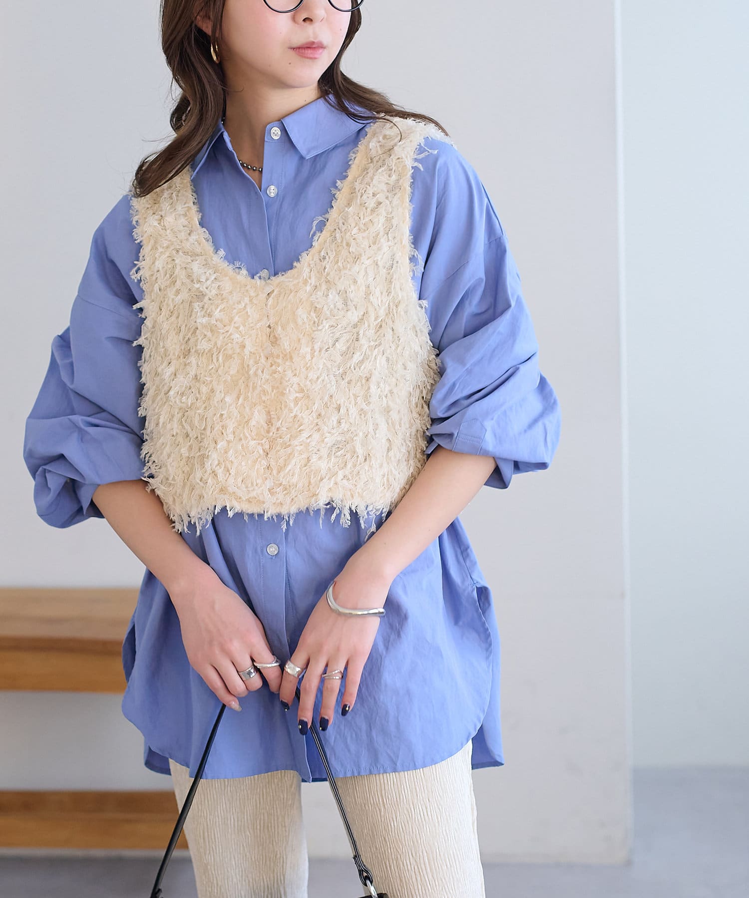 一枚で着てもコーデが生えますが、デザインはシンプルなのでベストやビスチェ、スウェットとのレイヤードも楽しみたいです!