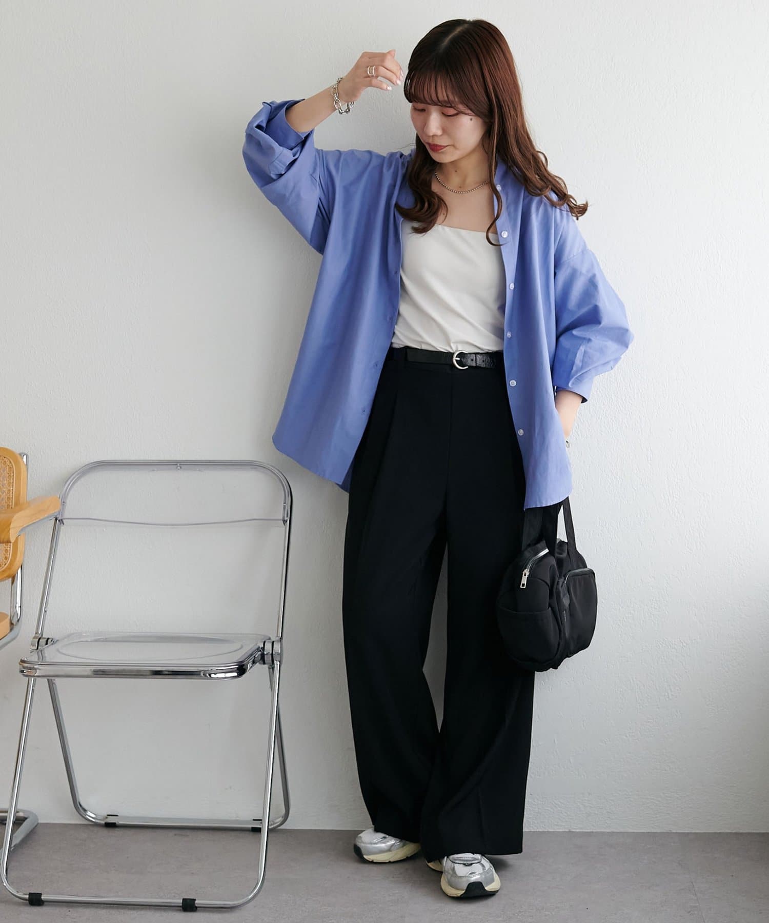 158cmスタッフ:ブルーシャツ、ストライプシャツは毎年人気なので一枚あるとトレンド問わず楽しめます◎