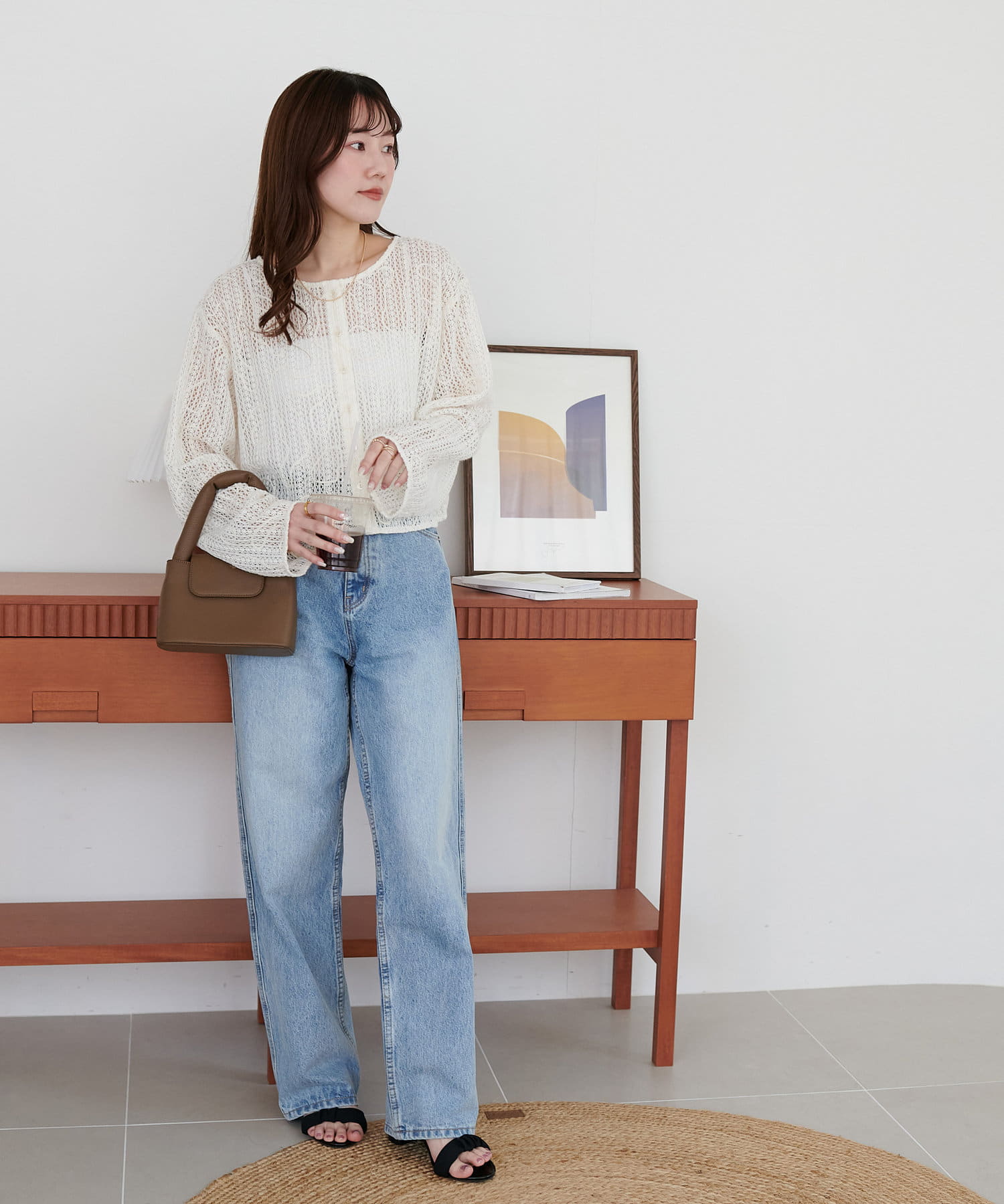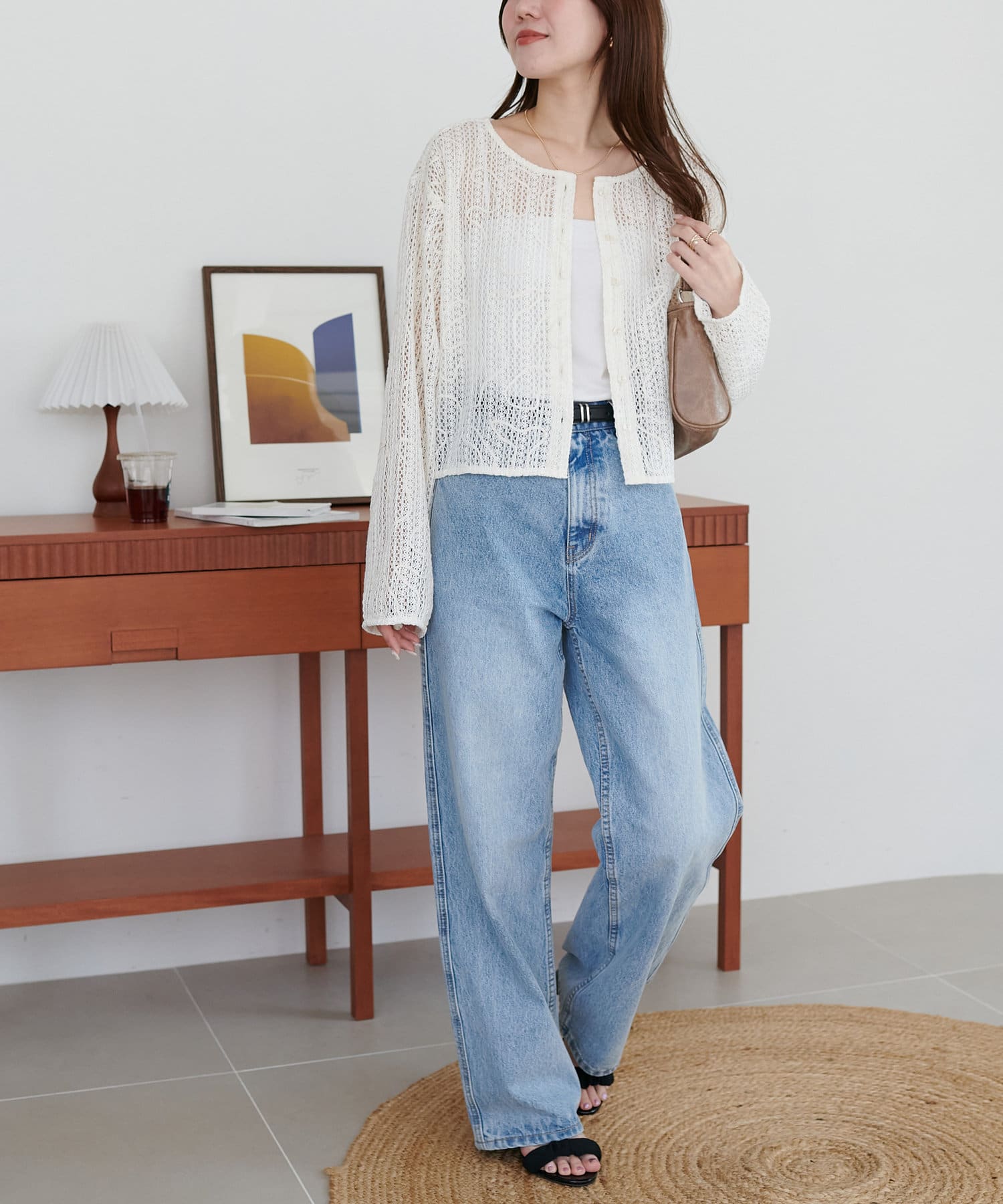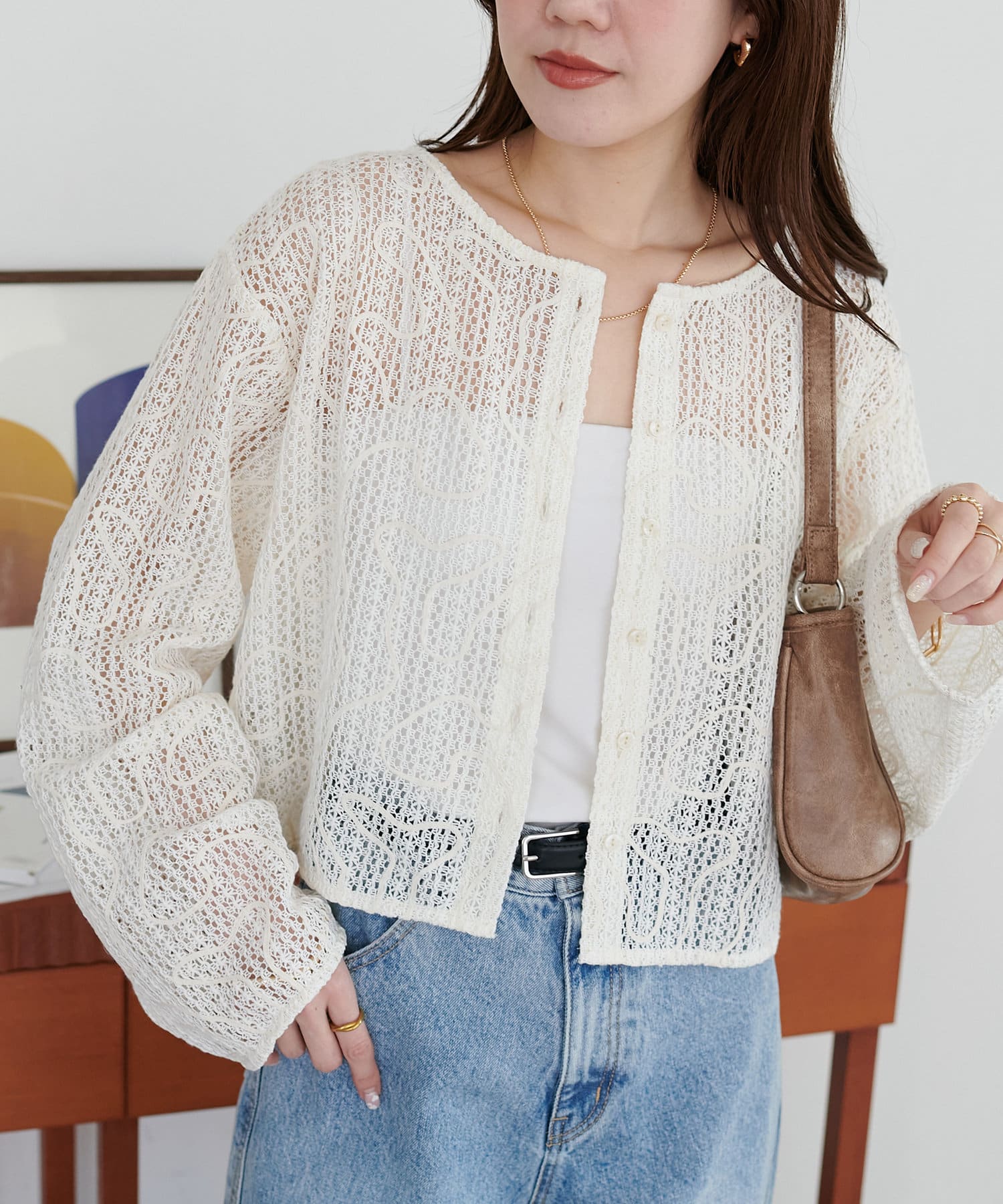カジュアルなデニムと合わせても、女性らしい雰囲気に。