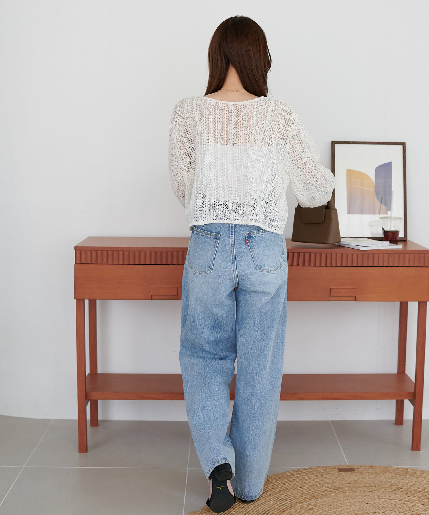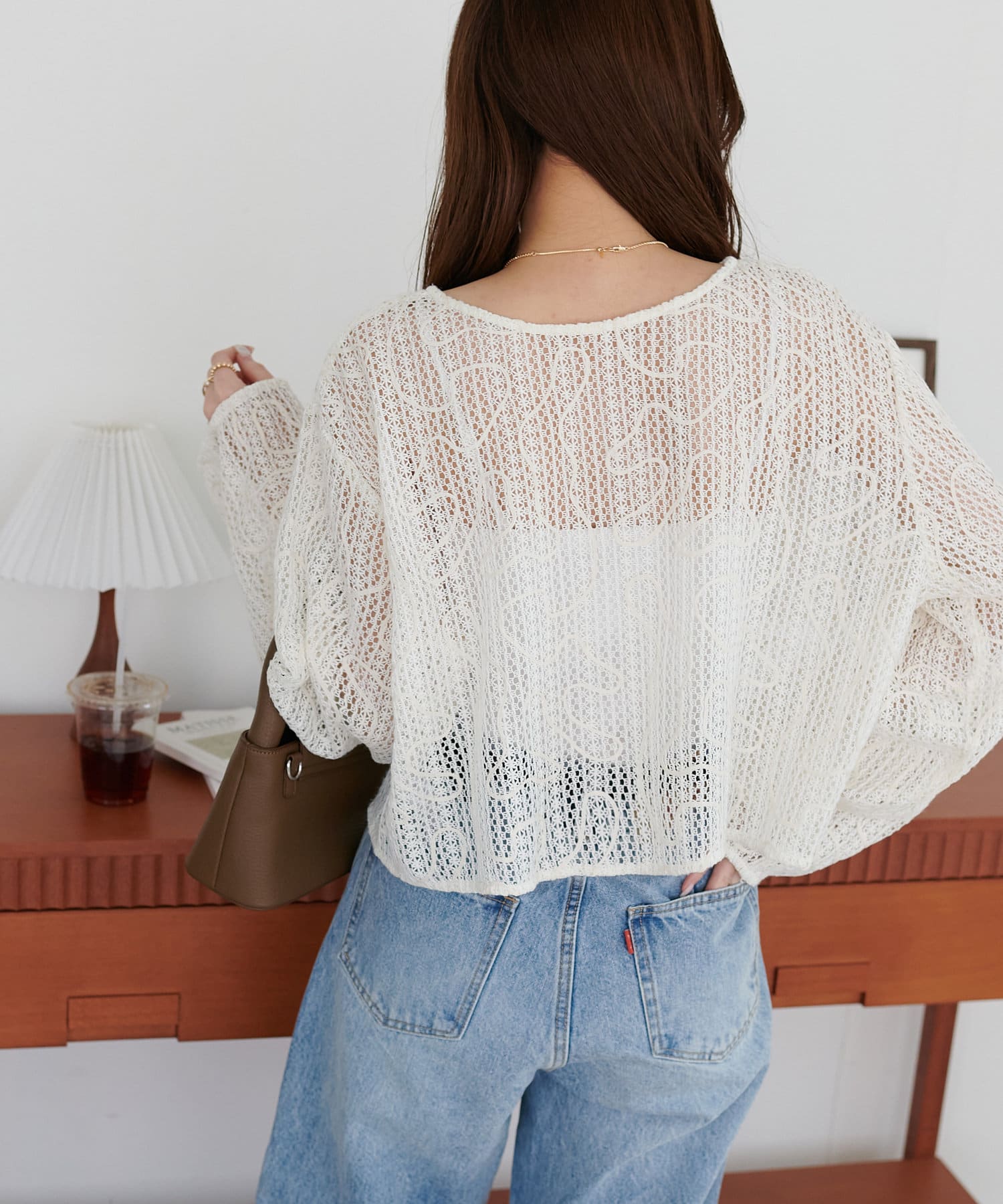 控えめな透け感が肌の露出を抑えながらも、女性らしい印象に。