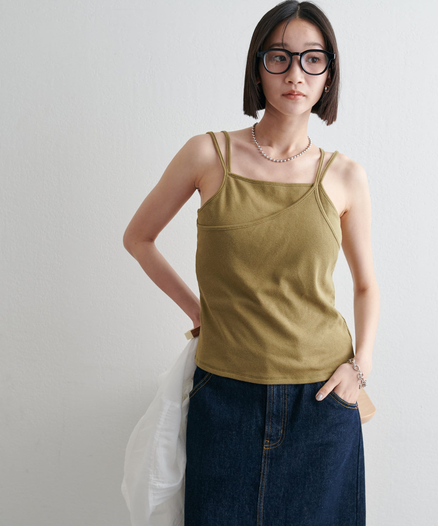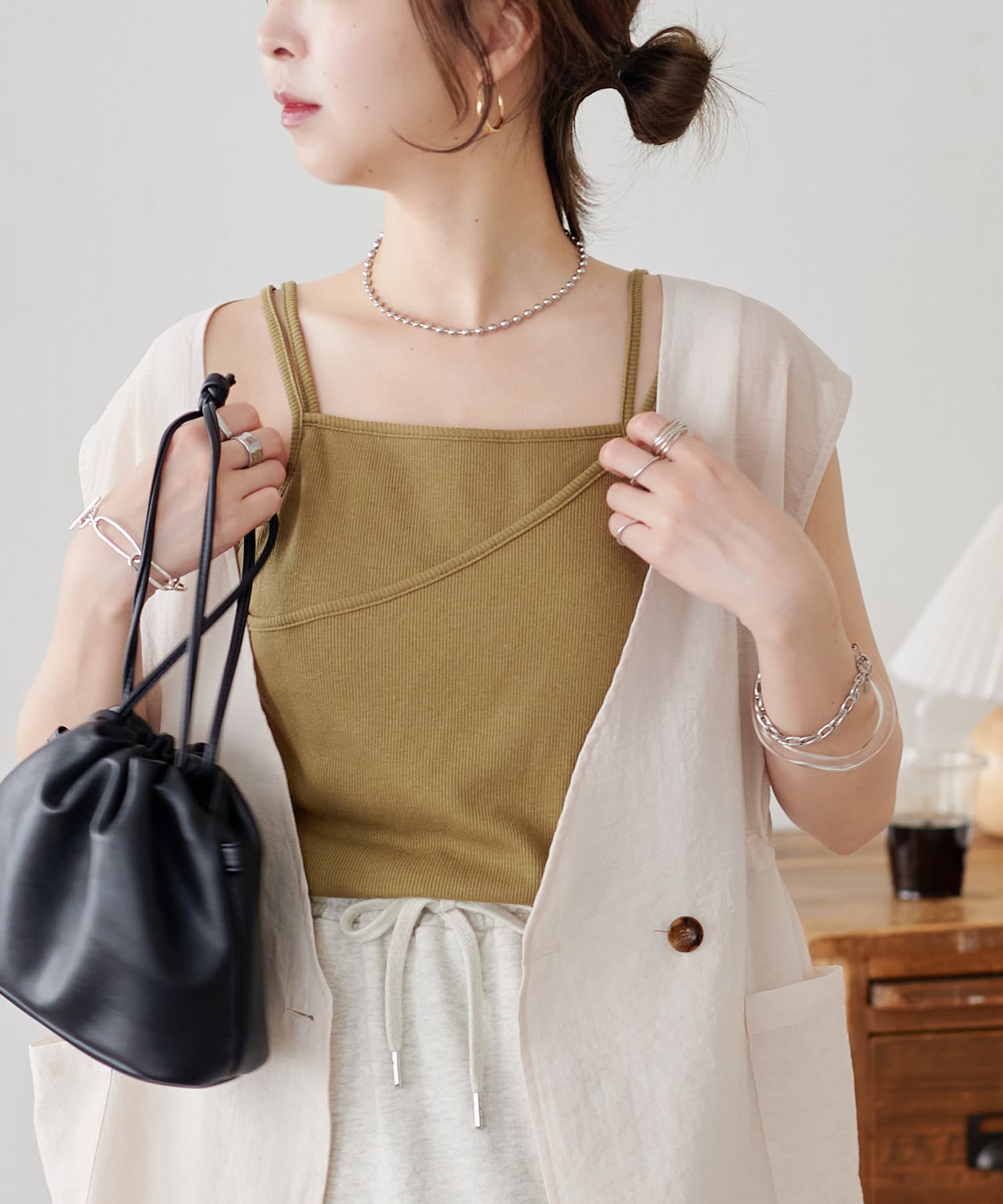 デザイン性のあるキャミソールなので、シャツやジャケットのインナーとしてはもちろん、夏はトップスとして一枚で着ても◎