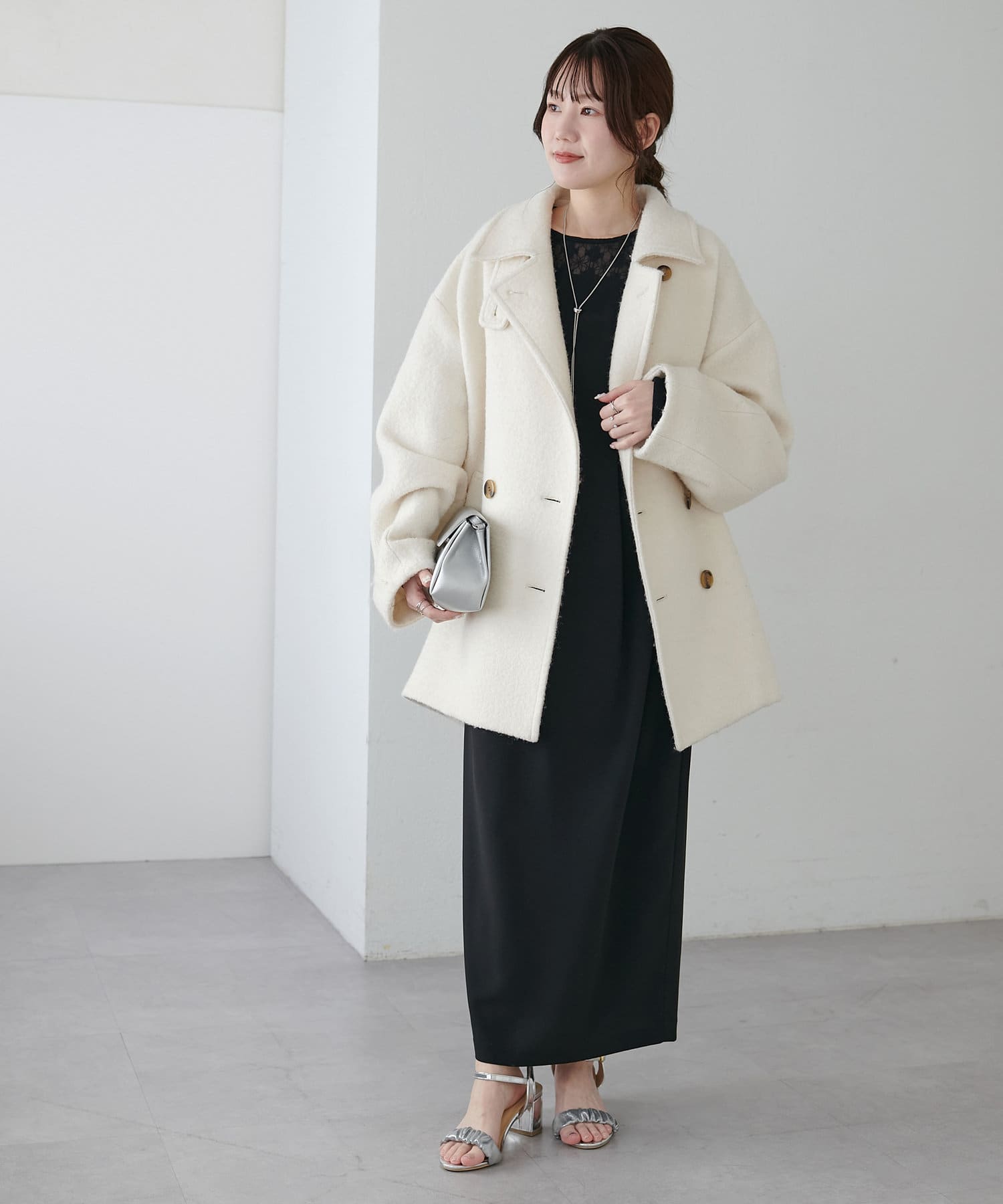 やや丸みのあるコクーンシルエットが女性らしさを演出