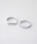 チェーンモチーフとスクエアフォルムのリングがセットになった2本組のリングセット。