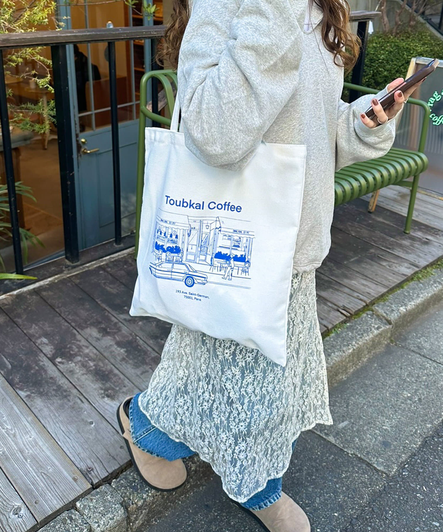 また、英語の文字にはインスタによく投稿している“バッグの中身”を参考に、このトートバッグに入れて持ち歩きそうなものを並べました♩