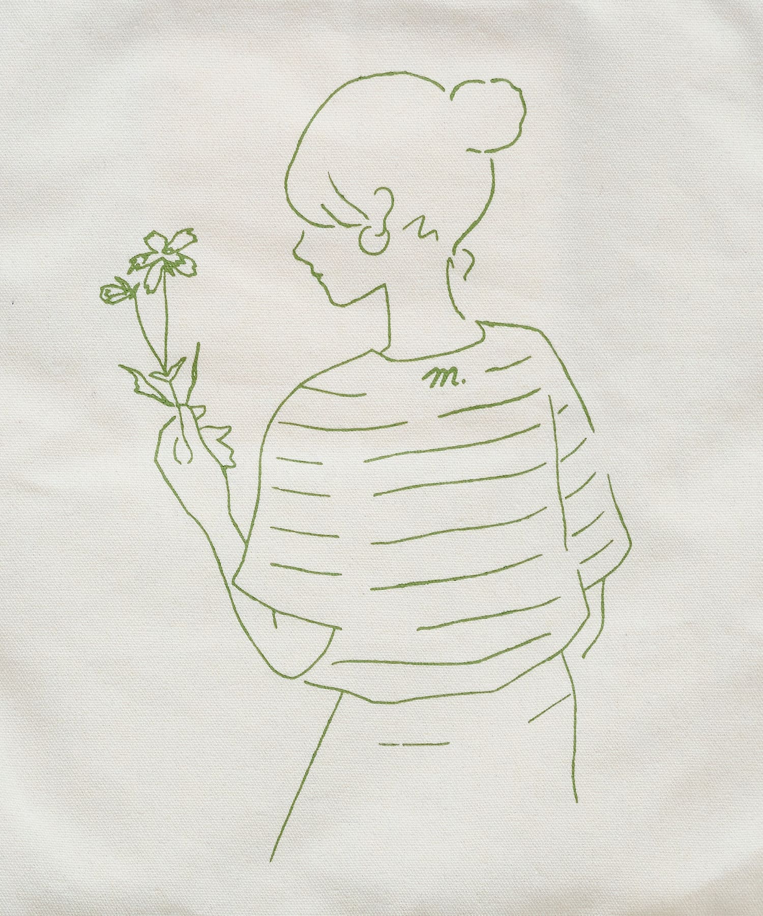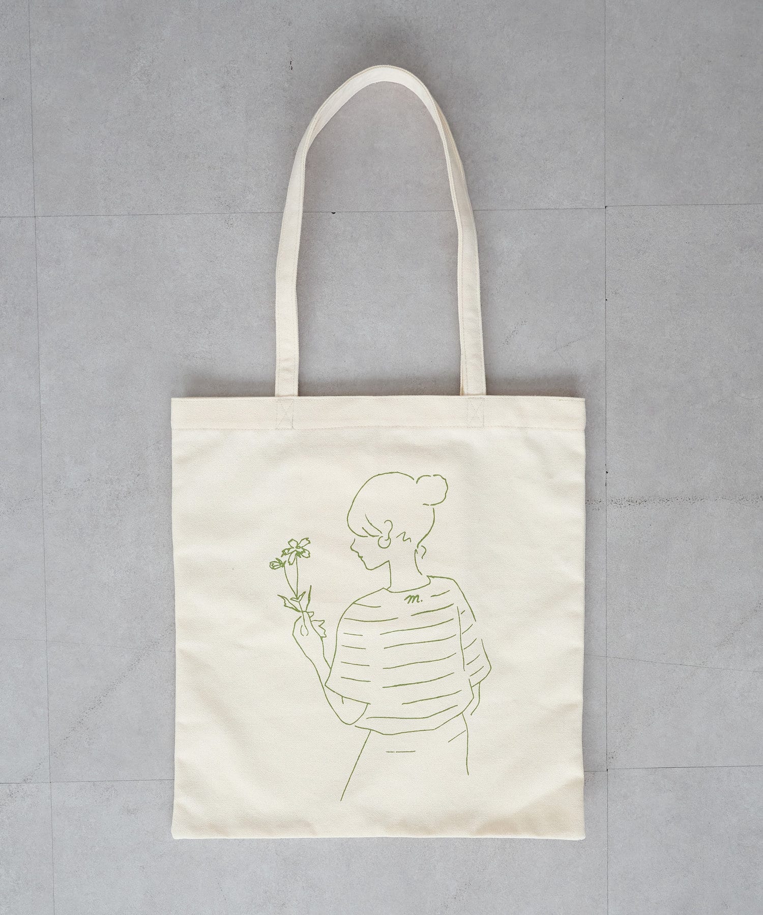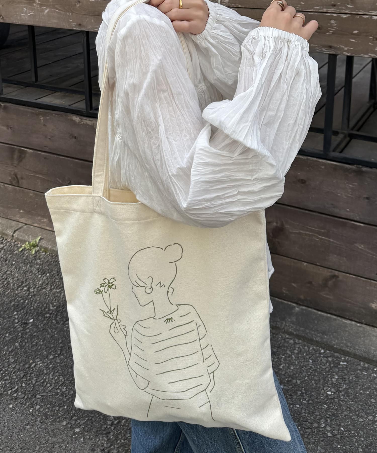 どんなお洋服にも合わせやすいベージュのトートに、ニュアンスっぽいタッチで柄を入れました!
