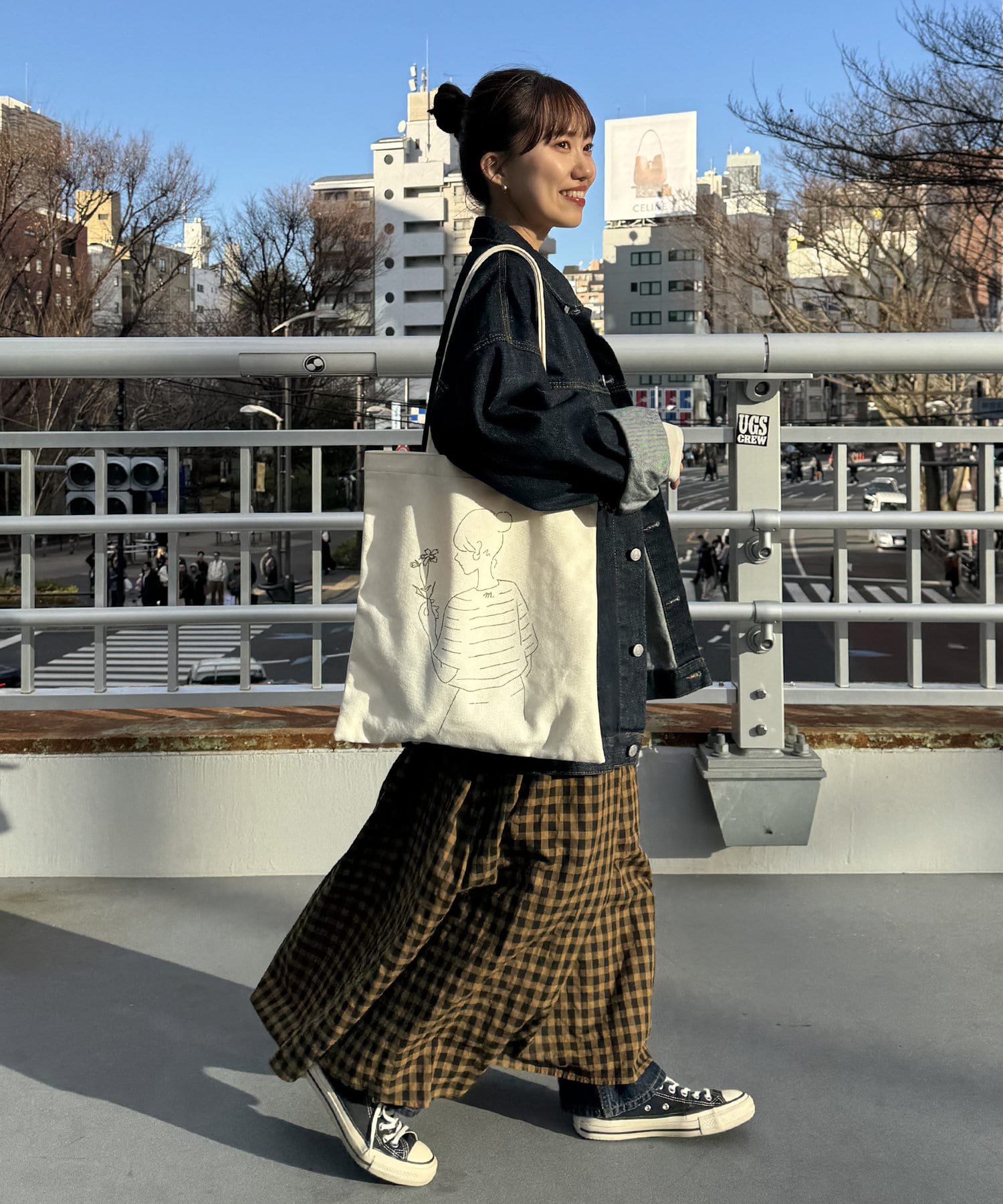 また、どんなコーデにも合うようにホワイトのトートにしました!