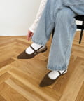 デイリー使いしやすいデザインのポインテッドストラップシューズ。ストラップ部分が一部ゴム仕様になっていて着脱がとても楽ちん♪また、2.4㎝~2.6㎝とローヒールなので長時間履いても疲れにくく、さり気ないスタイルアップ効果も叶います◎ポインテッドトゥで上品な大人らしさを演出してくれます。またソックス合わせも、素足で合わせるのもどちらでもバランスよく履けます。季節やコーデを選ばず履ける、1足あると便利なストラップシューズです。