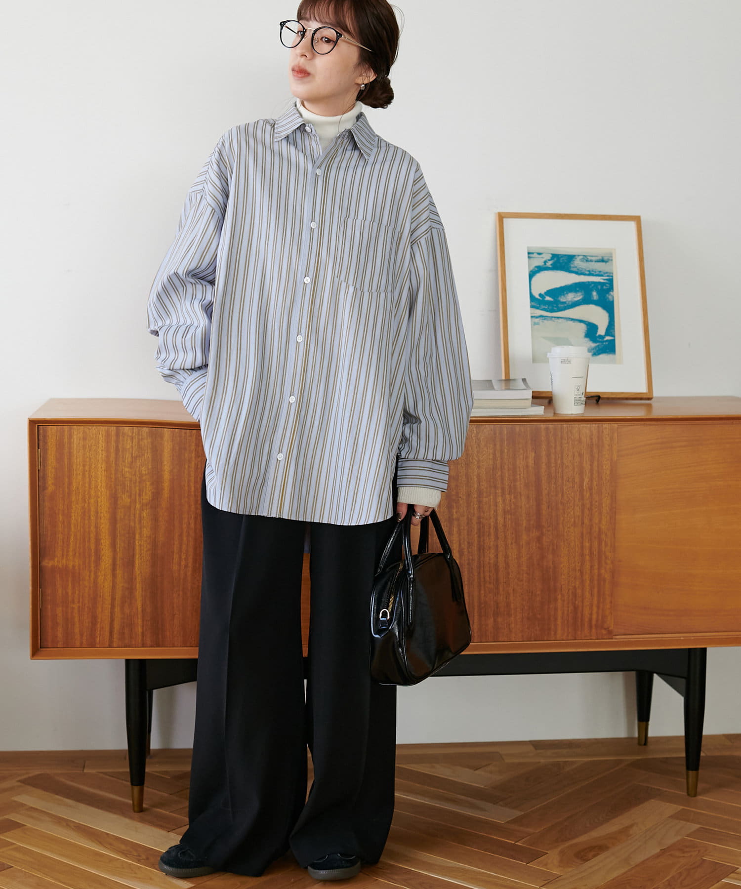 ストライプ柄が細身なので、オーバーシルエットですがどこかスッキリとした印象も与えてくれます。