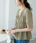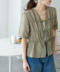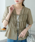 ・フロントのリボンがアクセントになり、1枚で華やぐシアーシャツ