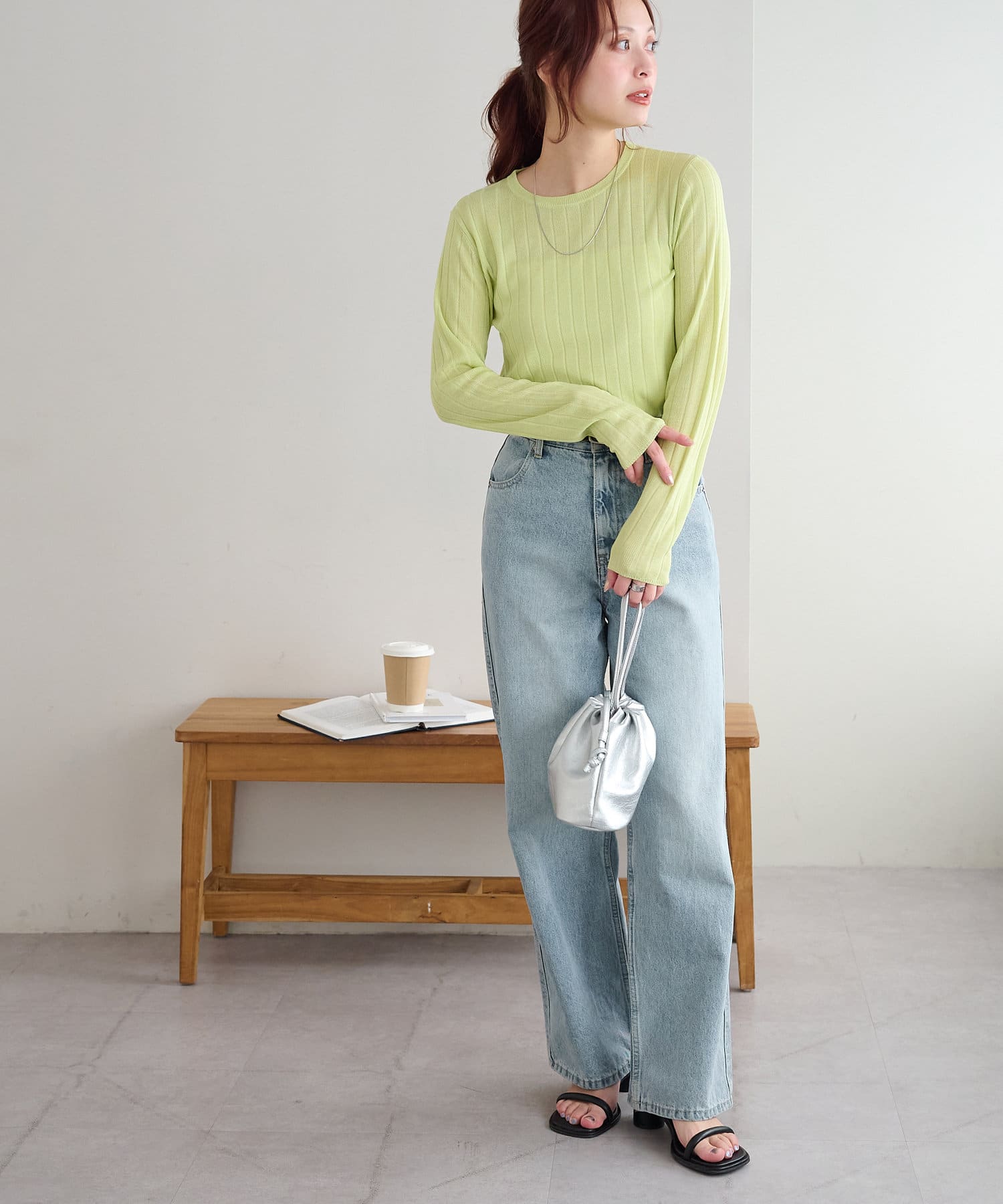 長袖ですが、シアー感があるので春らしいコーデに!
