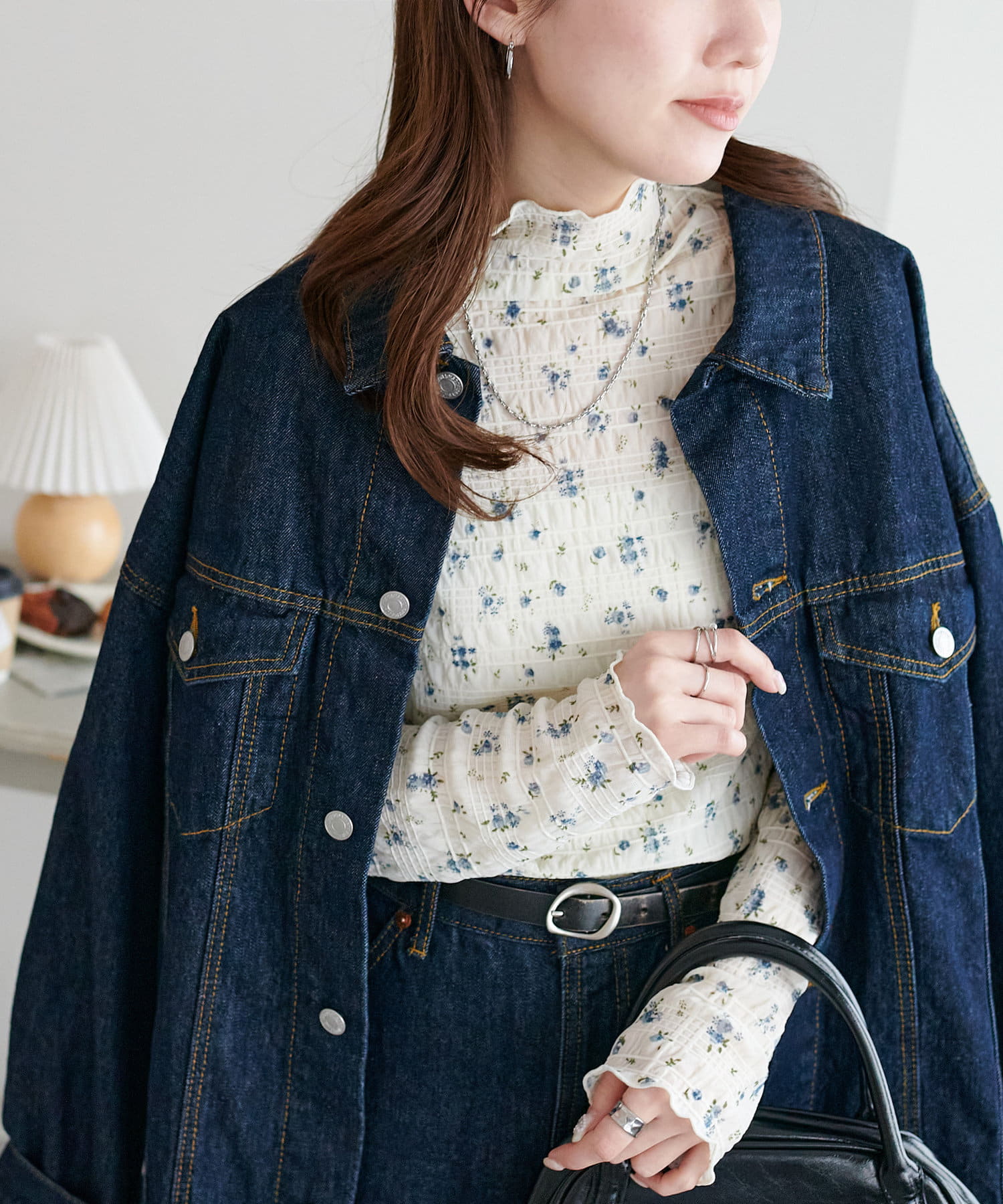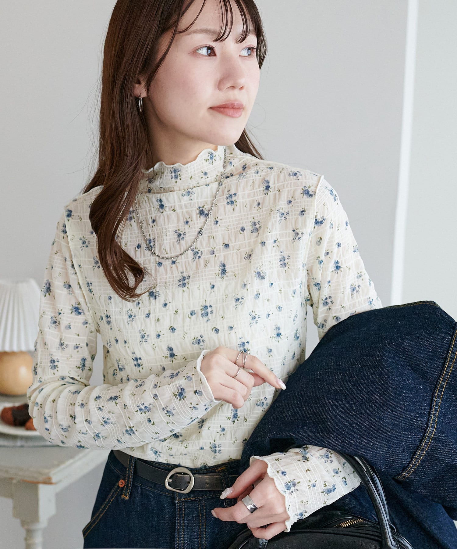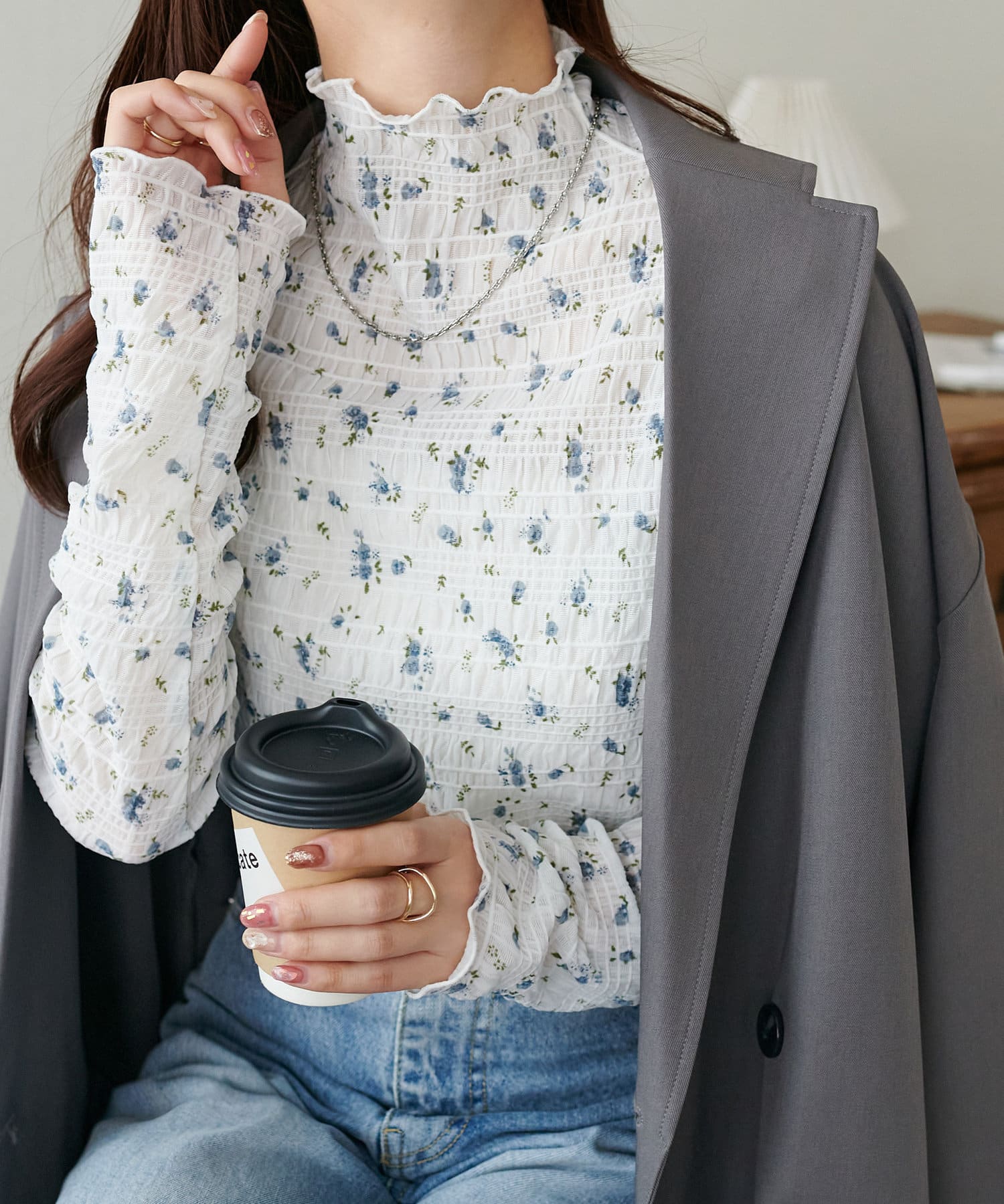 DISCOAT(ディスコート) 【WEB限定】小花柄ボトルネックプルオーバー