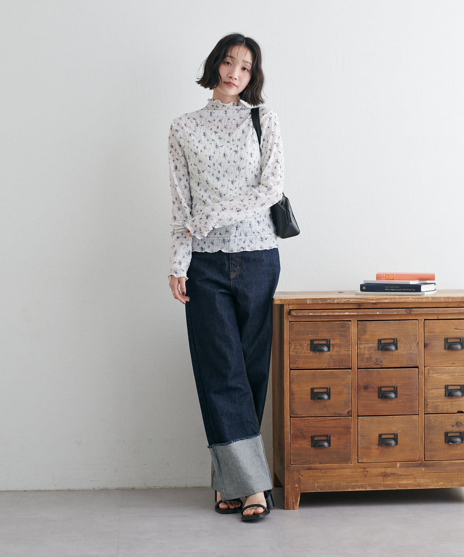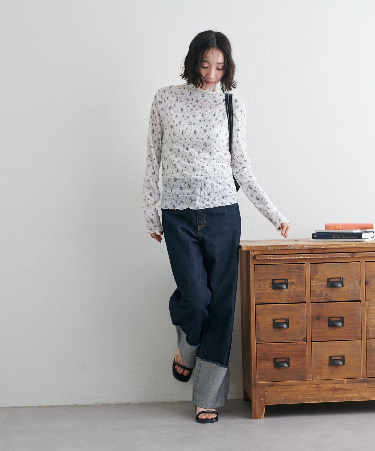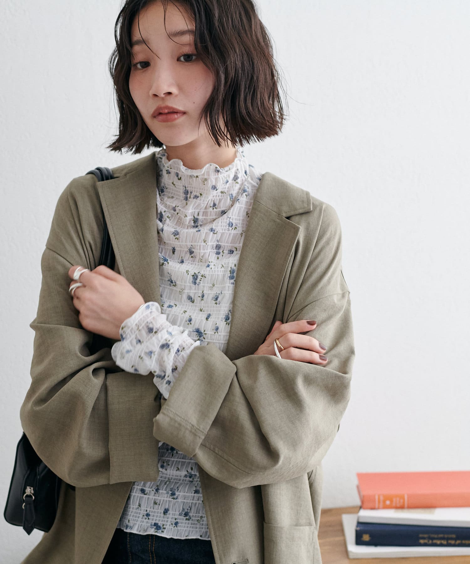DISCOAT(ディスコート) 【WEB限定】小花柄ボトルネックプルオーバー