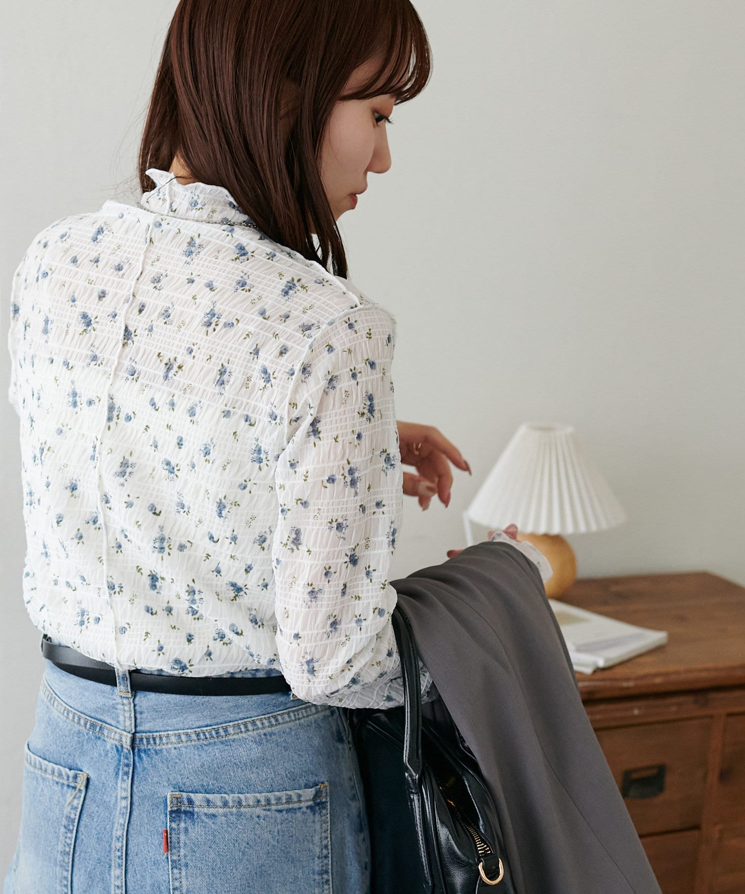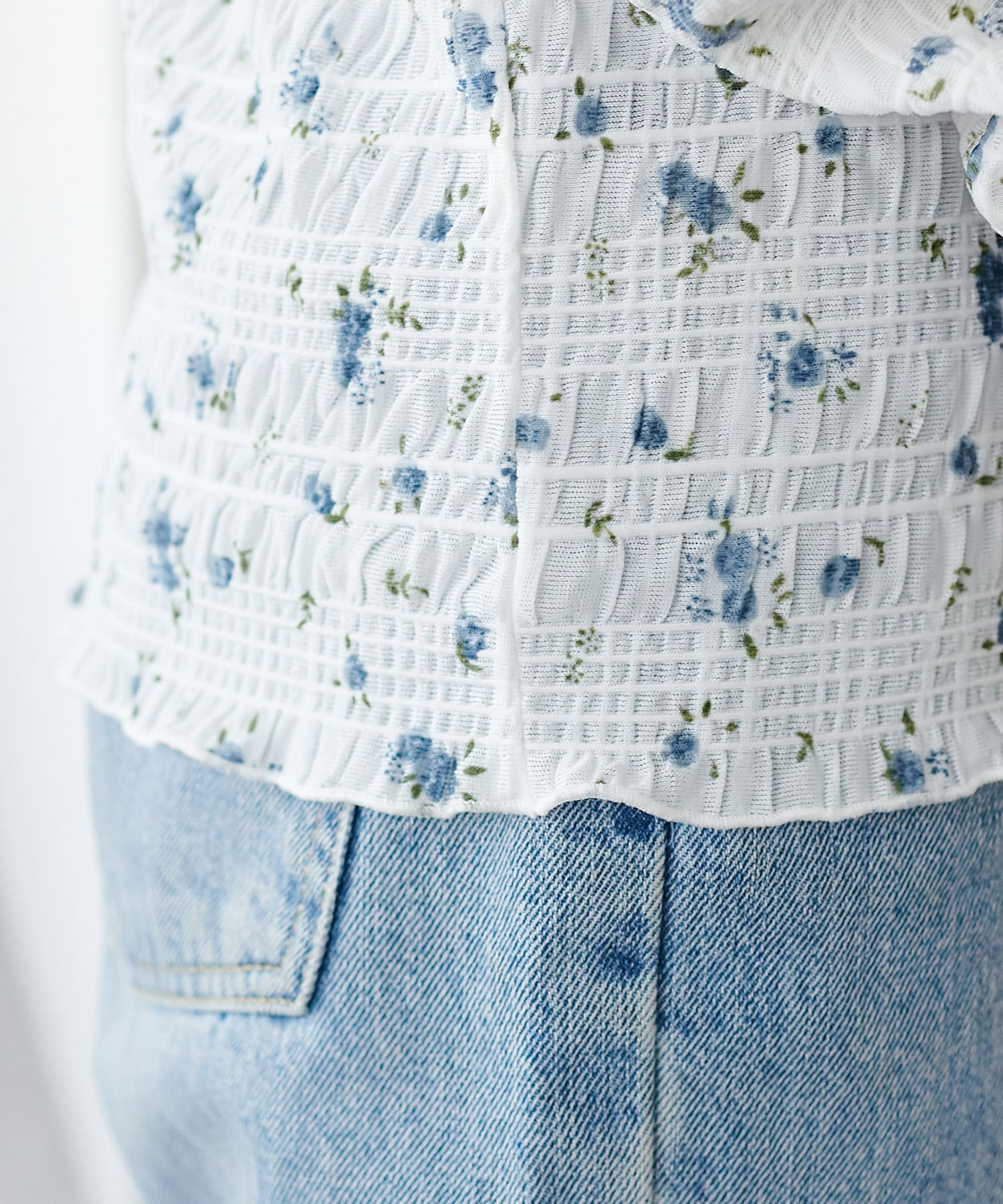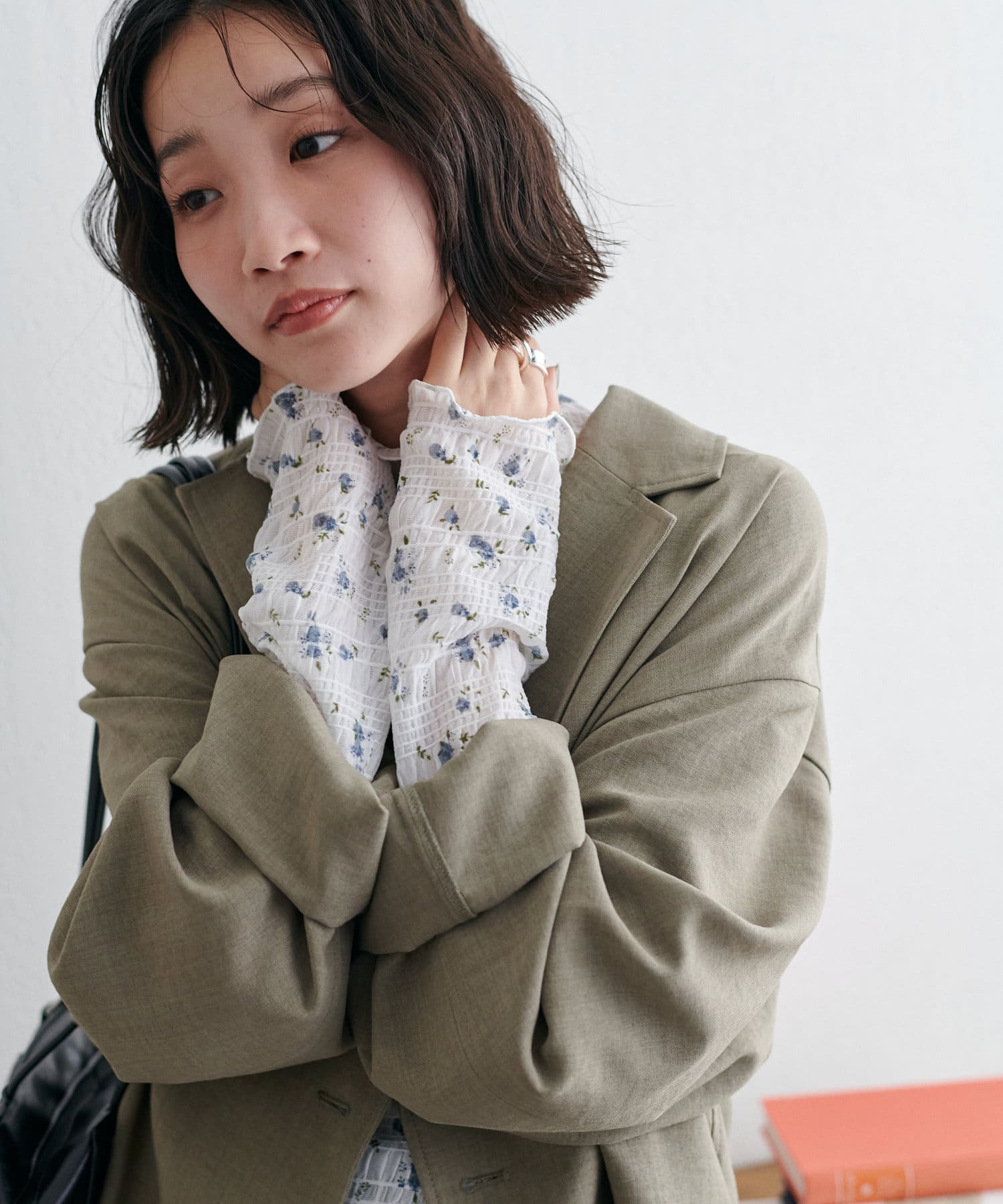 ・花柄とシアー素材の組み合わせで1枚で華やかに映える