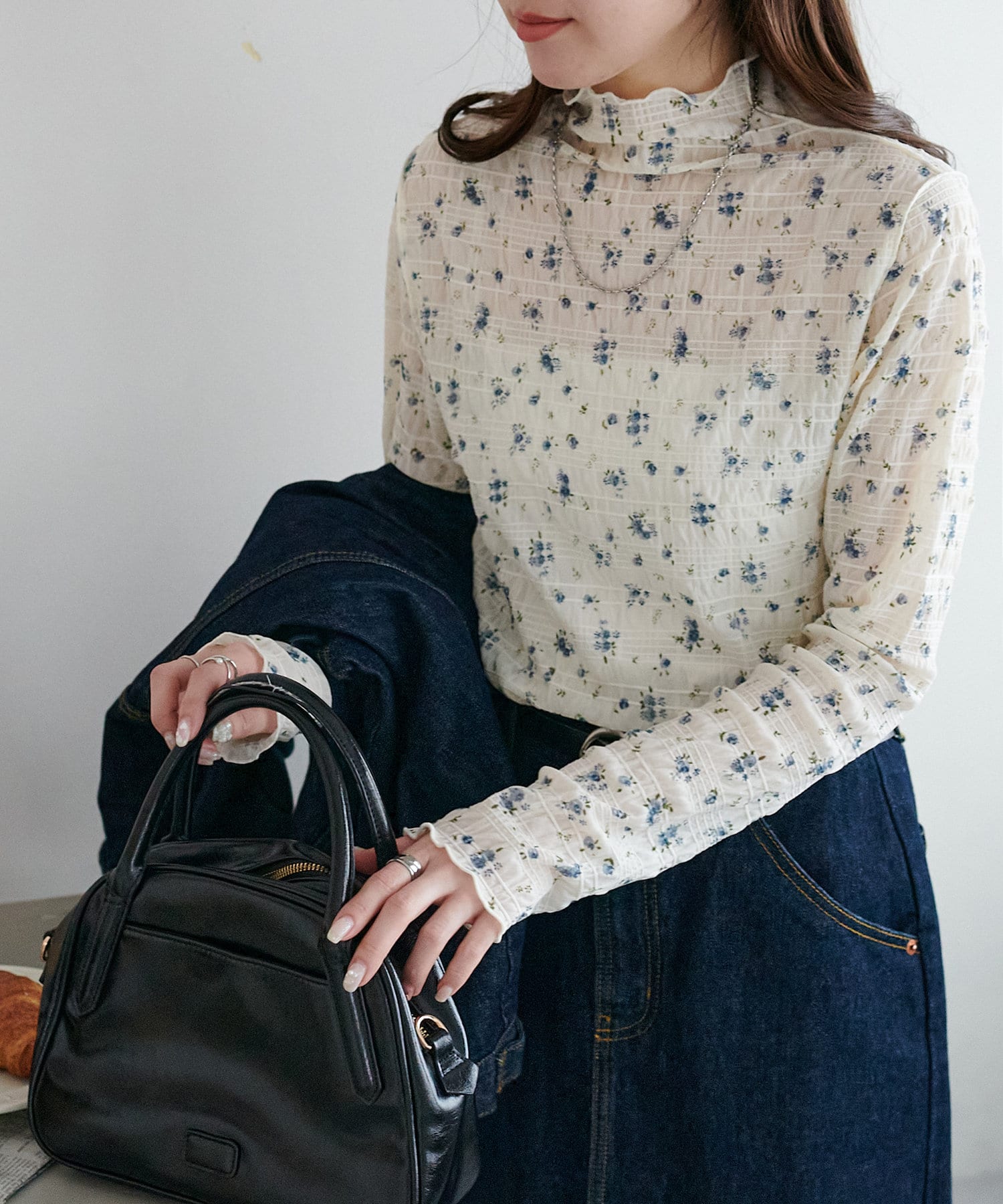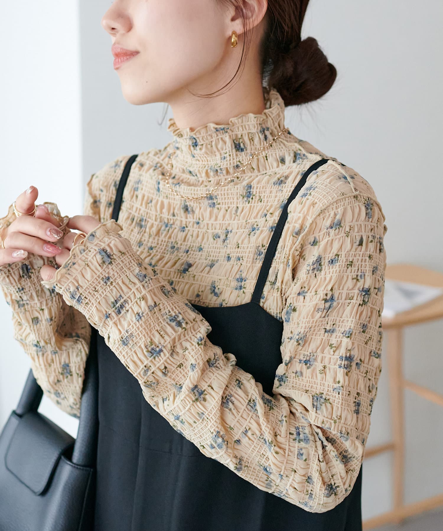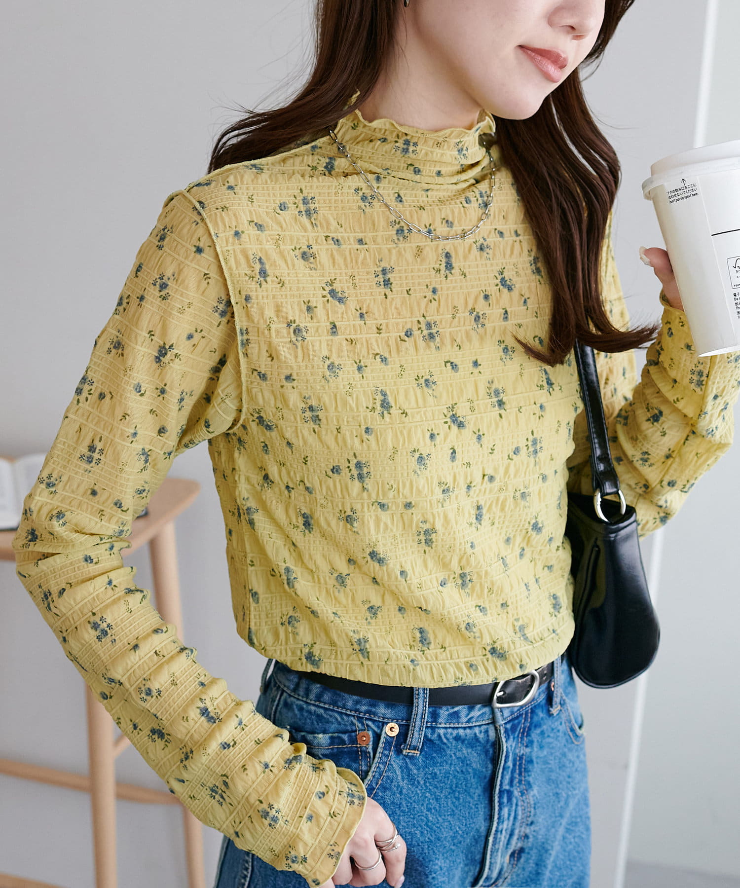 TOP > DISCOAT > レディース > トップス > Tシャツ/カットソー > 【WEB限定】小花柄ボトルネックプルオーバー