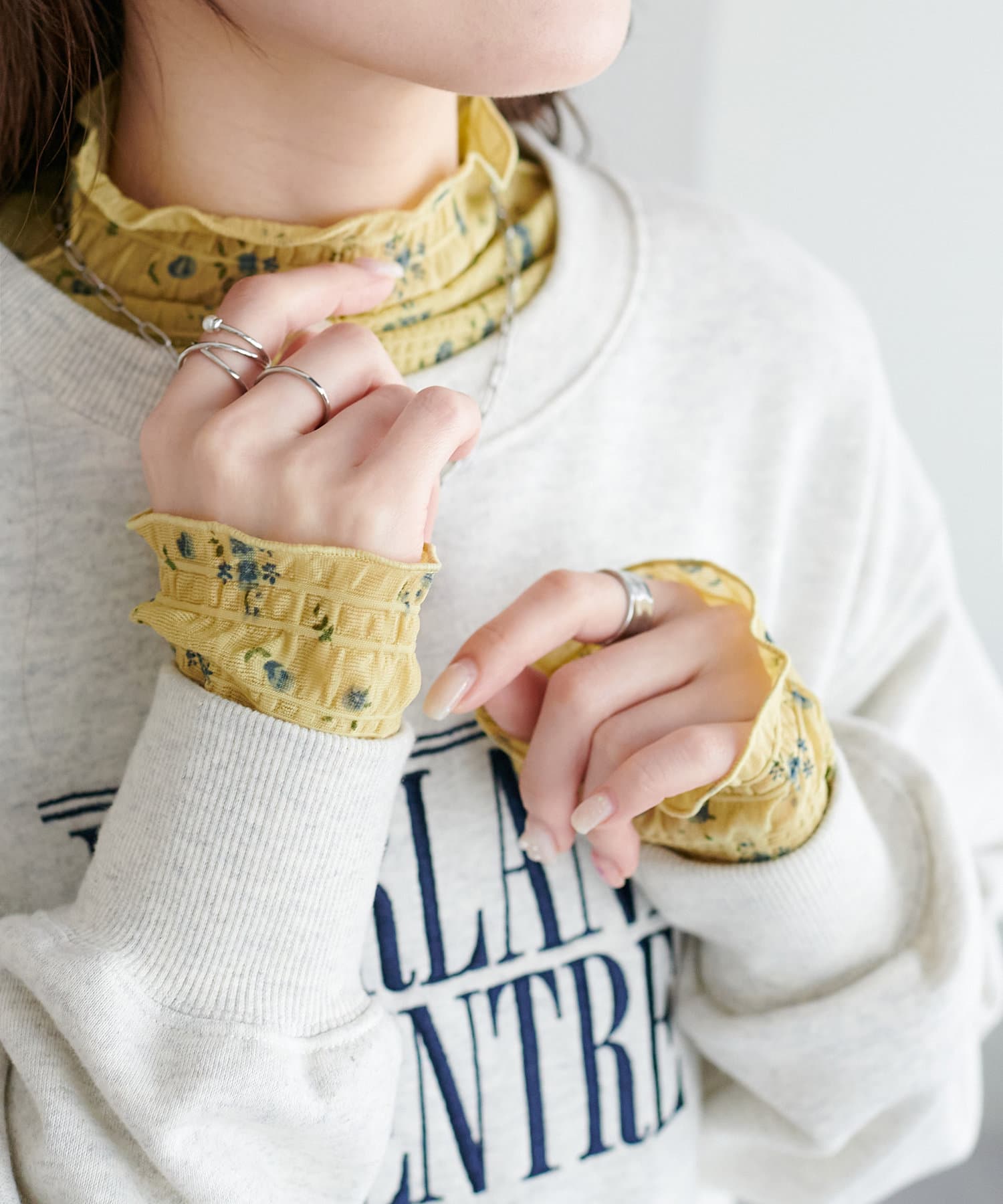 ・秋冬はスウェットのインナーとして袖や襟のフリルを見せる着こなしも◎
