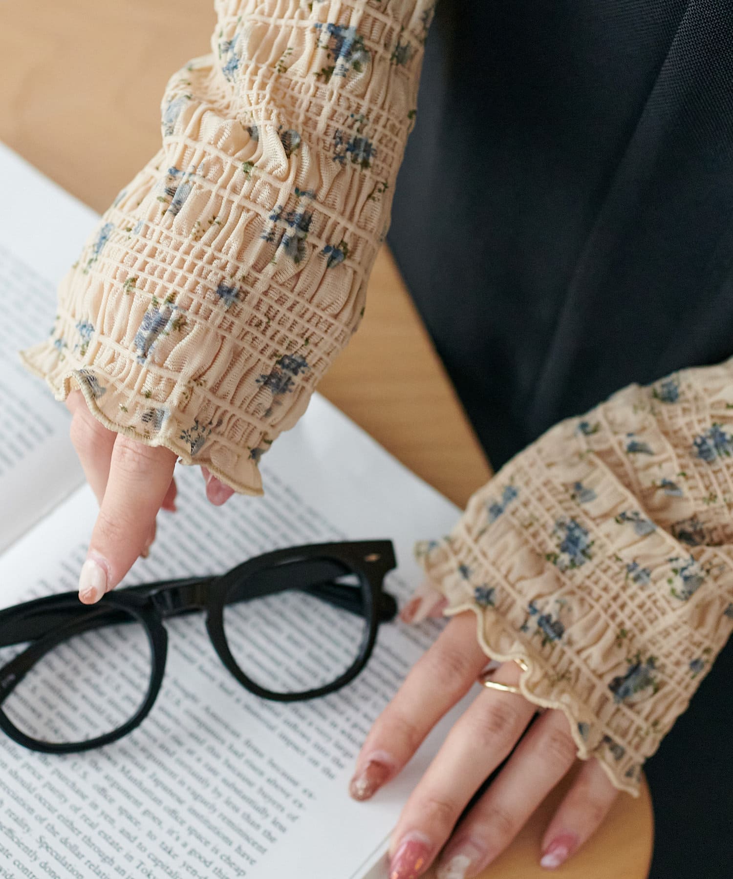 半袖だと心許ない…という時に選べる透け感素材と春まで楽しめそうな小花柄がお気に入りです。伸縮性がとてもあるのもお気に入りです。